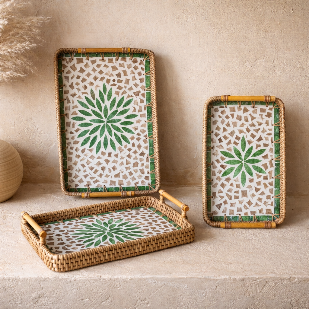 Milanny Akasya Ağacı Tutmalı Yuvarlak Sunumluk İki Boy 28 cm, 24 cm KOD:147-146