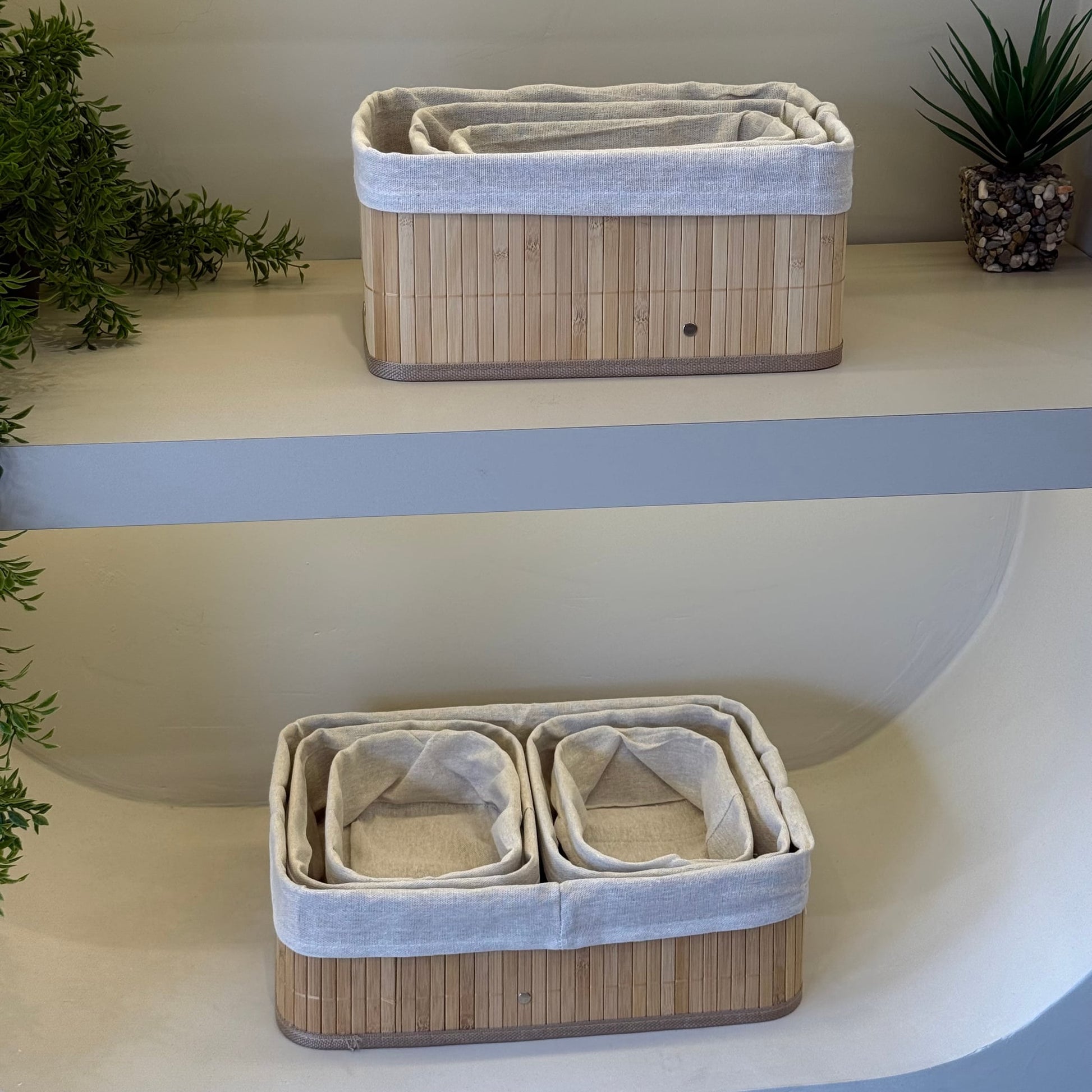8 Parça Bambu Sepet Seti Dikdörtgen