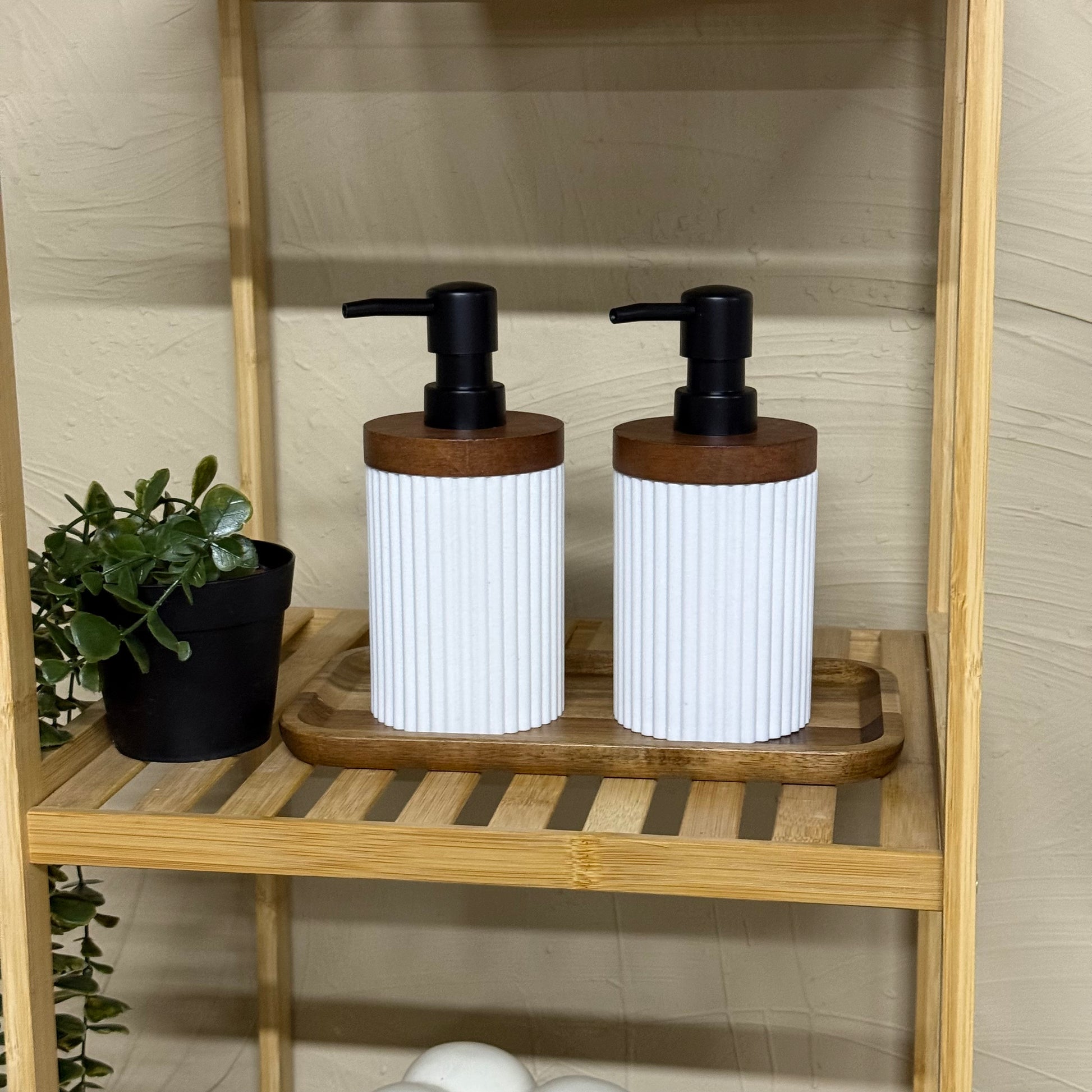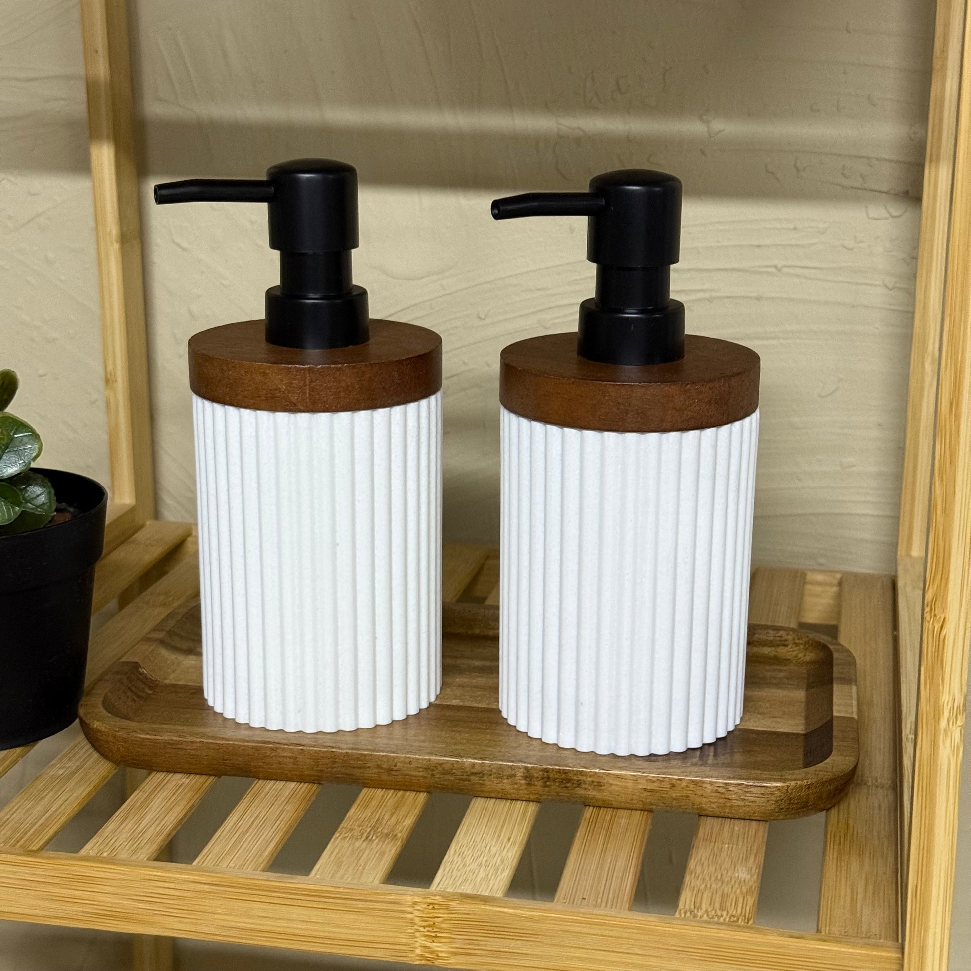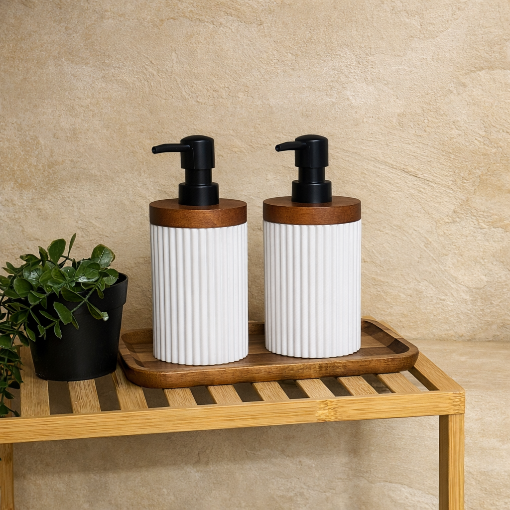 Akasya Ağacı Standlı Mermer İkili Sıvı Sabunluk Seti 3 Parça