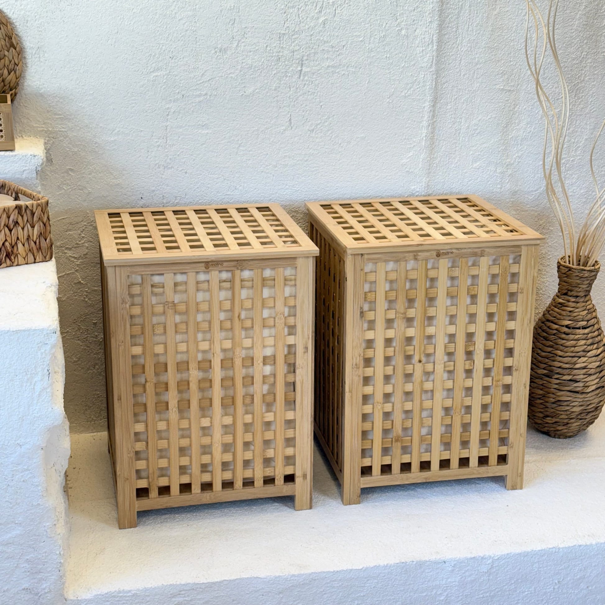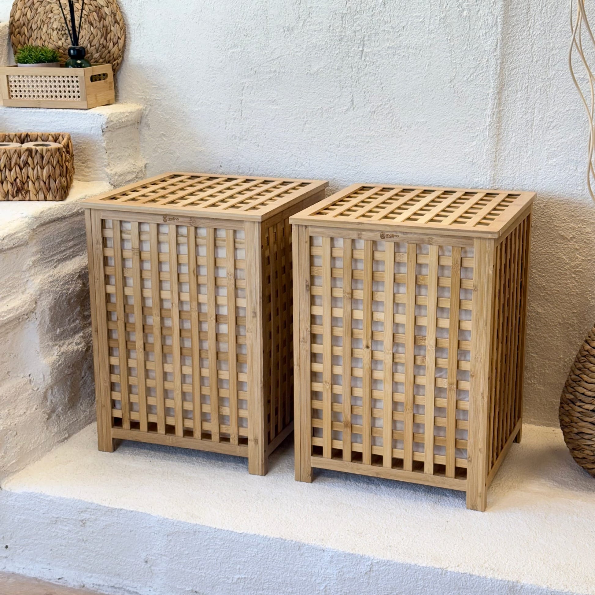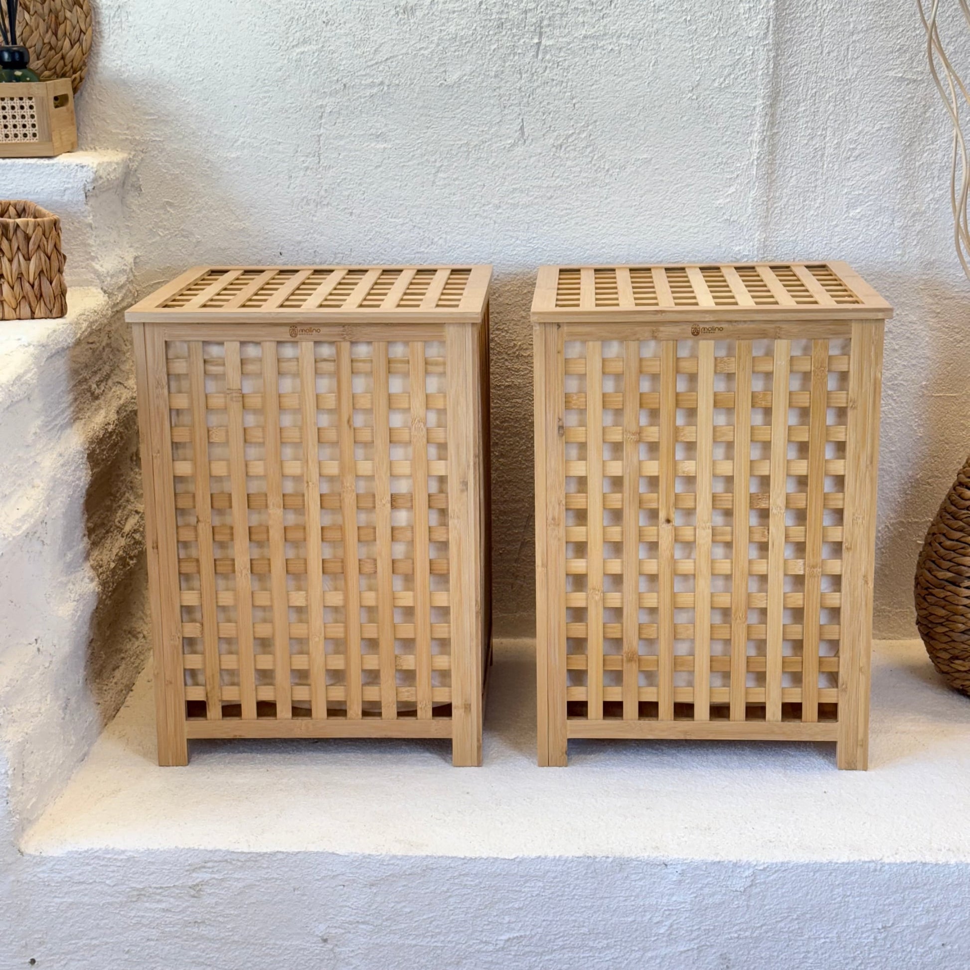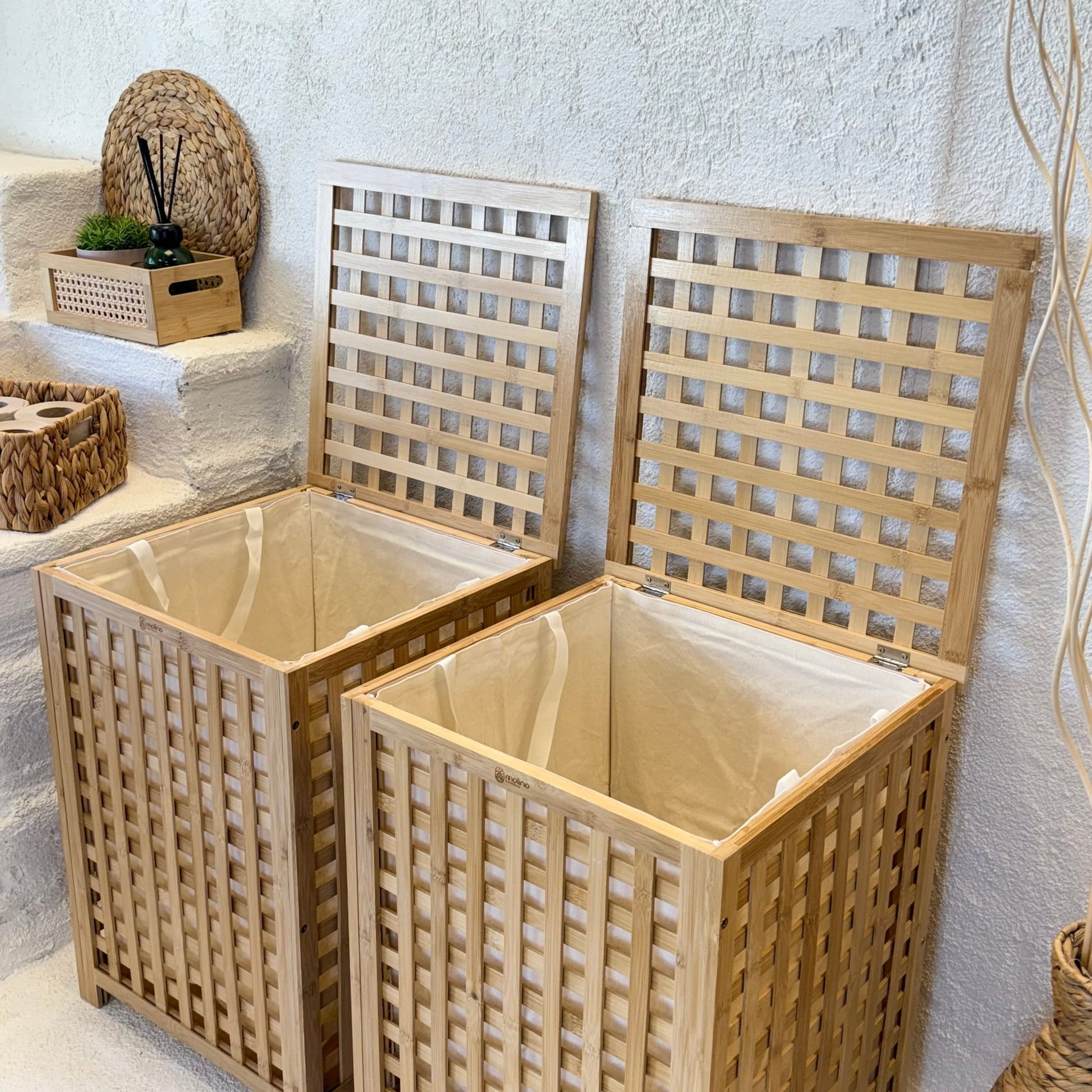 Andy 2 Adet Bambu Çamaşır Sepeti, Dev Boy 62X45X45 CM-Krem (Kısa Süreli 2'Lİ Fırsat, Süper Fiyat)