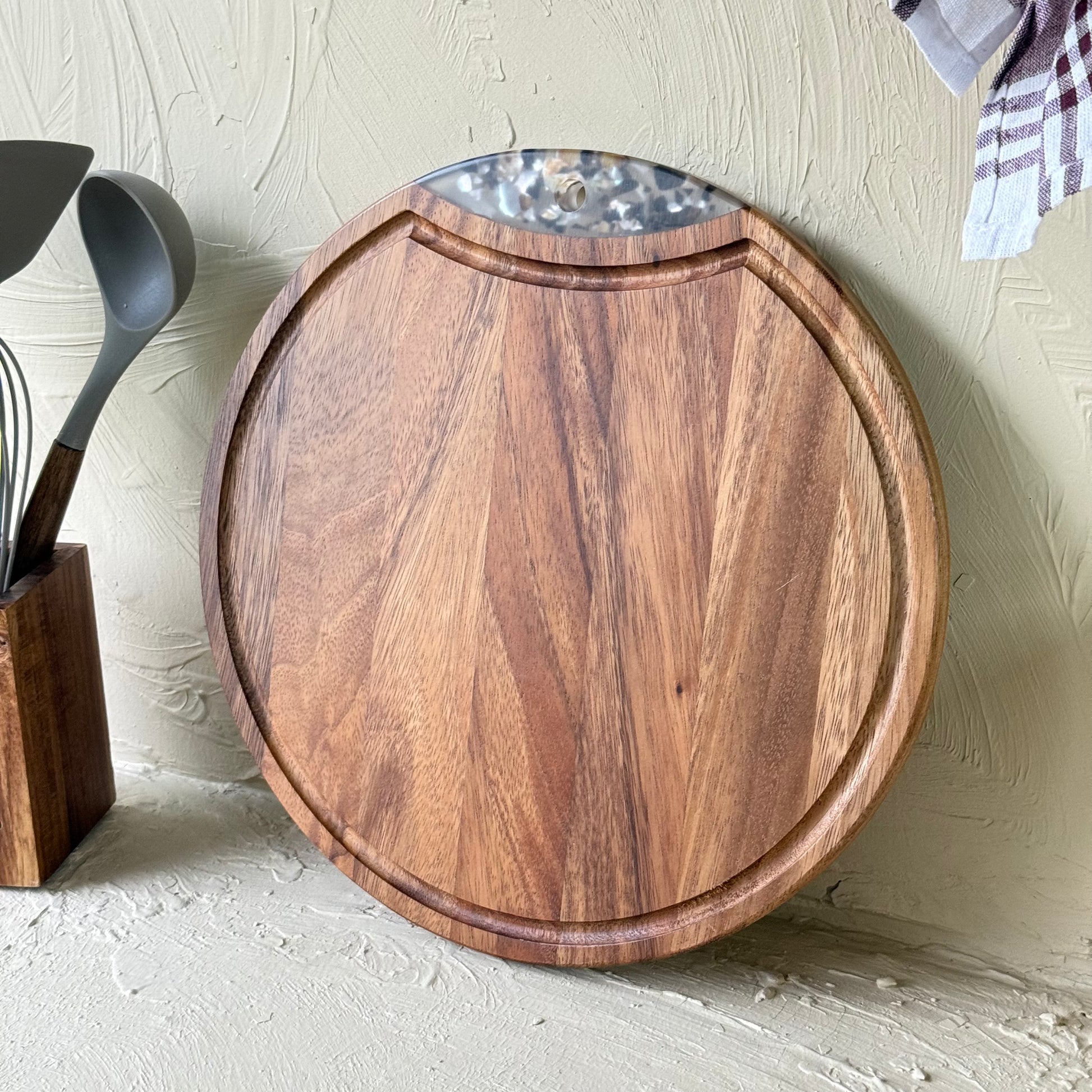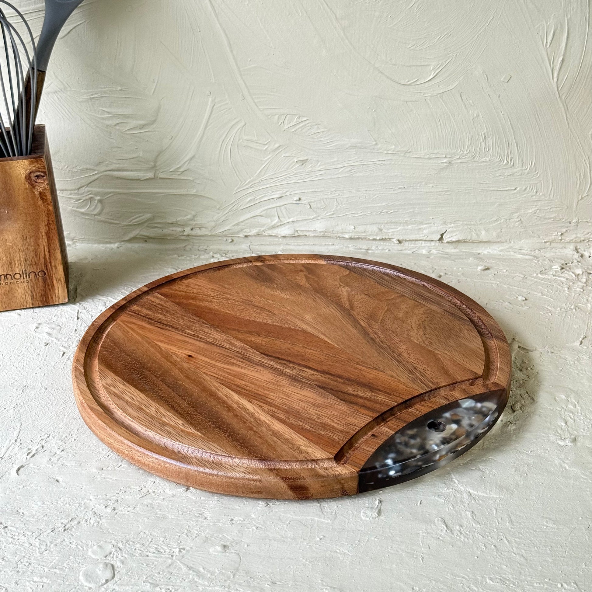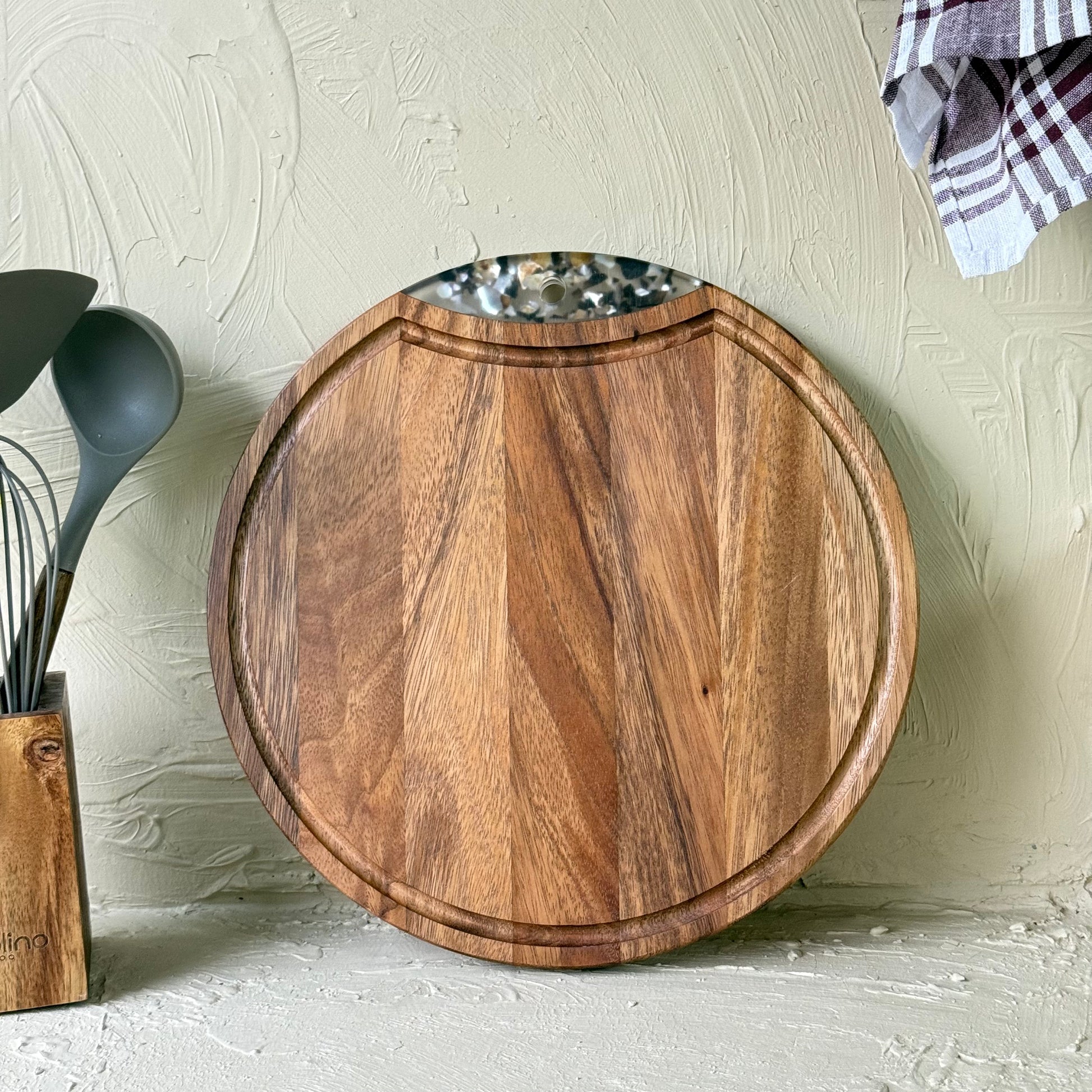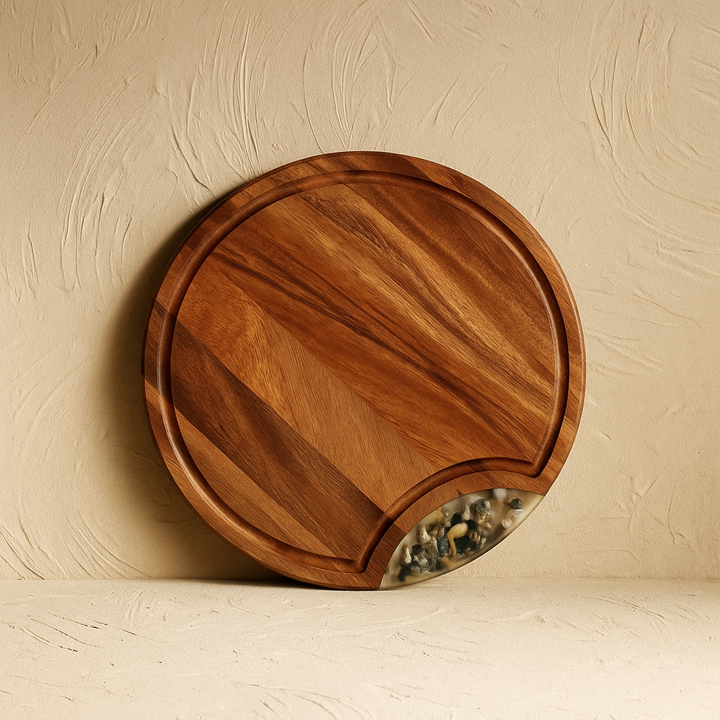 Arow Akasya Ağacı Yuvarlak Sunumluk Kesim Panosu Büyük Boy KOD:1139