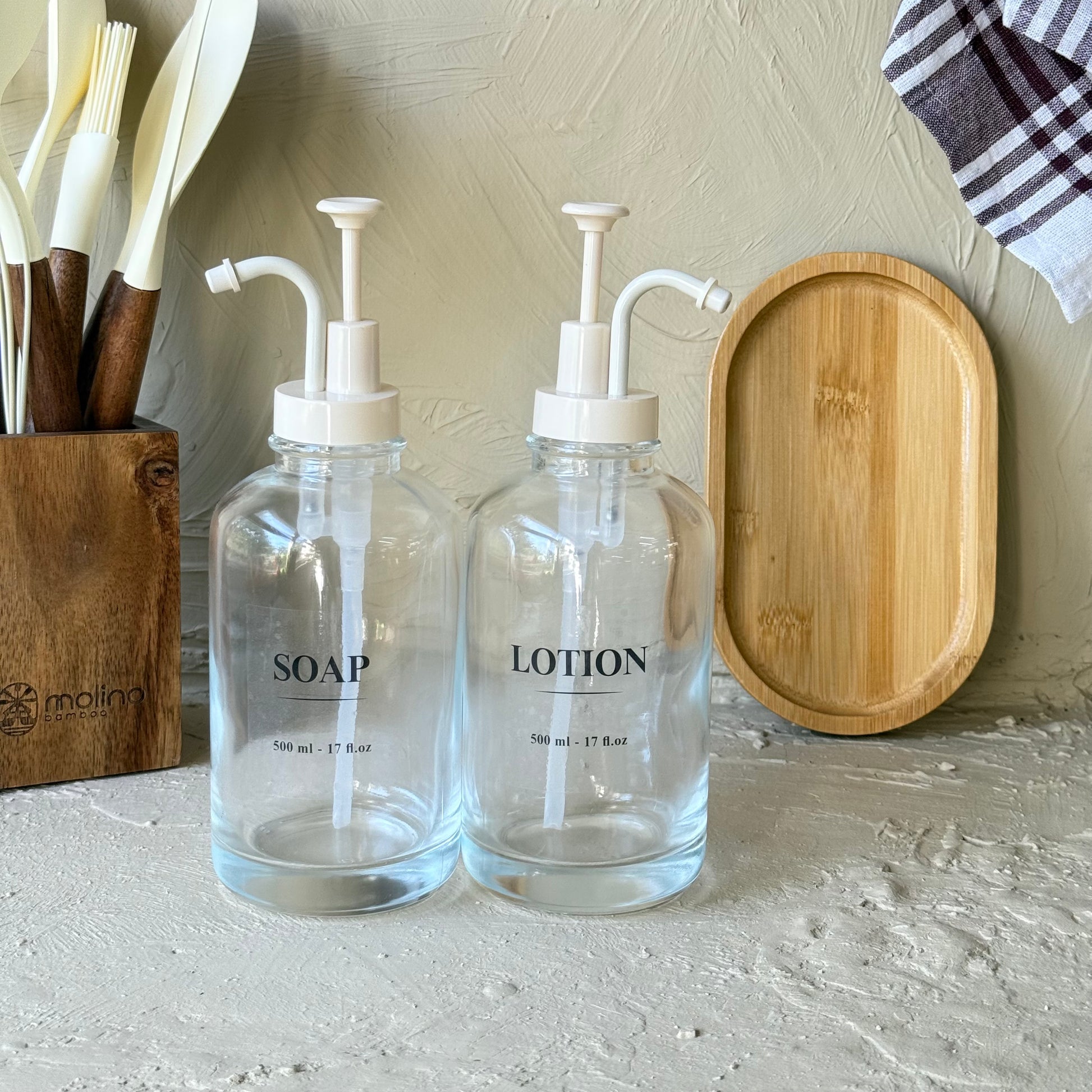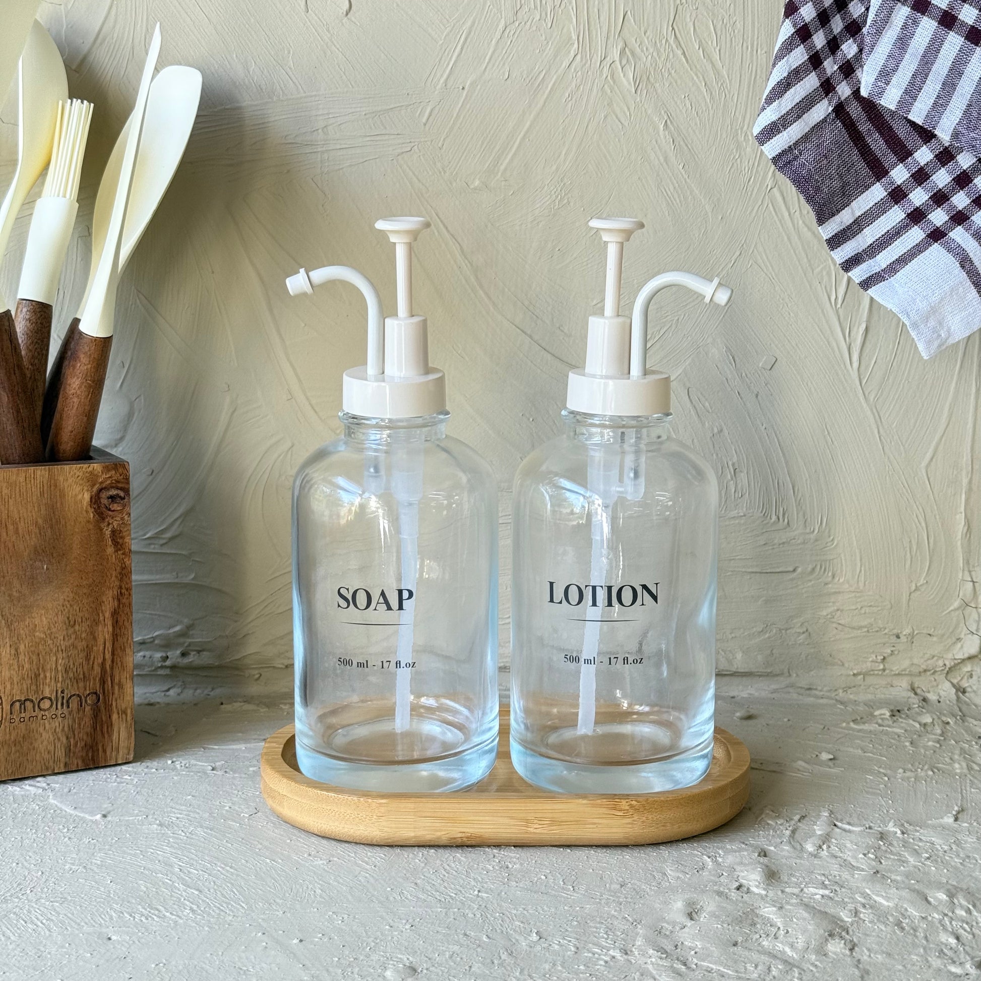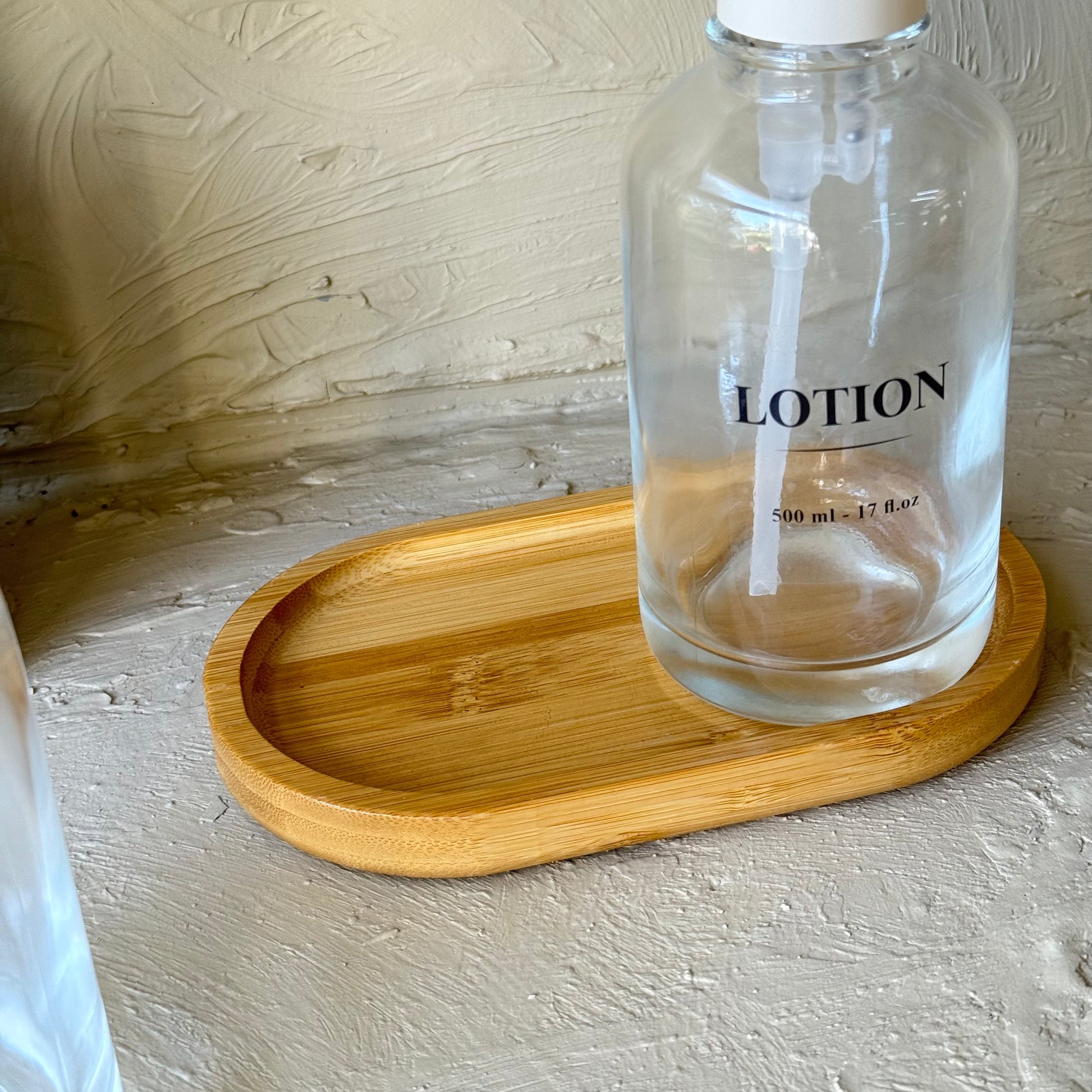 Arow Angel Model Yuvarlak Bambu Oval Standlı İkili Sıvı Sabunluk Seti Krem KOD:1016