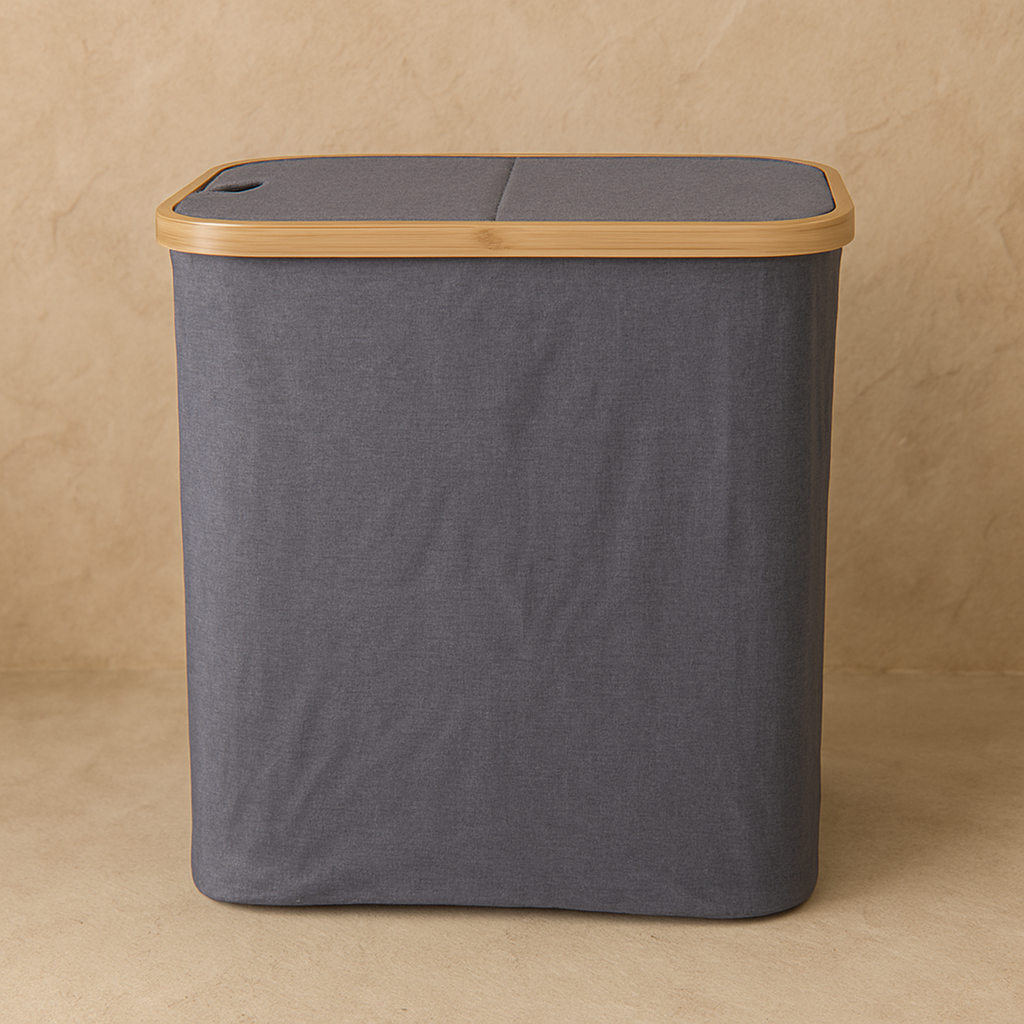 Arow Büyük Boy 2 Cepli Kapaklı Katlanabilir Kirli Çamaşır Sepeti Seti Gri KOD:5021