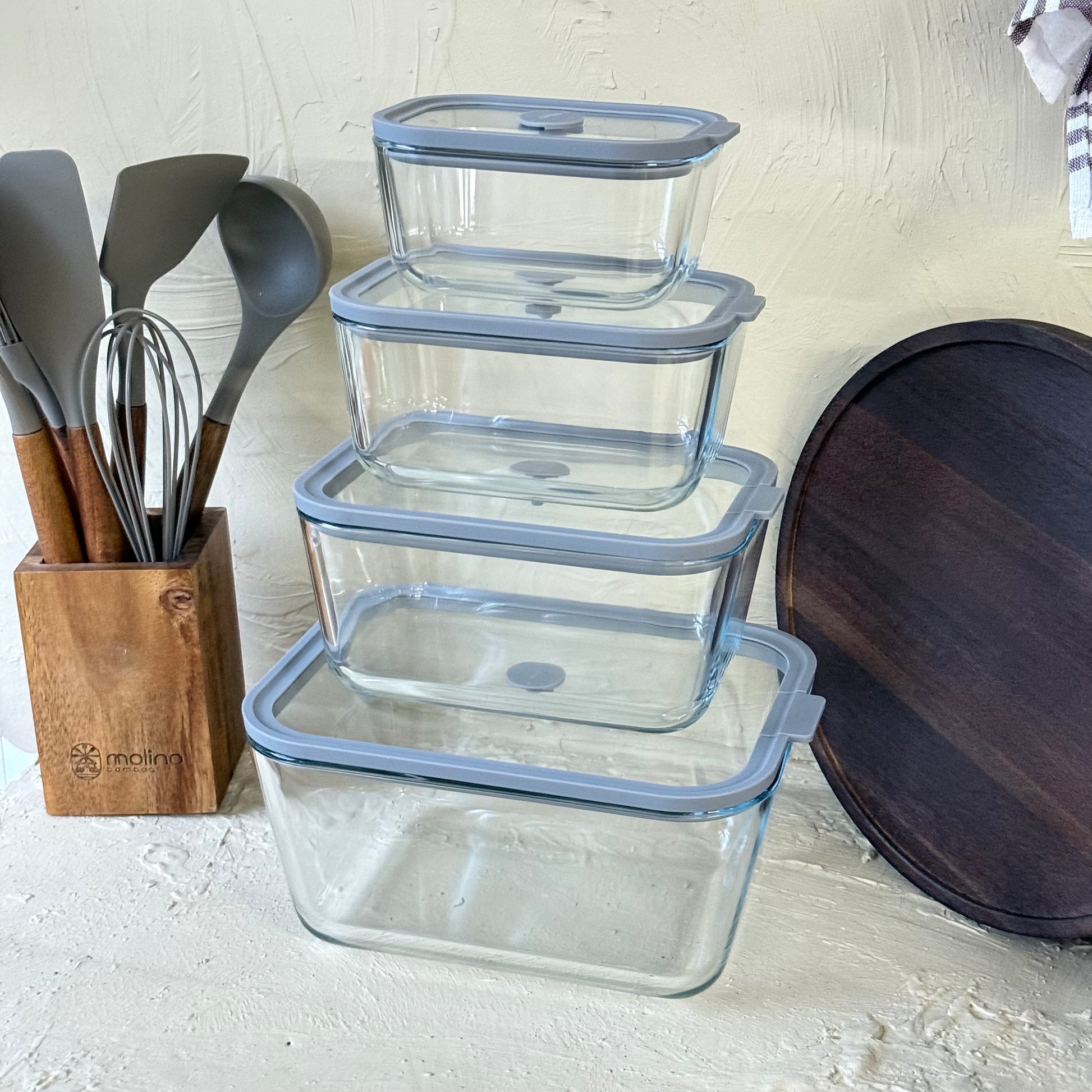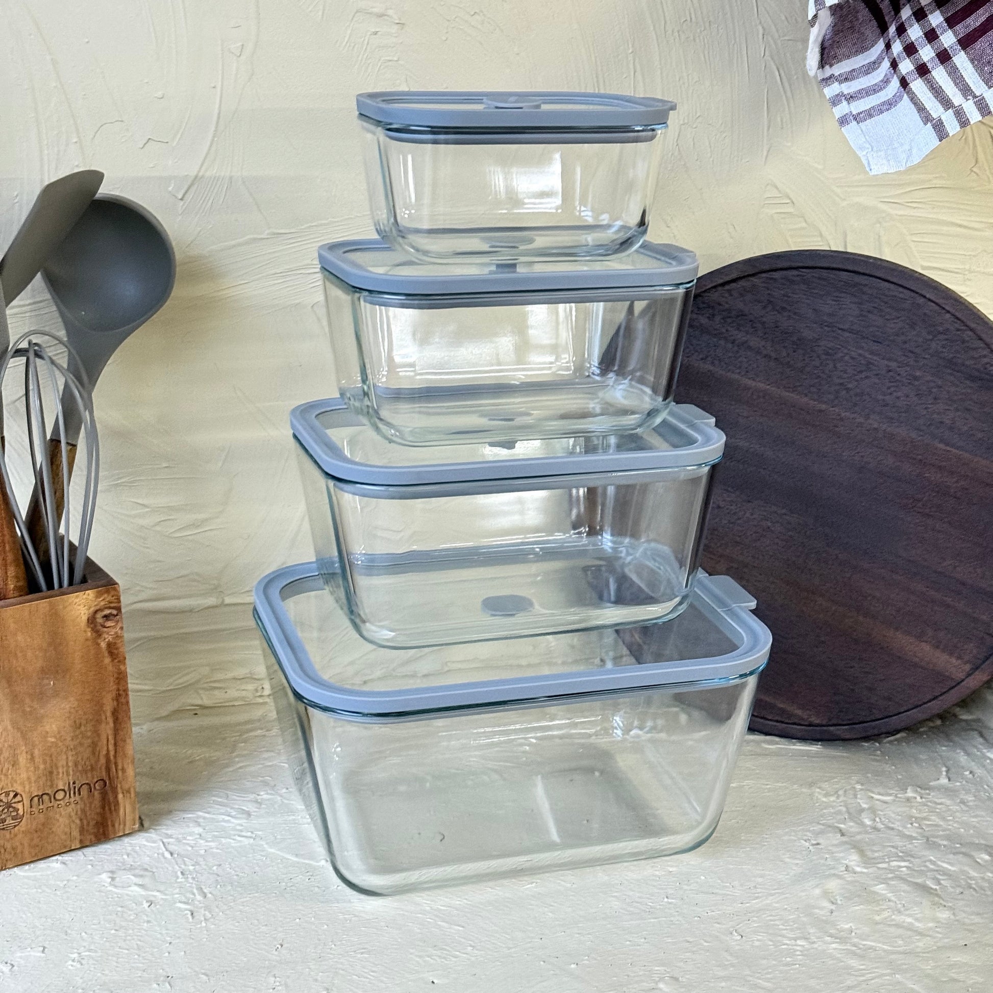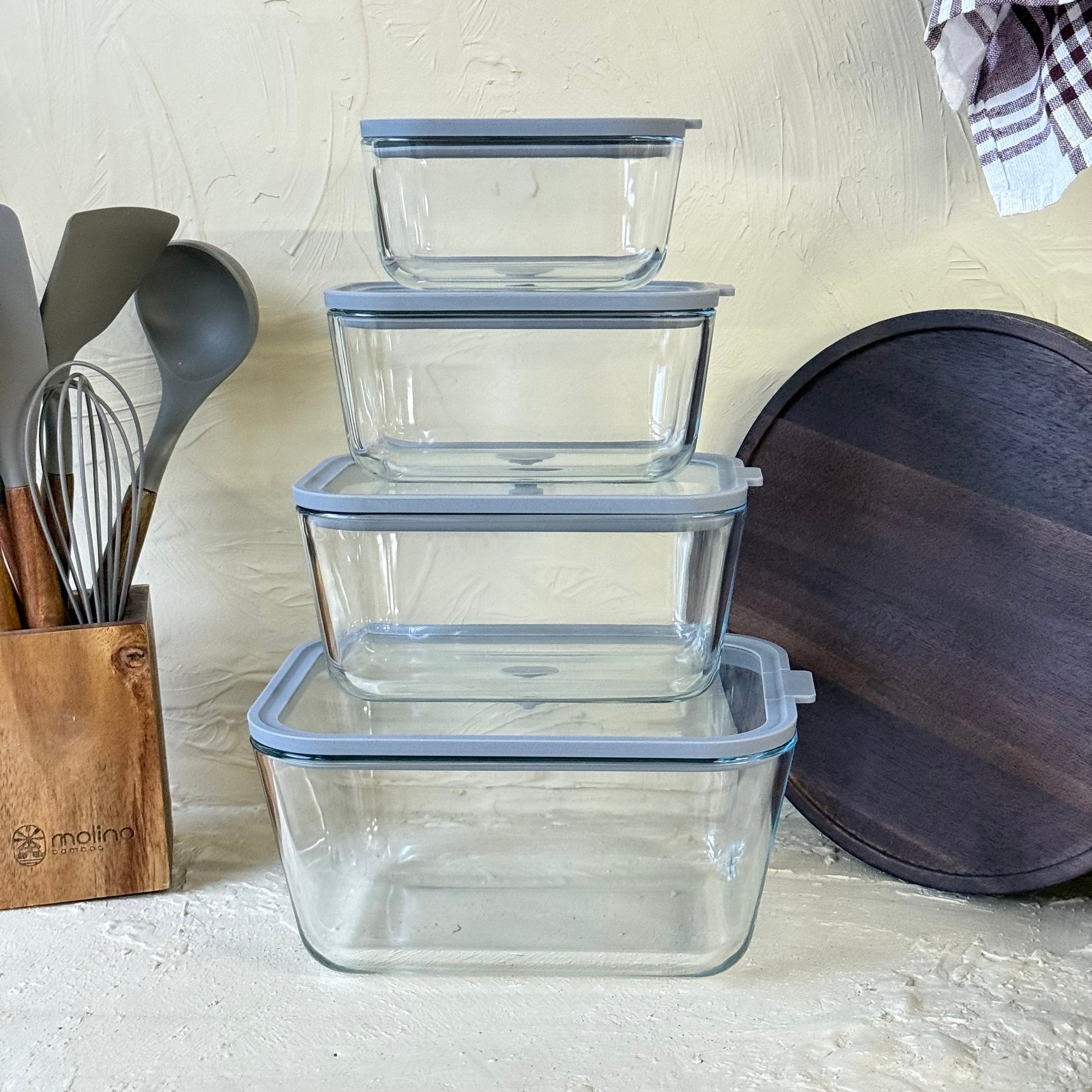 Arow Heilo Cam 4 Lü Saklama Kabı Gri Kapaklı KOD:6663