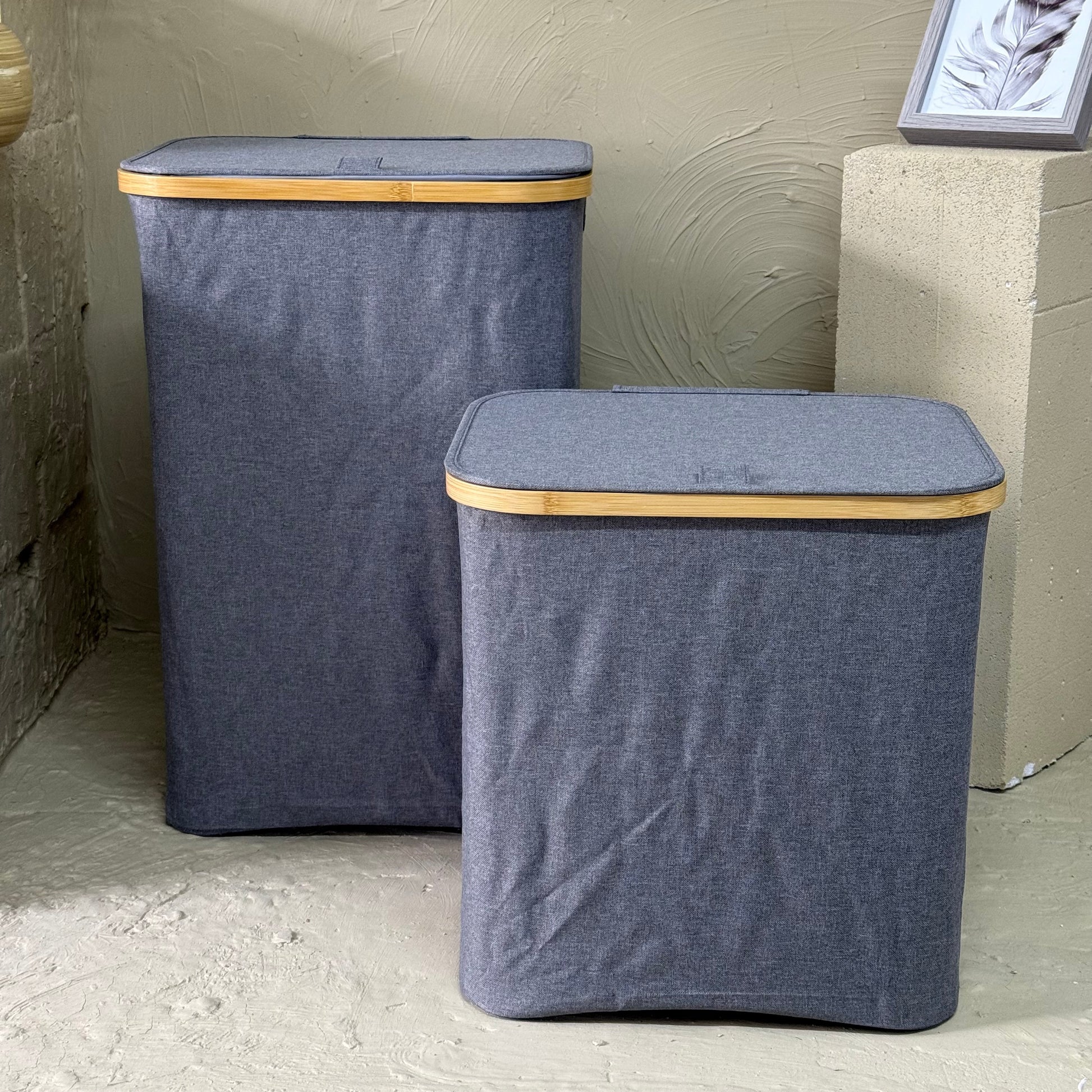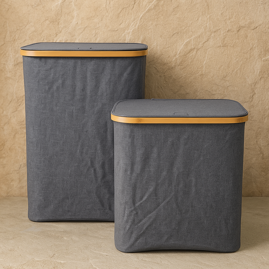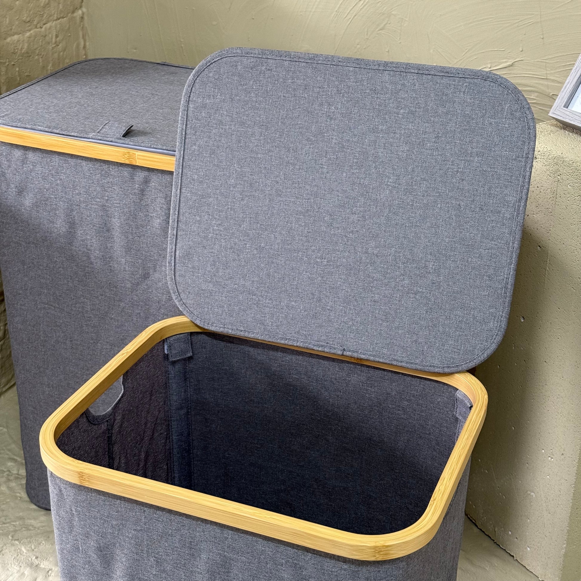 Arow İki Boy Kapaklı Katlanabilir Kirli Çamaşır Sepeti Seti Gri KOD:5024-23