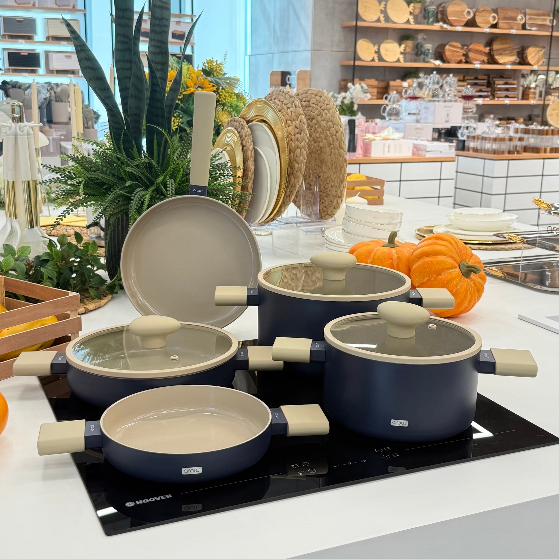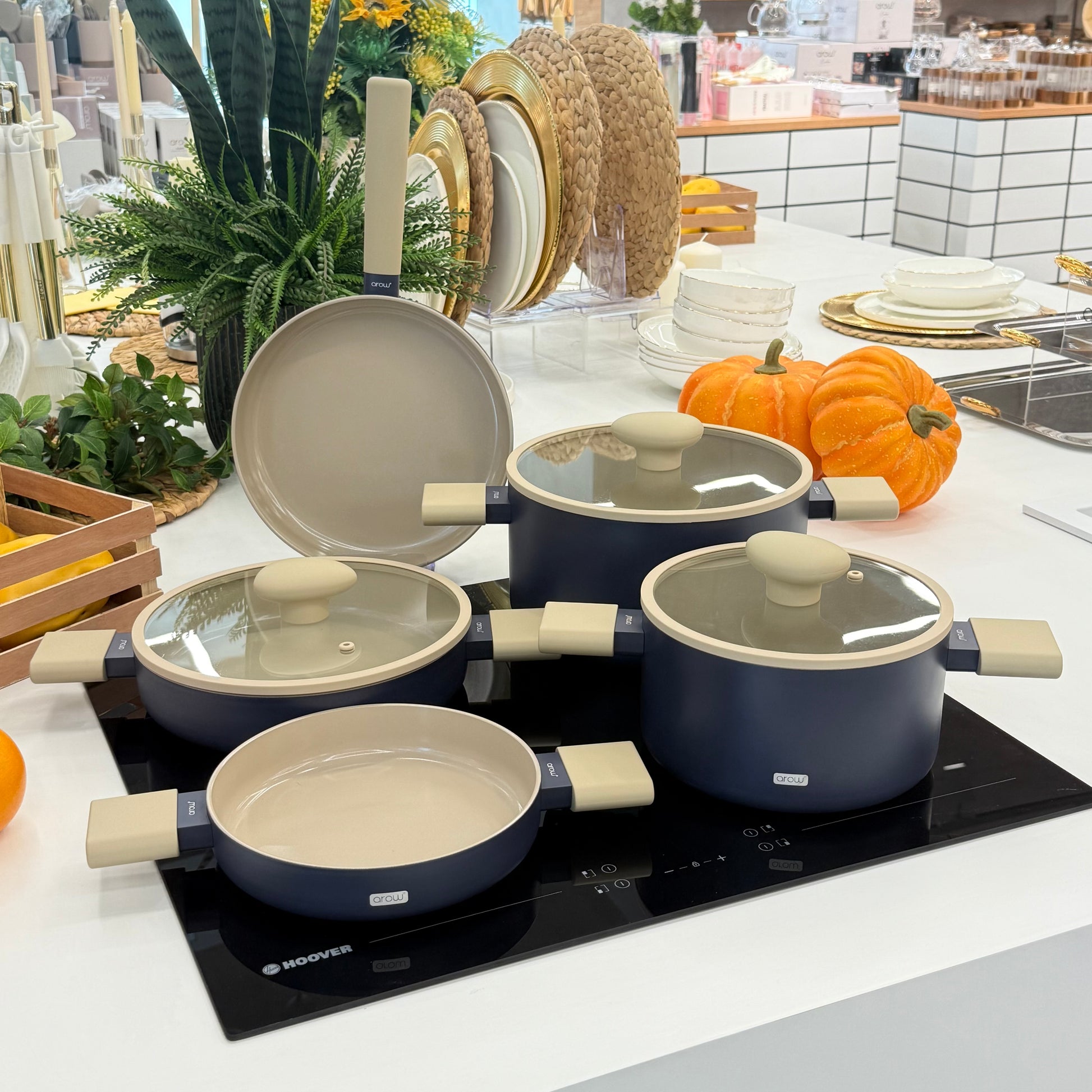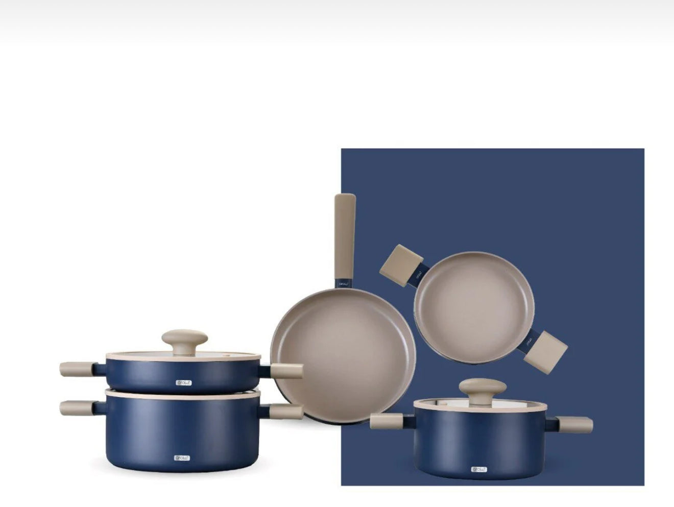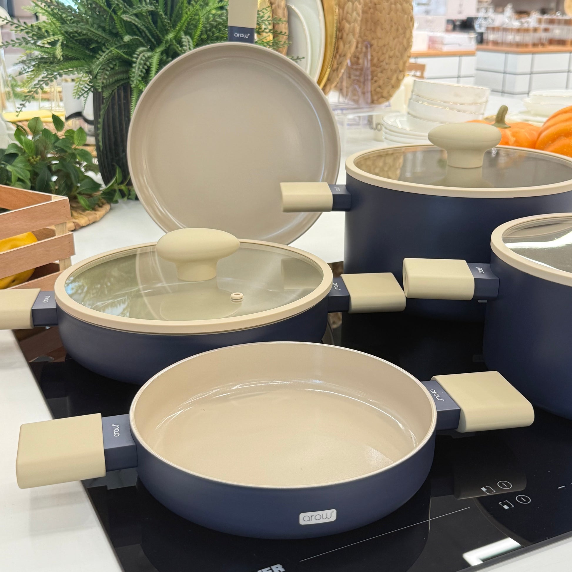 Arow Kristal Kaplama Yapışmaz Taban Tencere Tava Seti 8 Parça Mavi