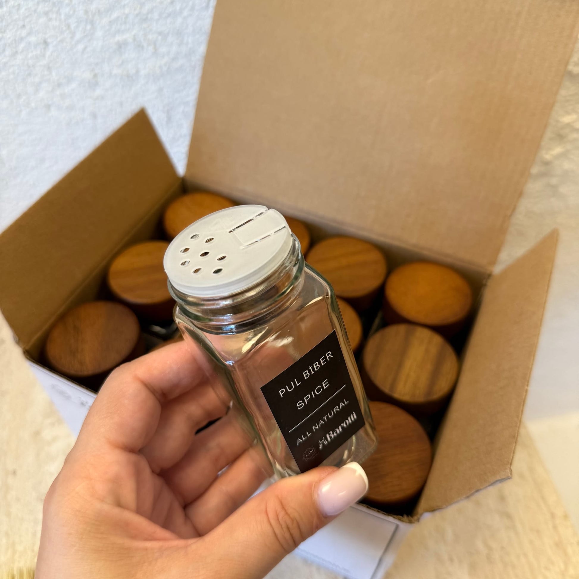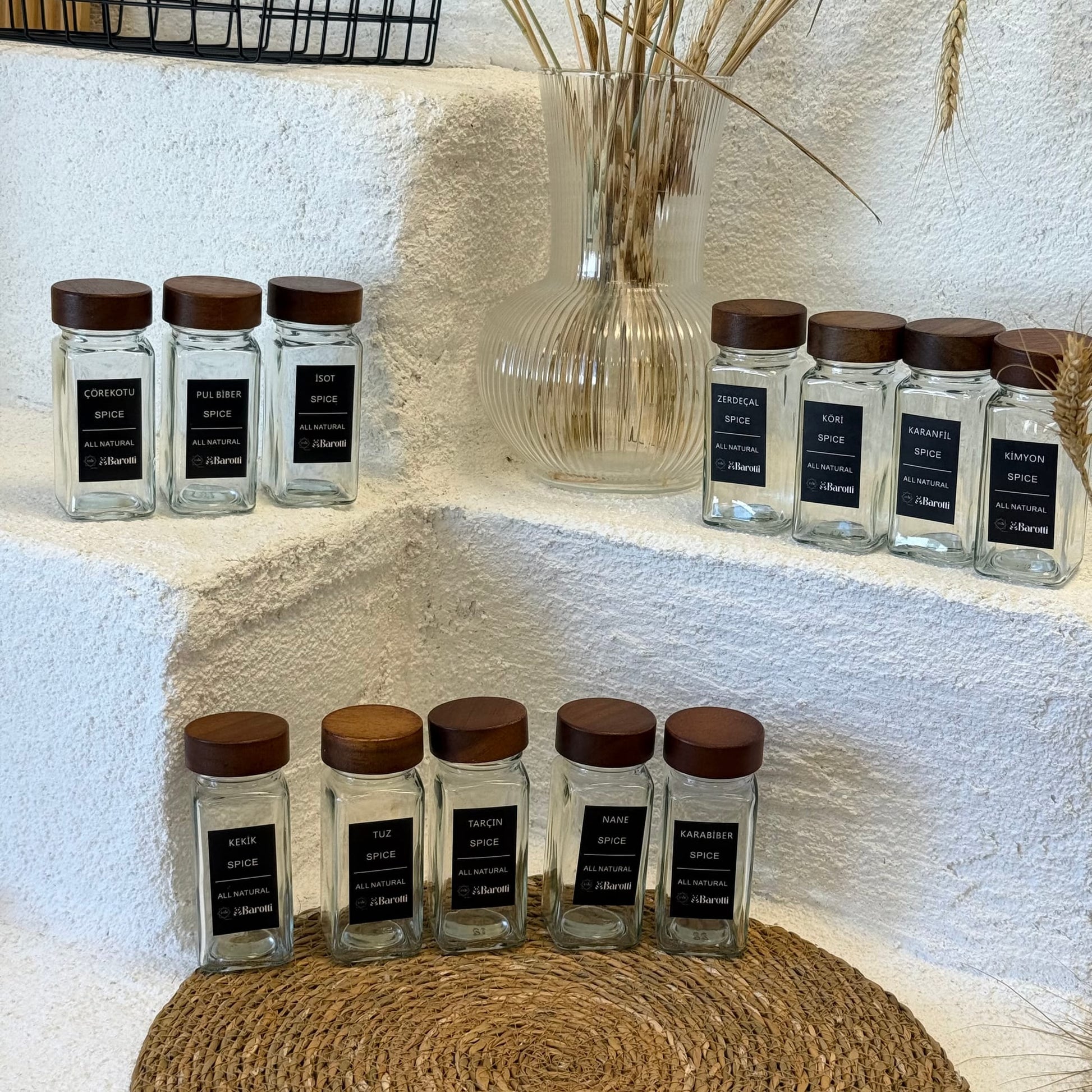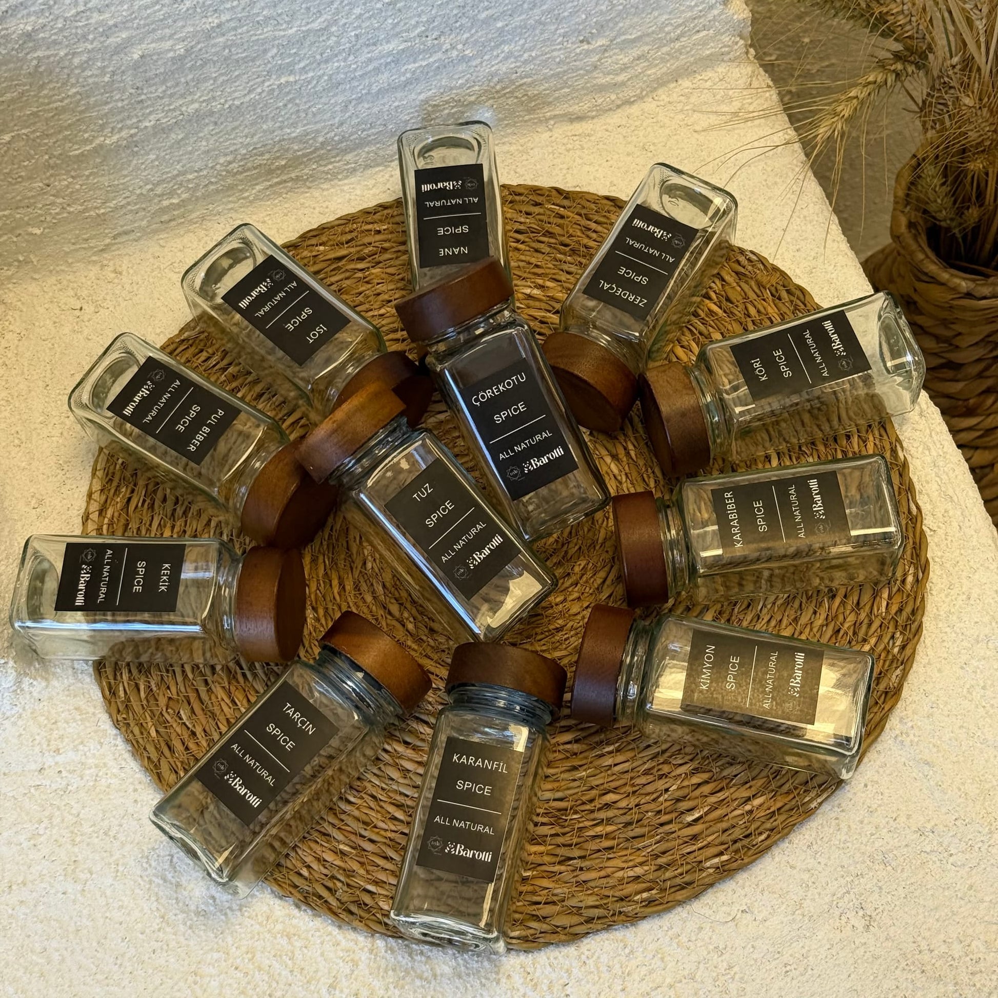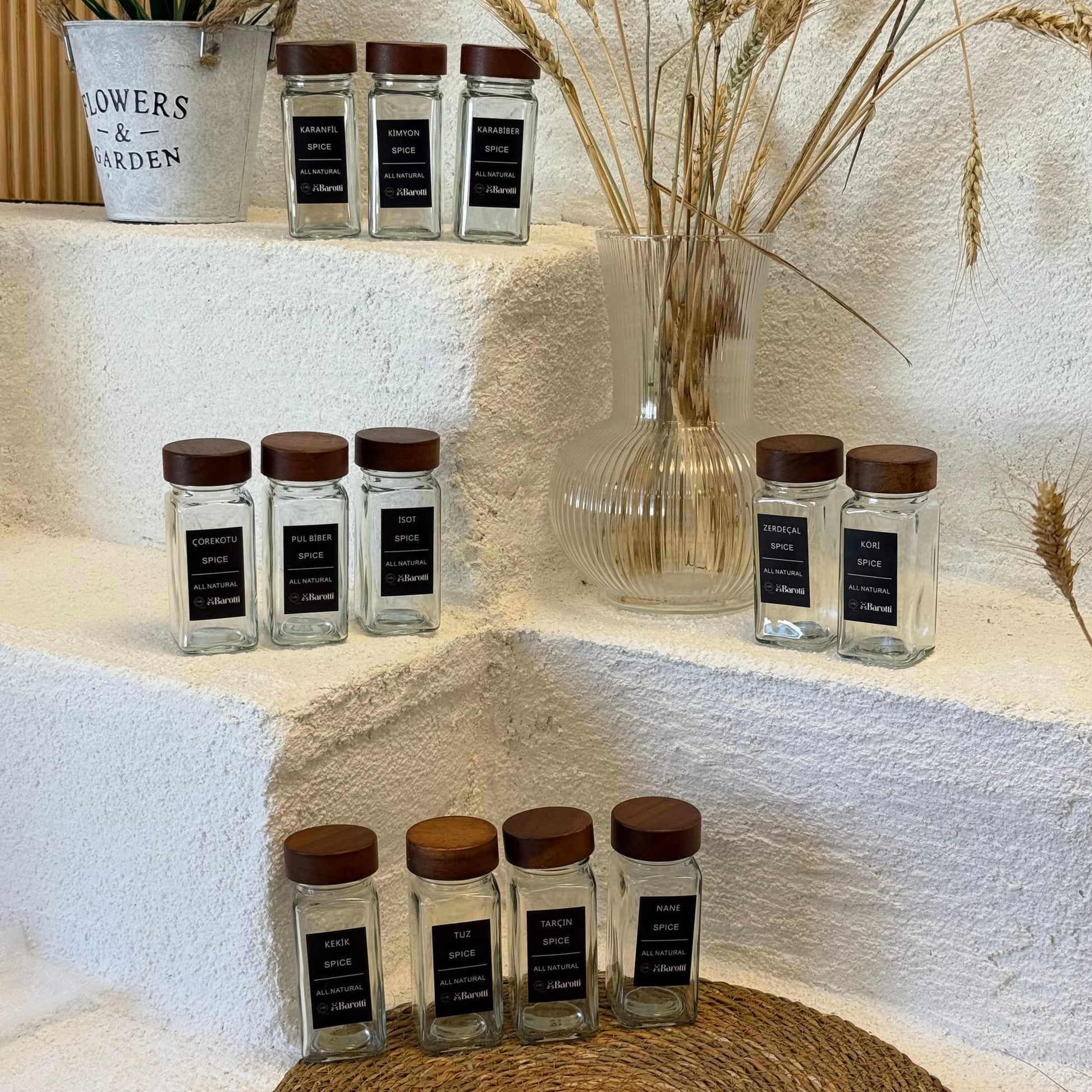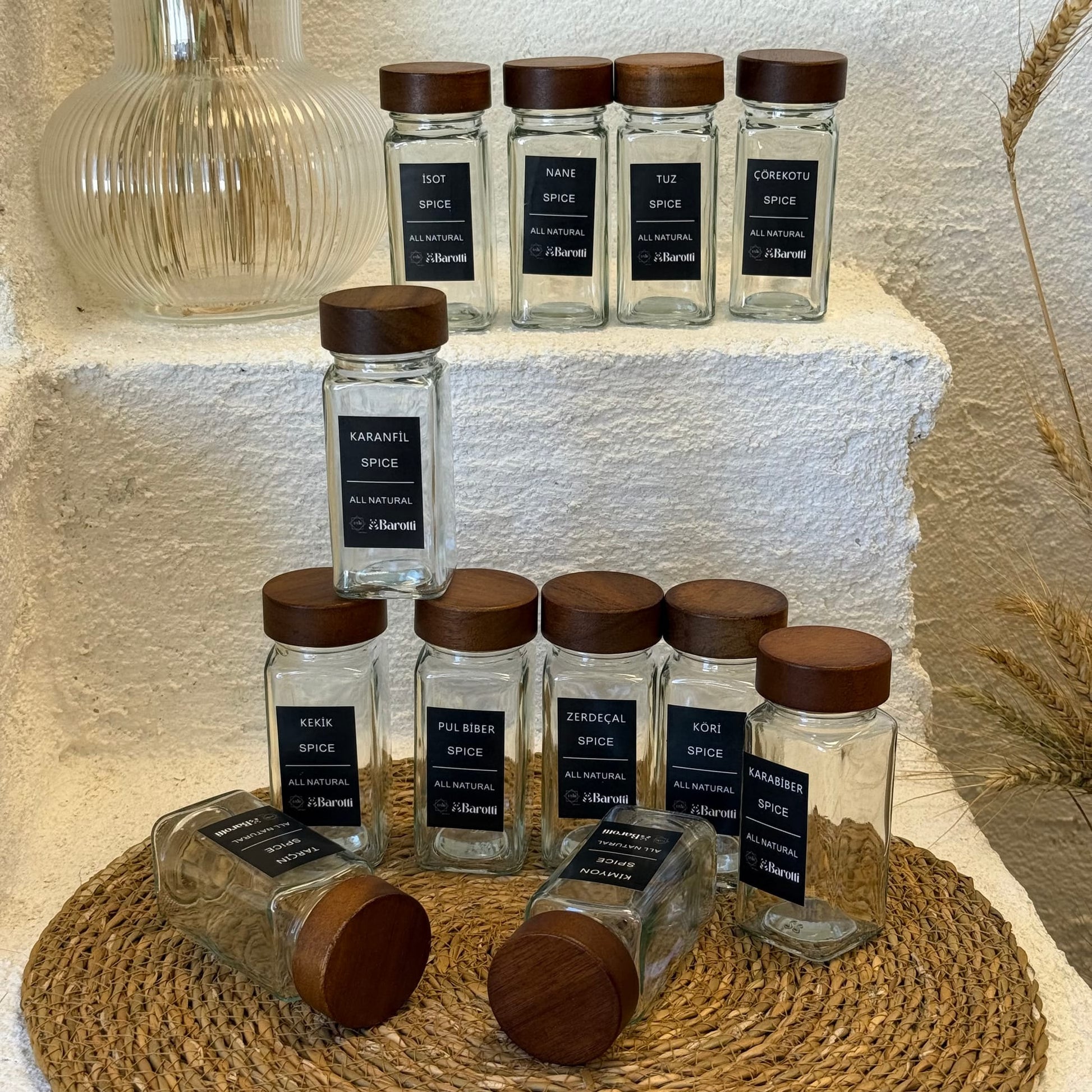 Barotti 12 Adet Akasya Kapaklı Kare Baharatlık Seti Siyah (Süper FİYAT)