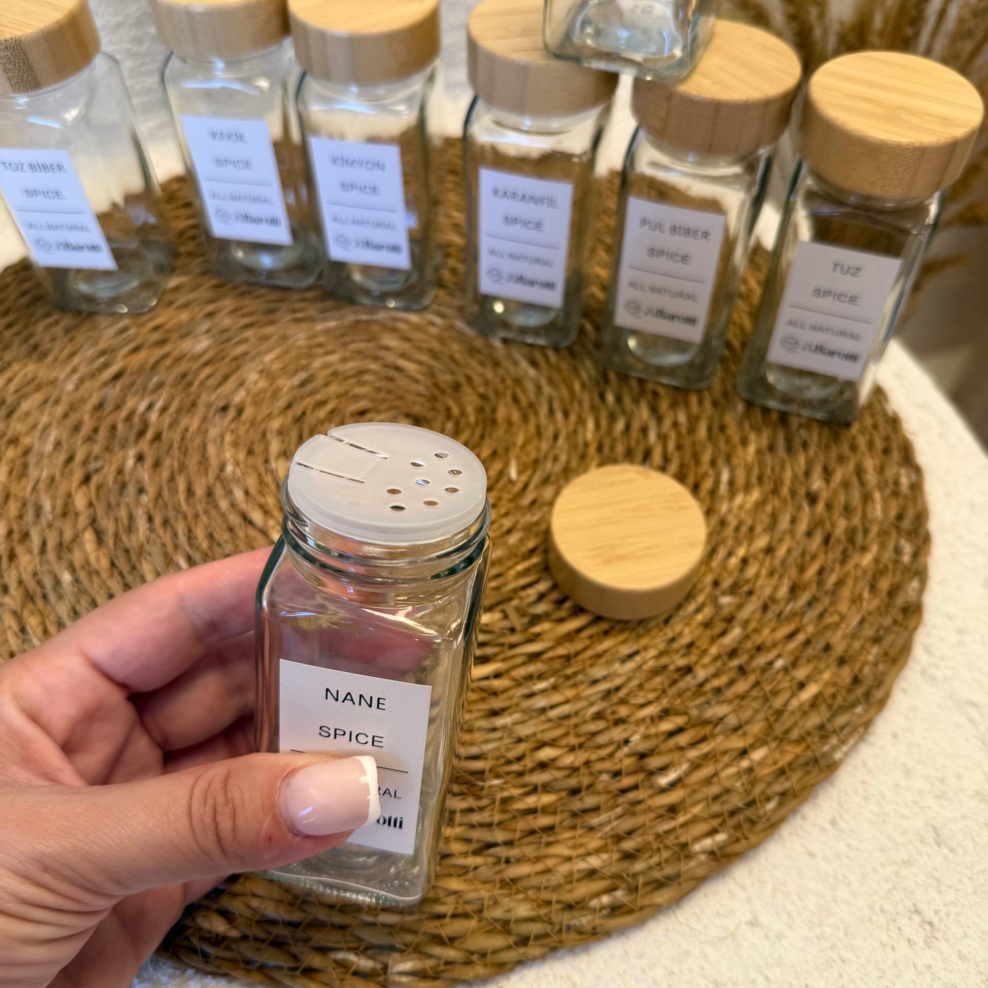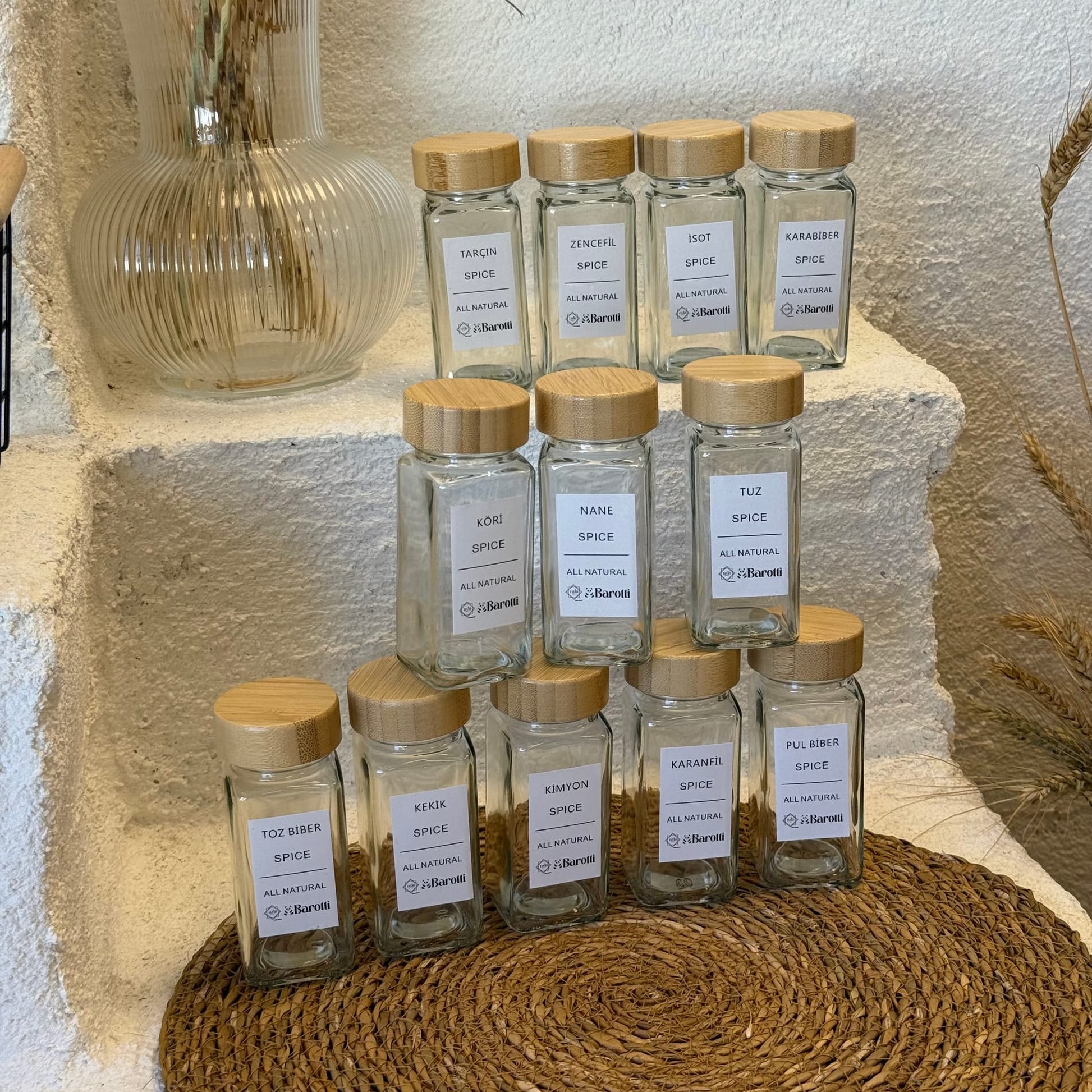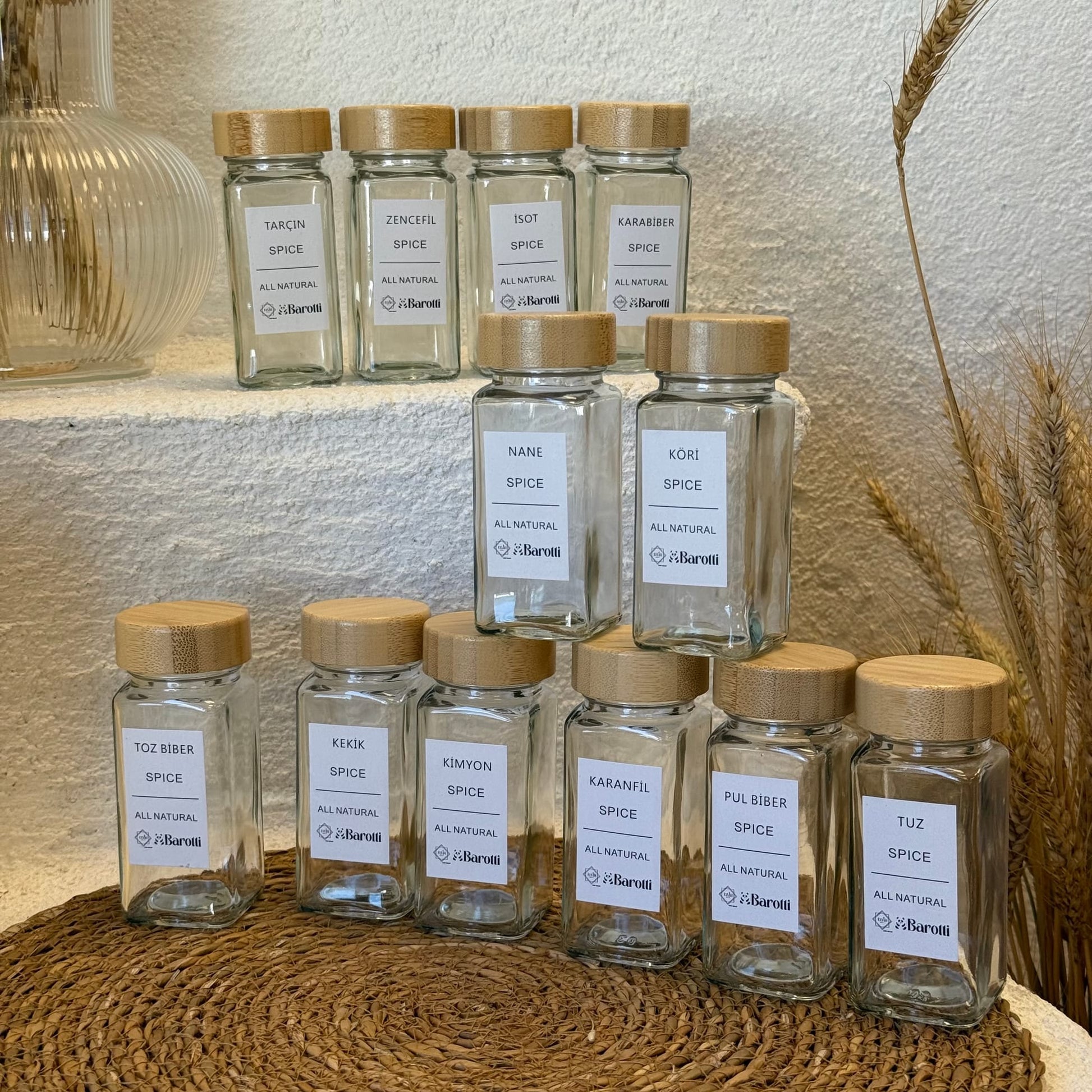 Barotti 12 Adet Bambu Kapaklı Kare Baharatlık Seti Beyaz (SÜPER FİYAT)