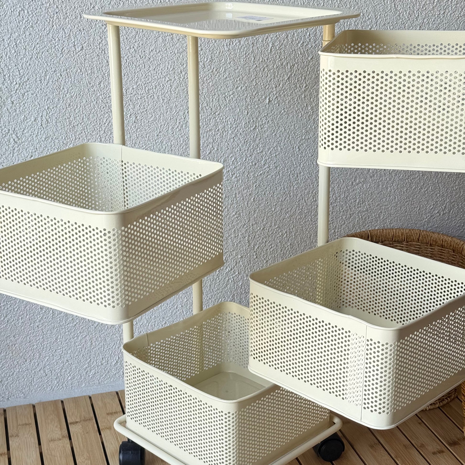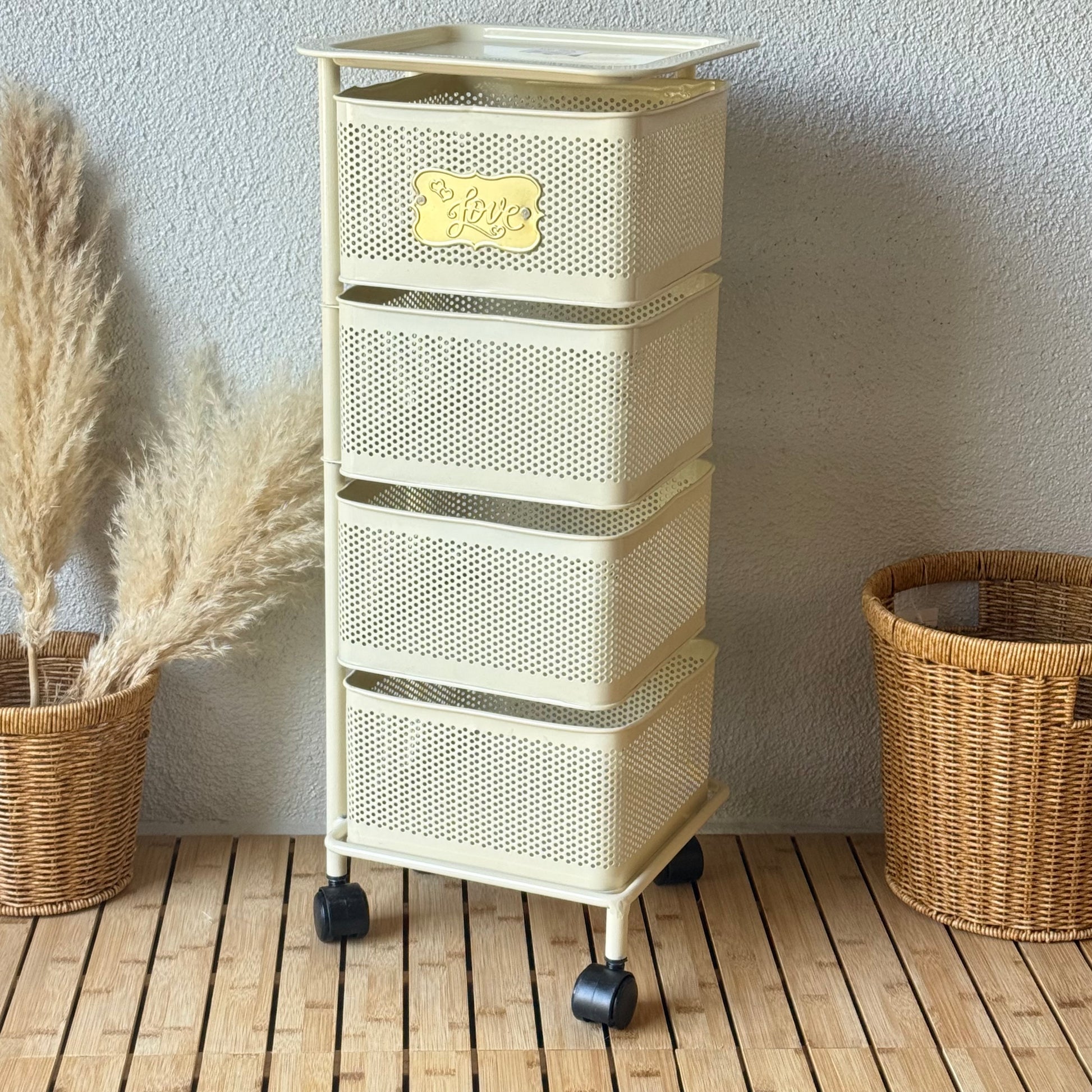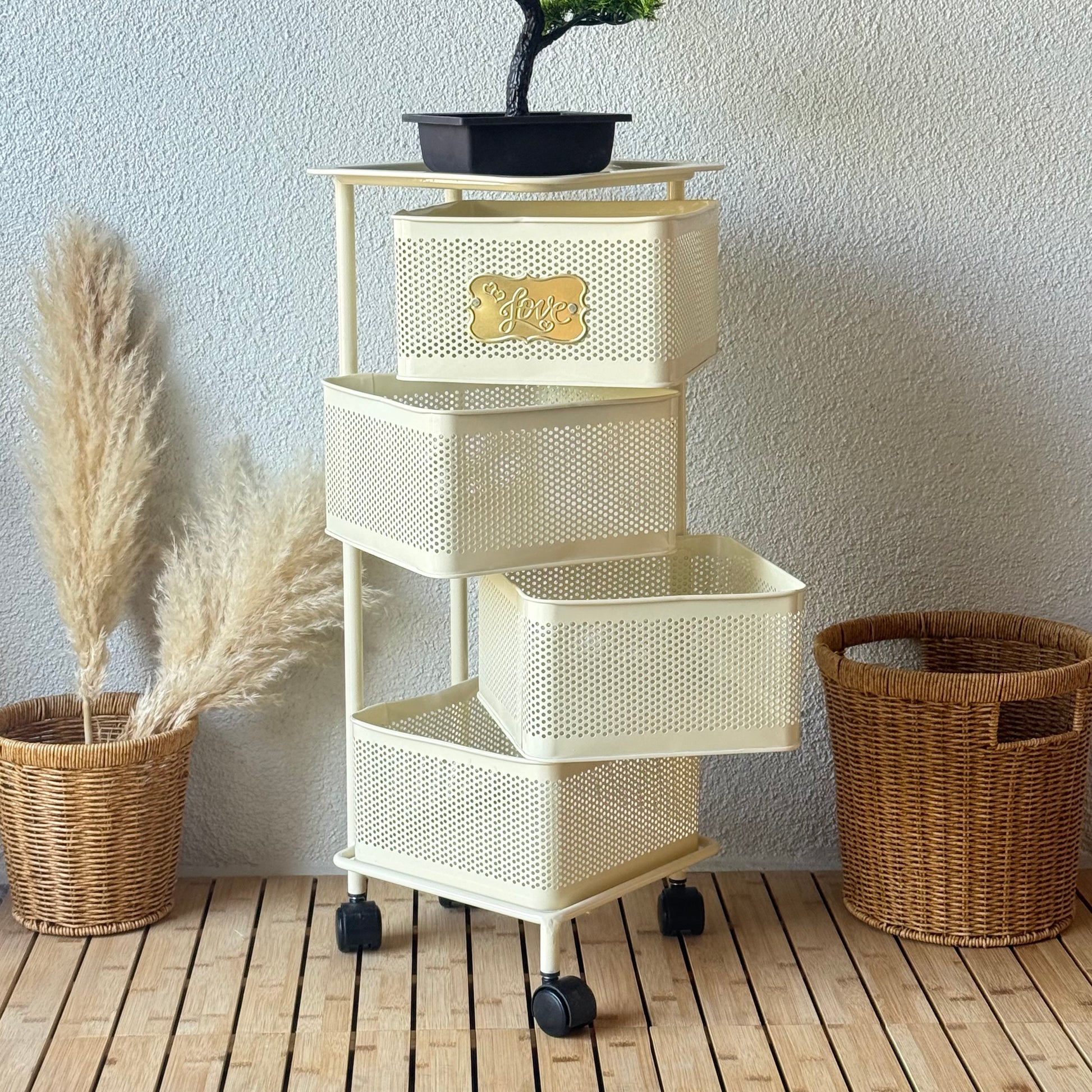 Evanev 4 Katlı Açılır Kapanır Tekerlikli Kare Ferforje Sebzelik Krem KOD:1057K