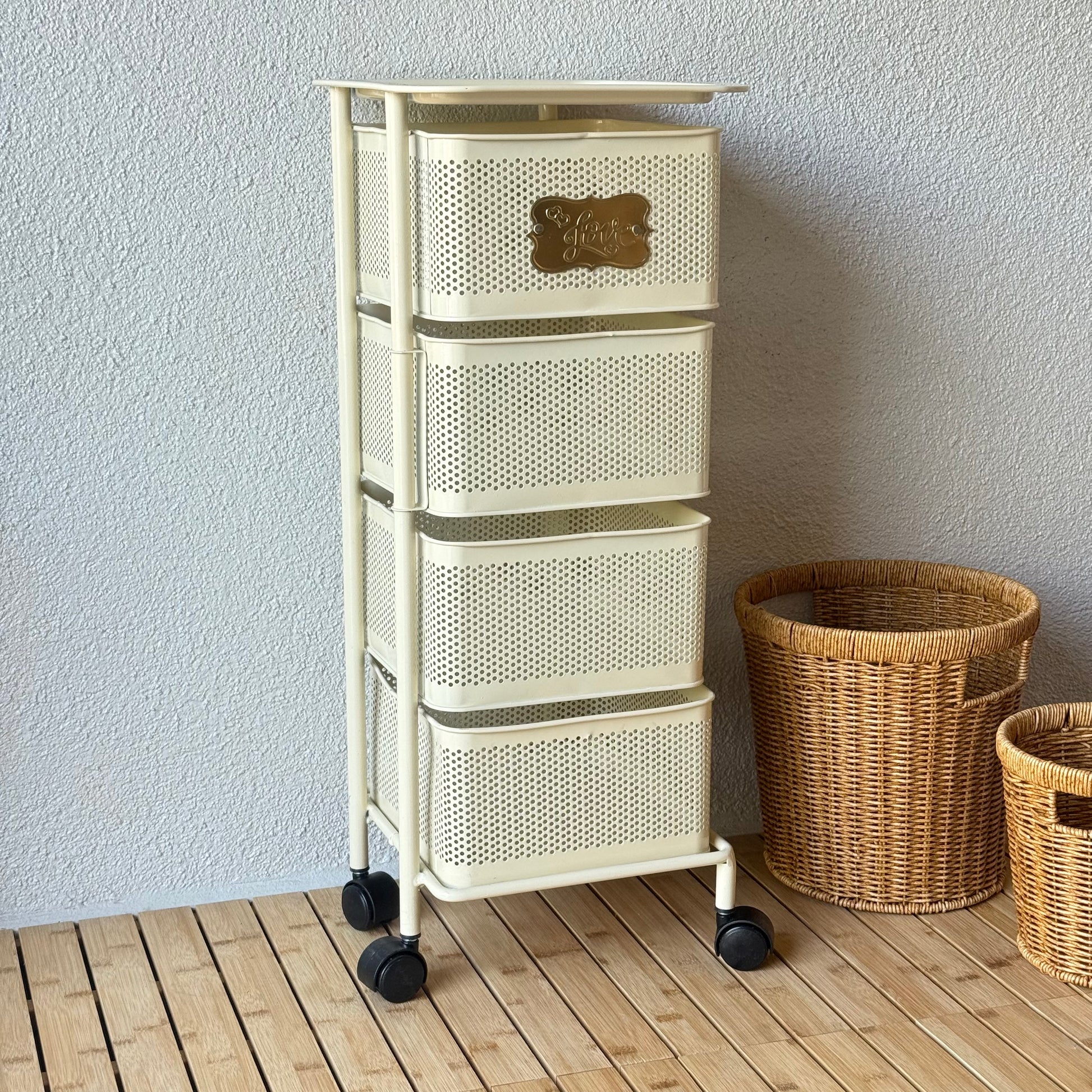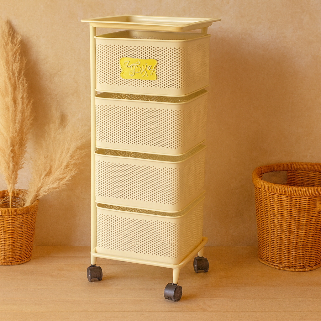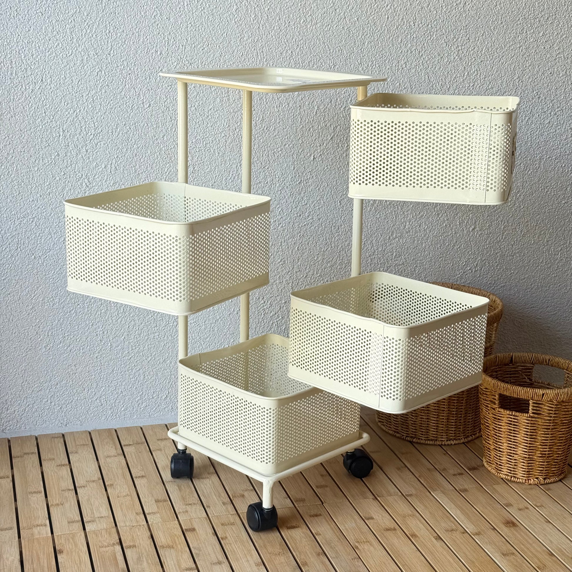 Evanev 4 Katlı Açılır Kapanır Tekerlikli Kare Ferforje Sebzelik Krem KOD:1057K