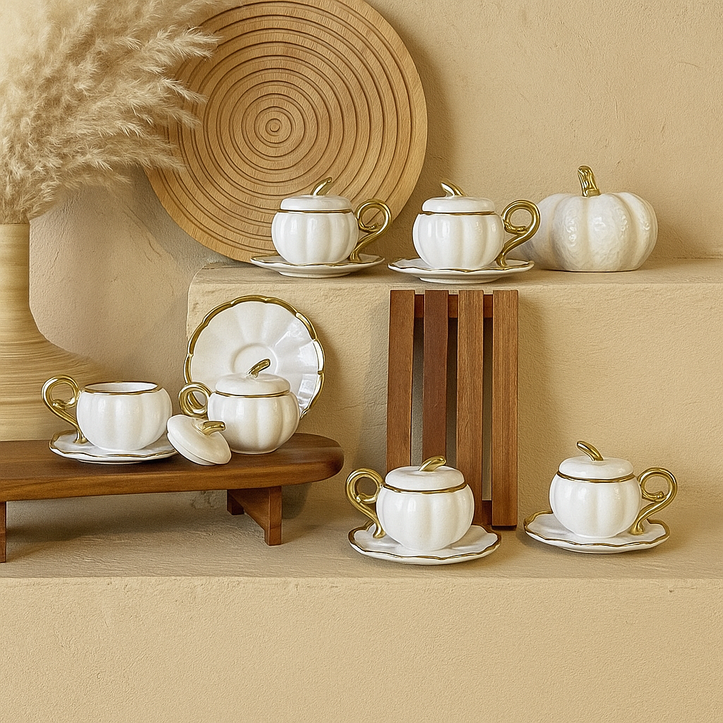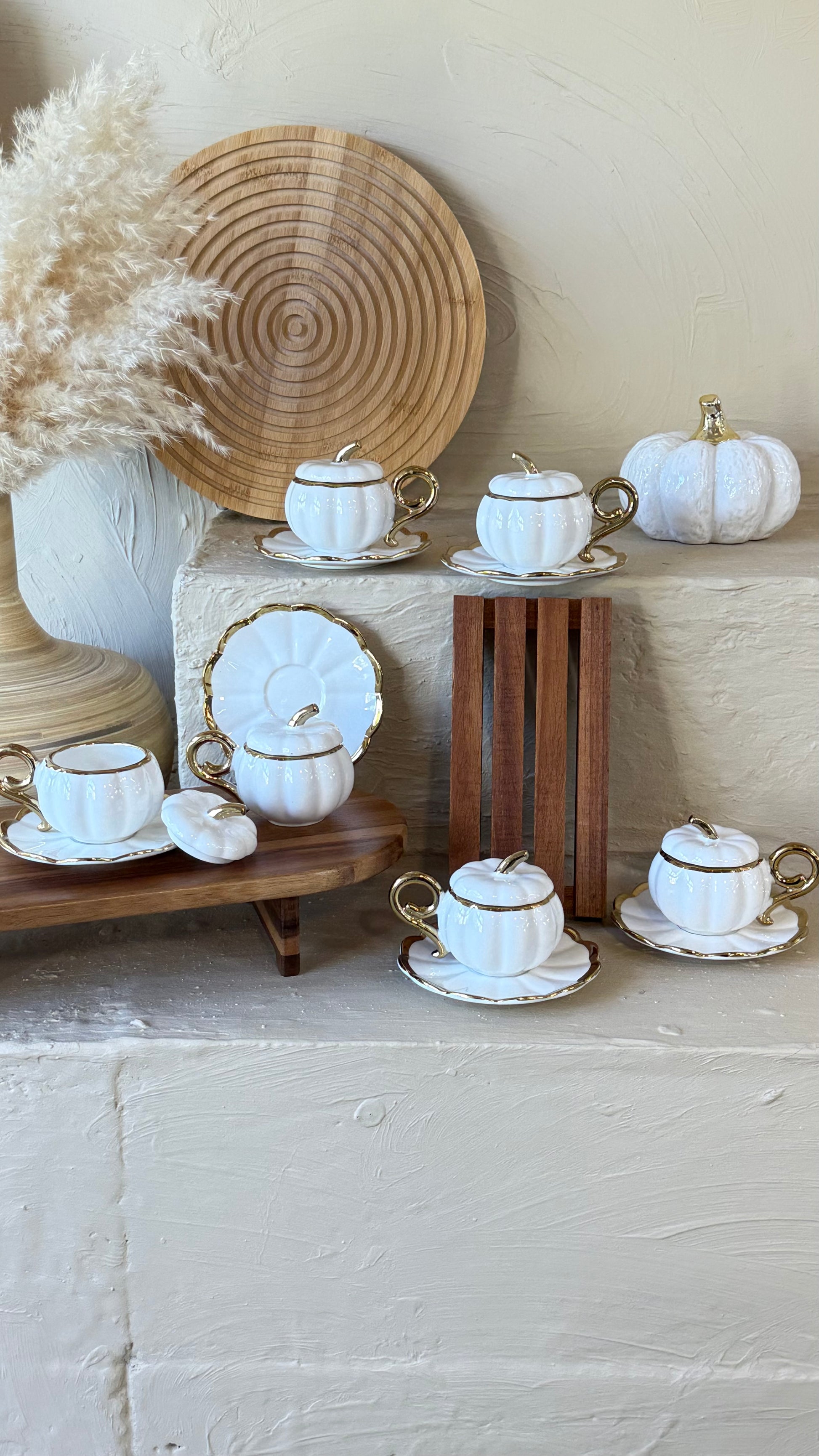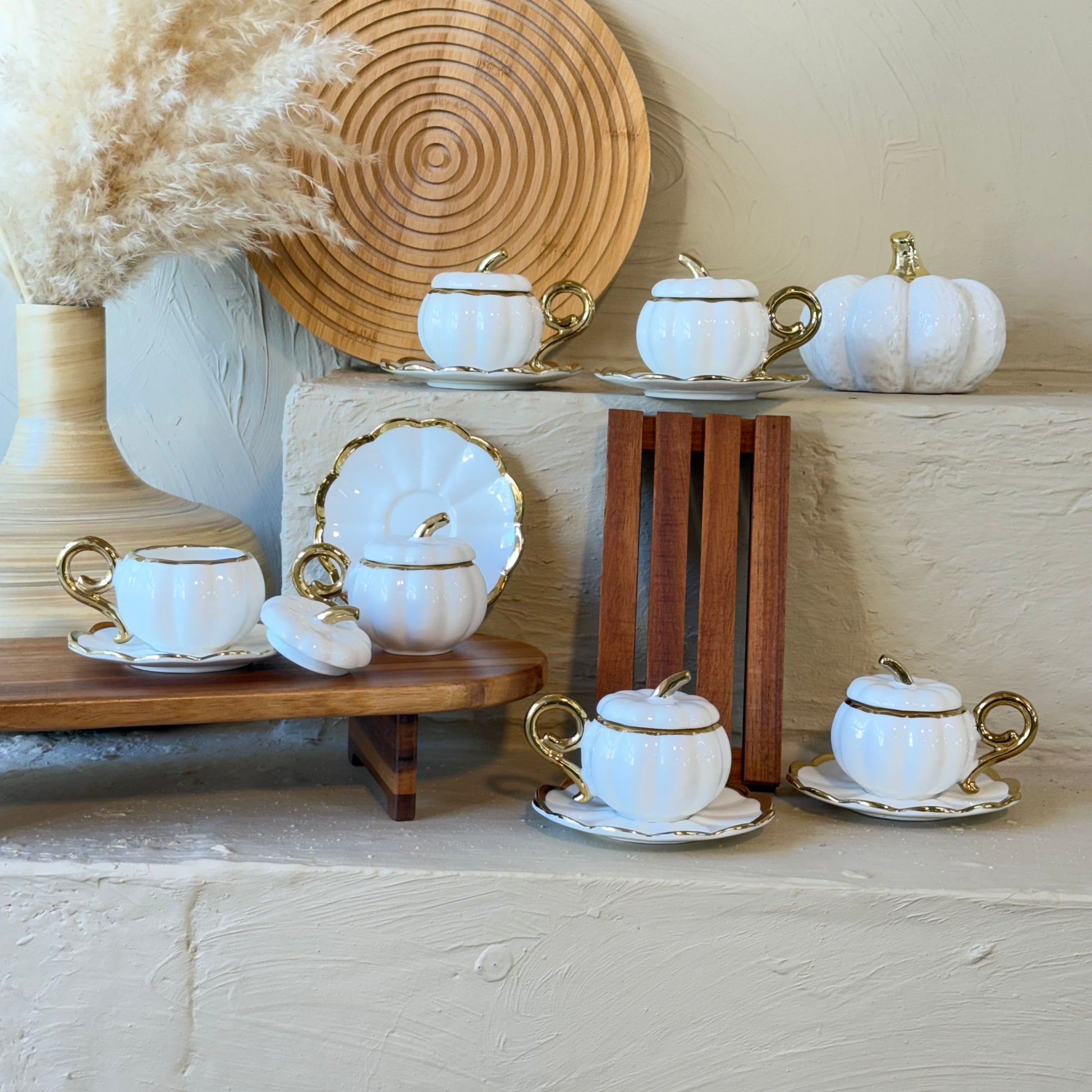 Arow Kabak Model Porselen Kahve Fincan Takımı 6 Kişilik Beyaz
