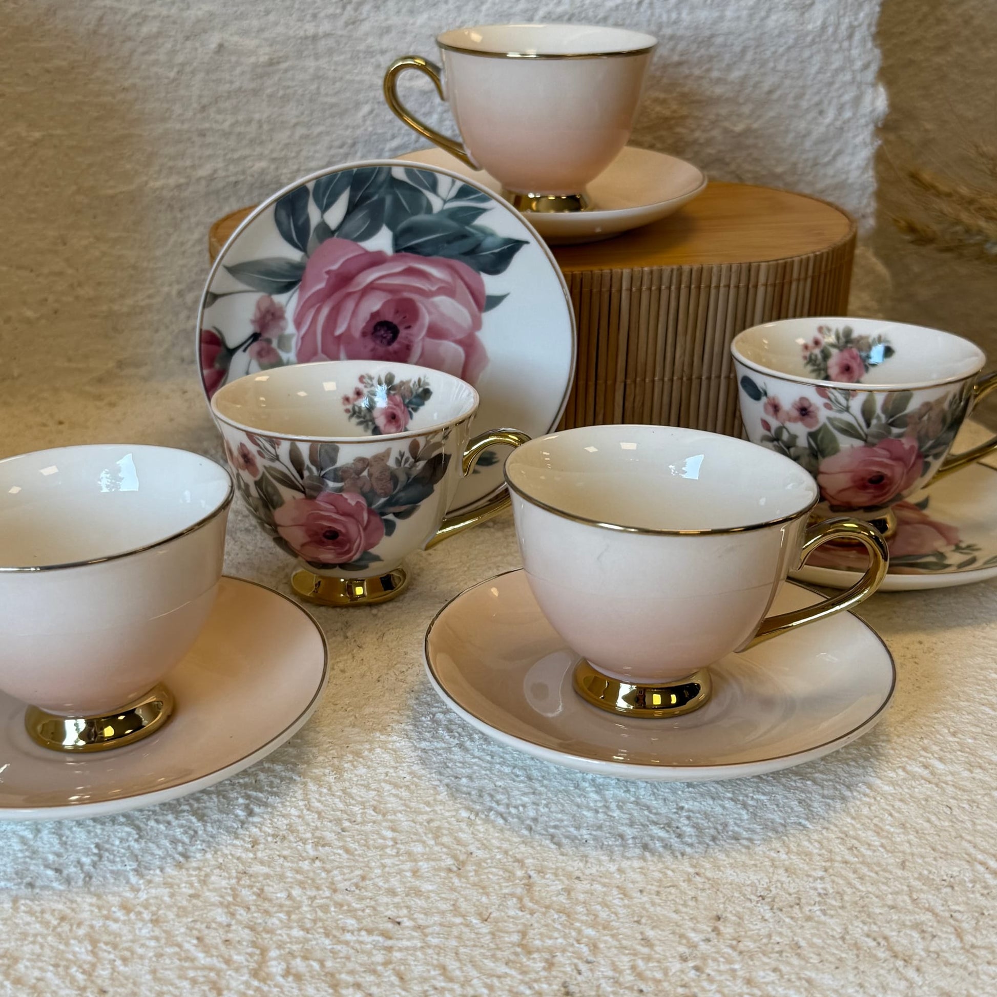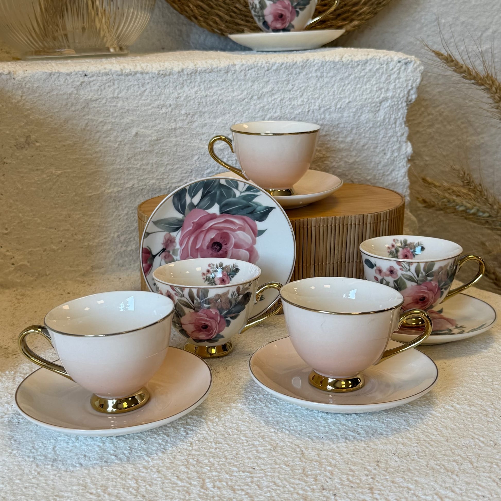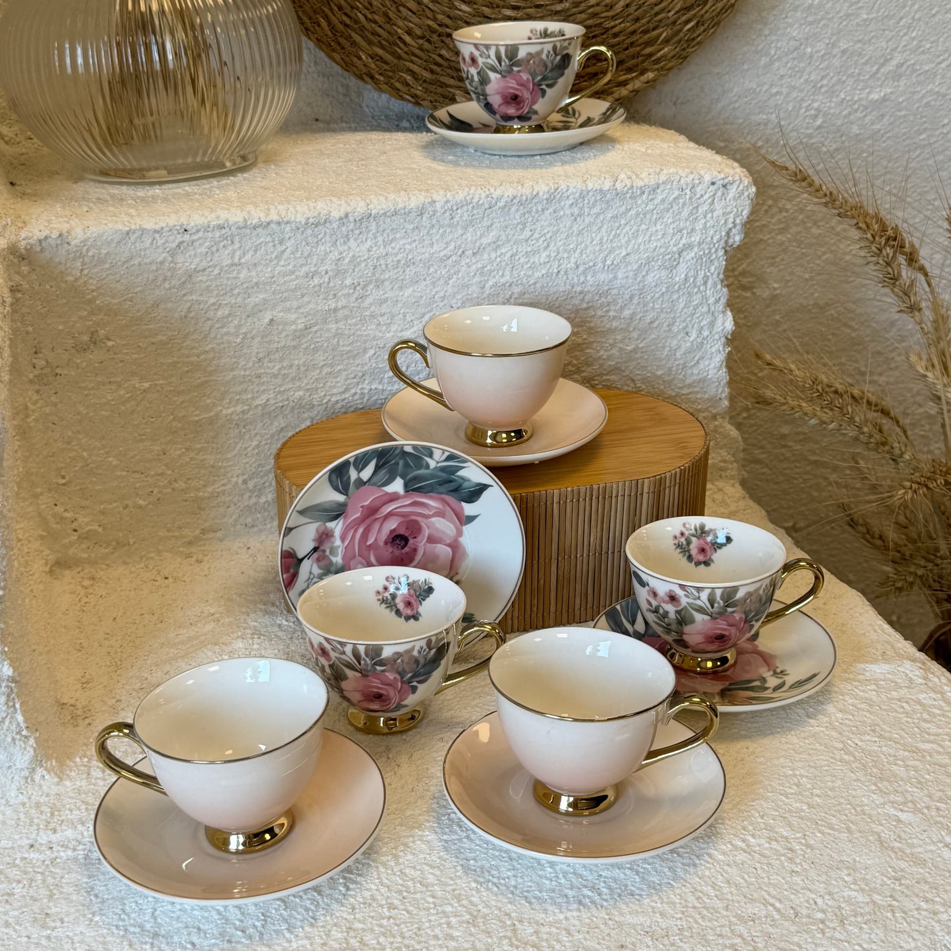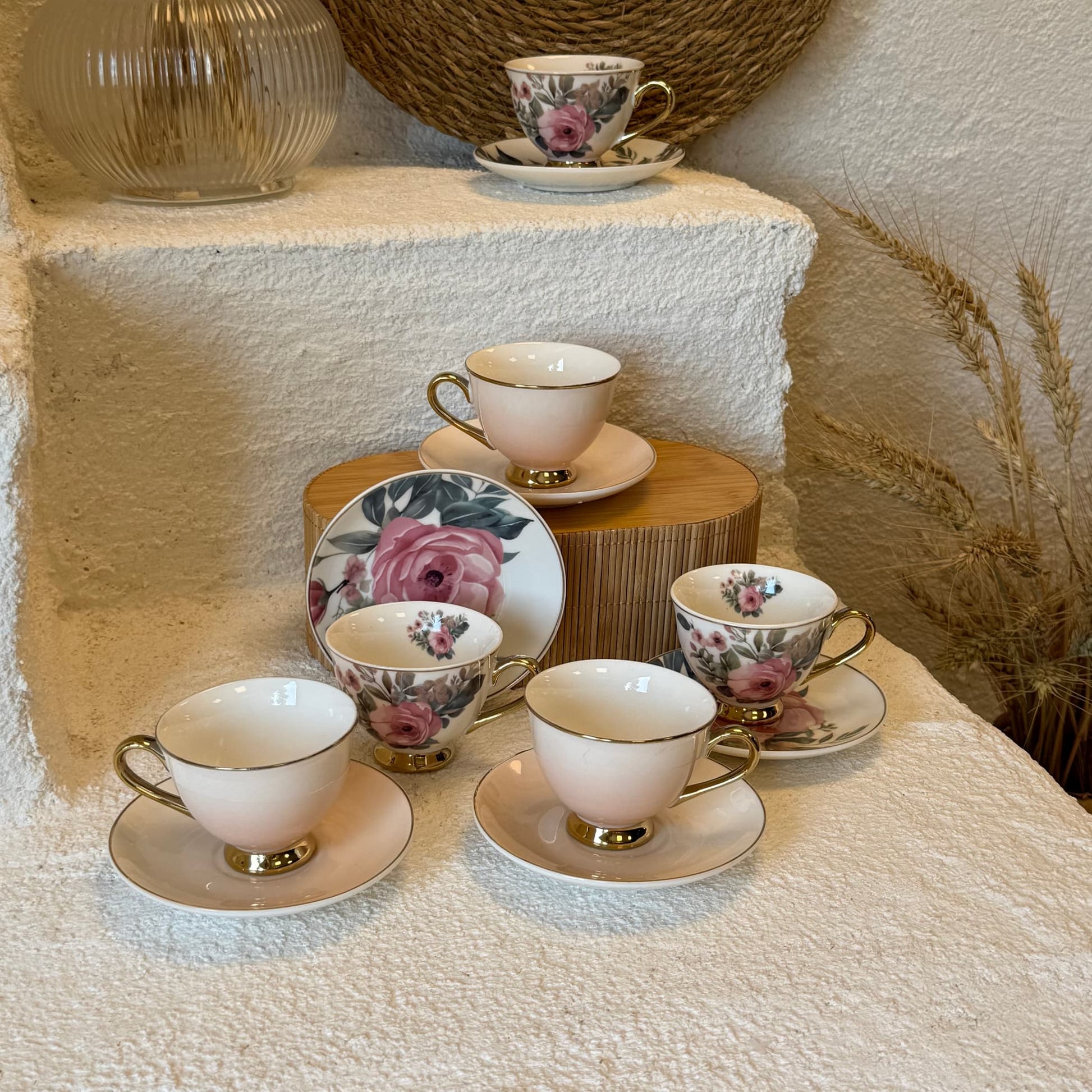 Birdy Çiçekli Porselen Kahve Fincan Takımı 6 Kişilik Pembe