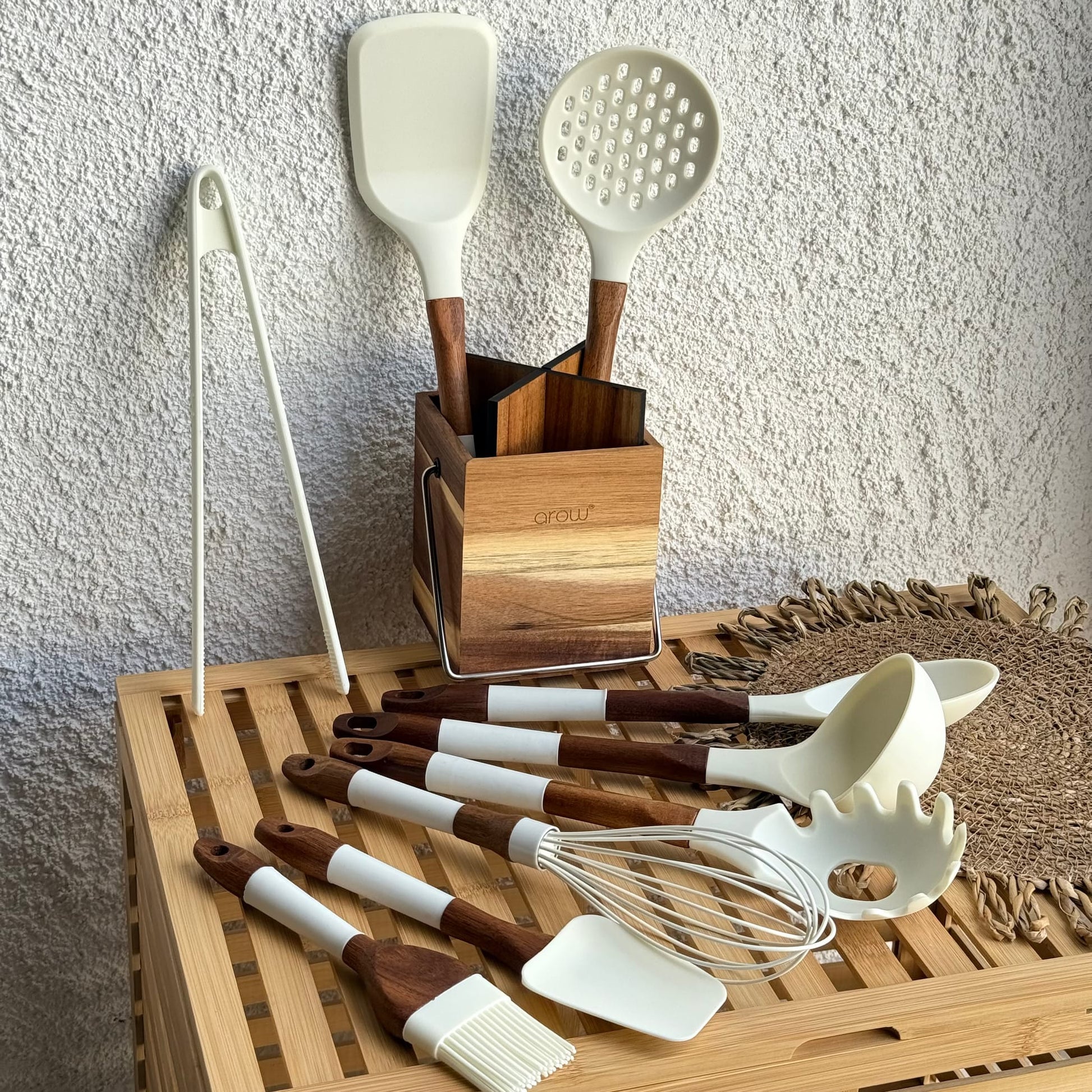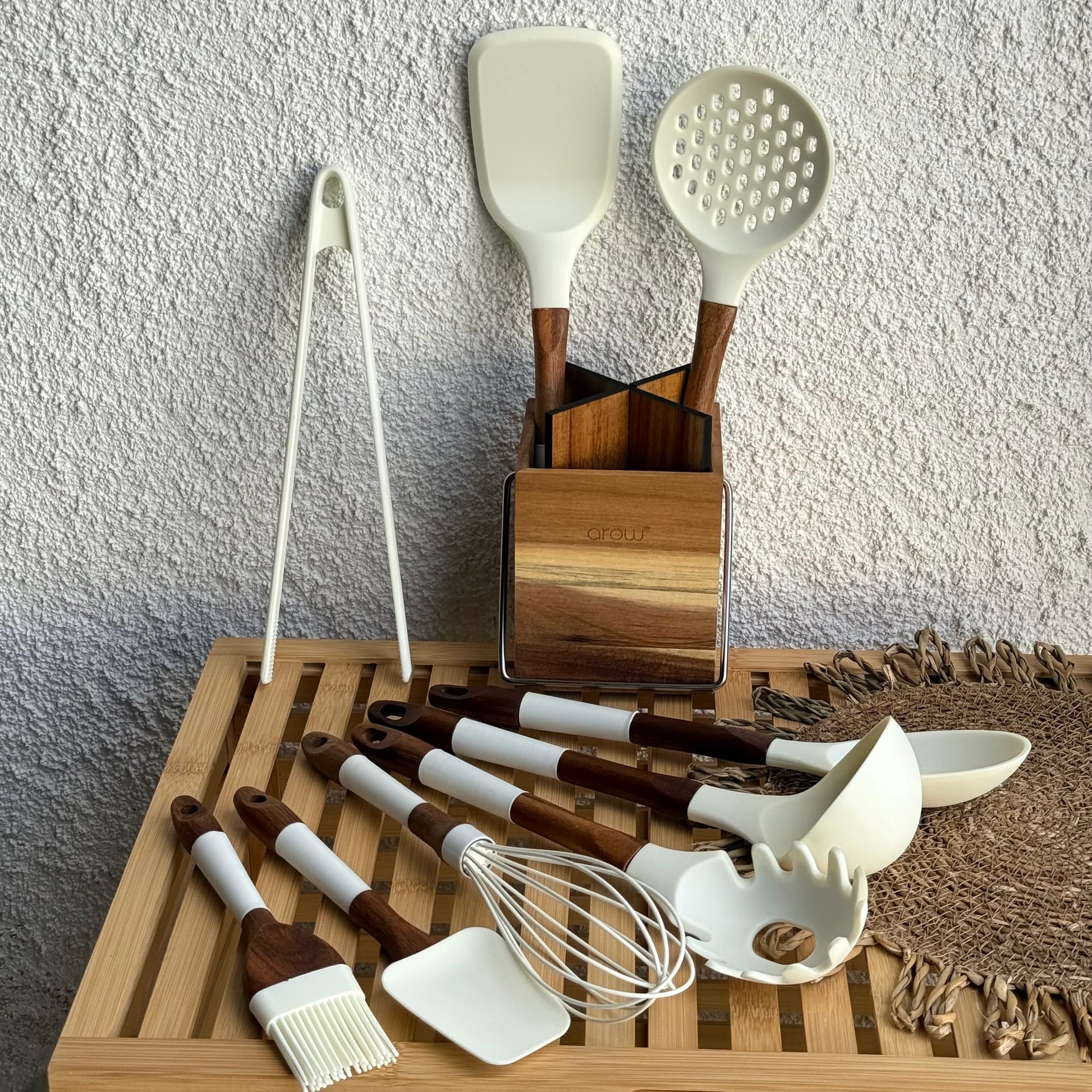 Blanket 9 Parça Akasya Ağacı Silikon Mutfak Seti