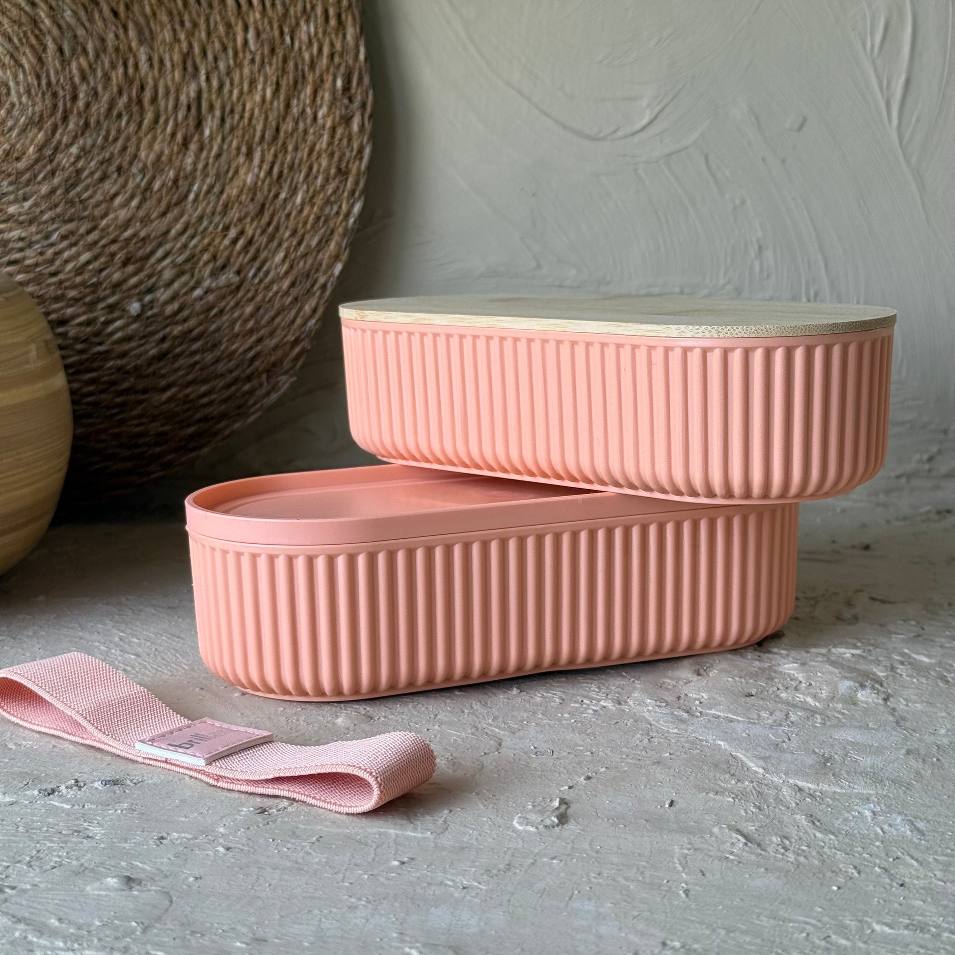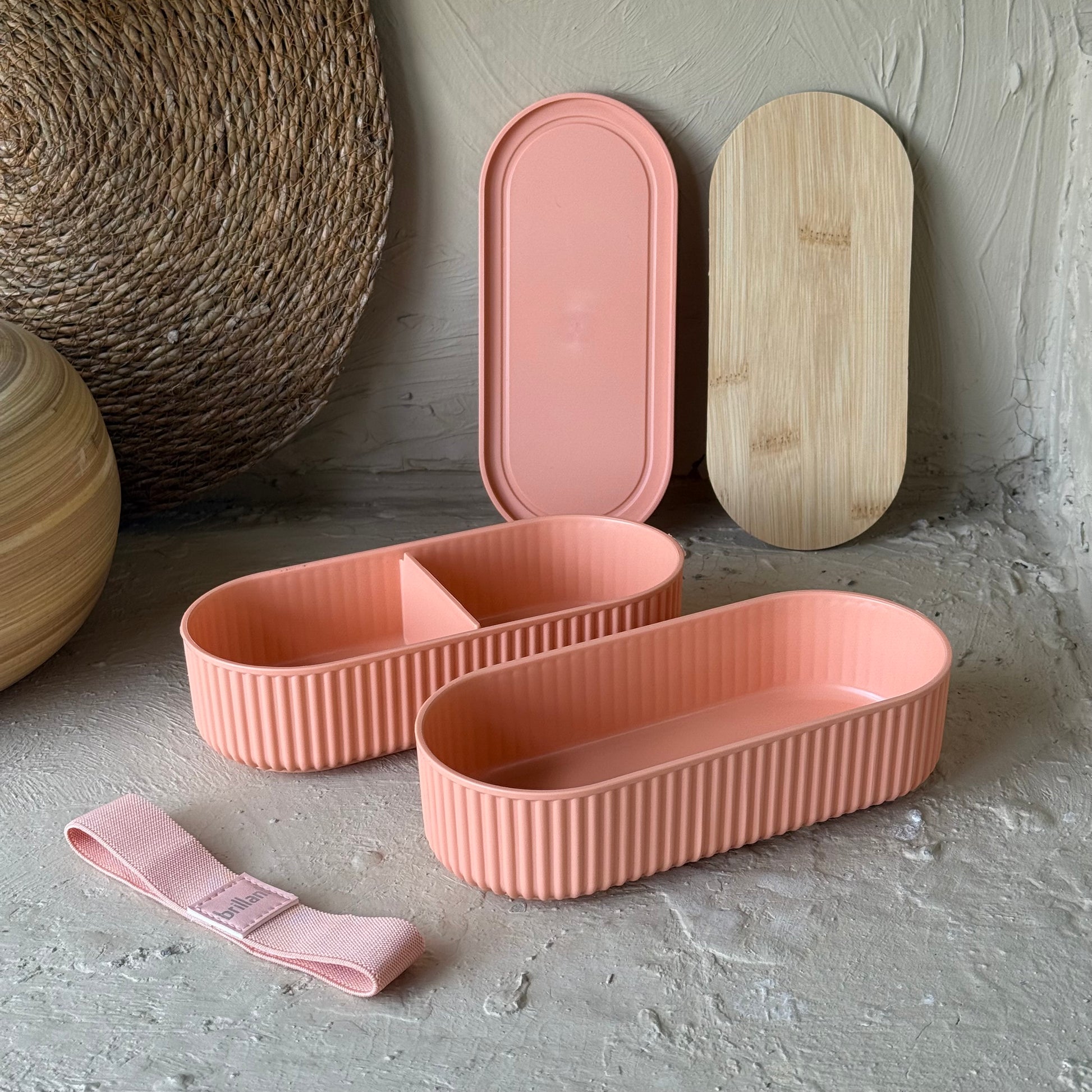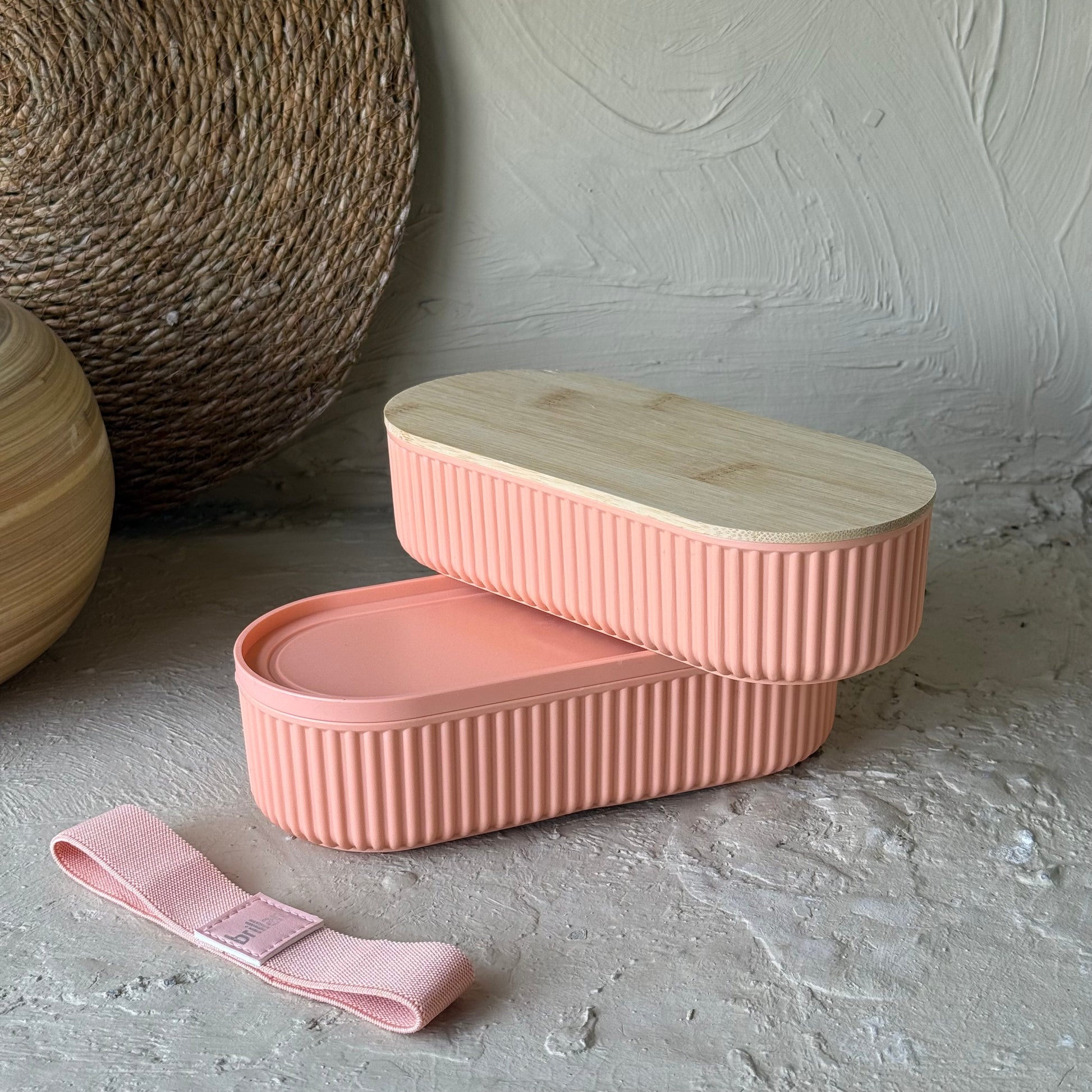 Brillant Bambu Kapaklı Oval Saklama veya Beslenme Kabı Koral