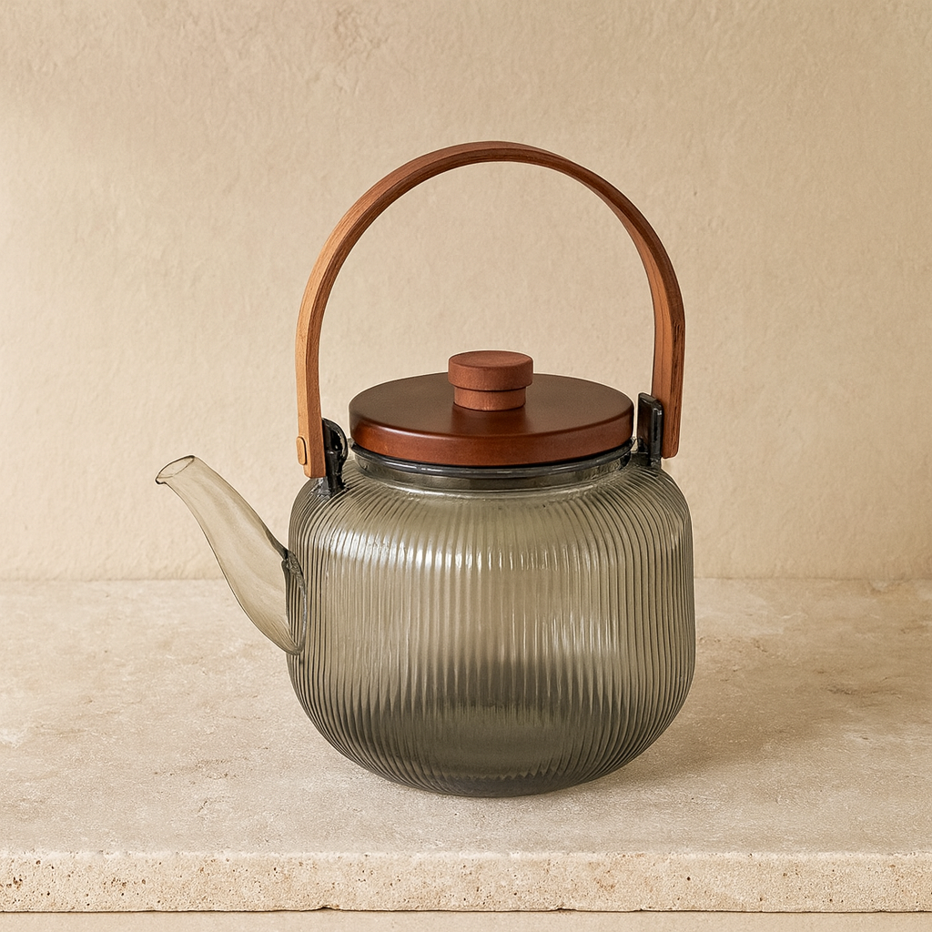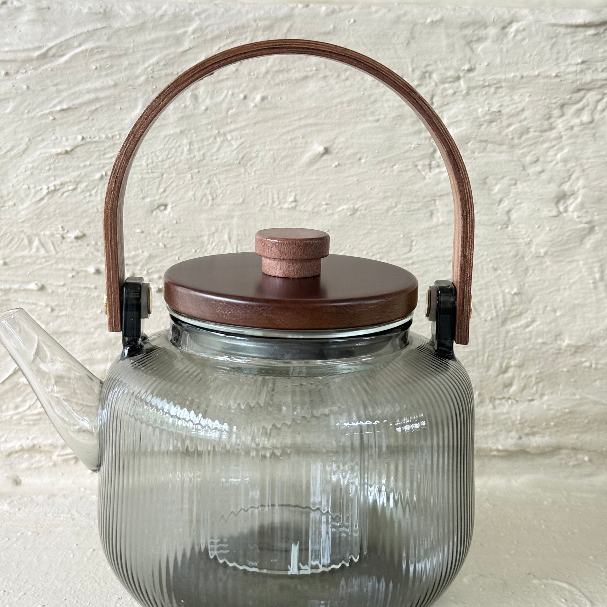 Buenos Borosilikat Cam Çizgili Model Akasya Ağacı Kapaklı Demlik KOD:16992-5