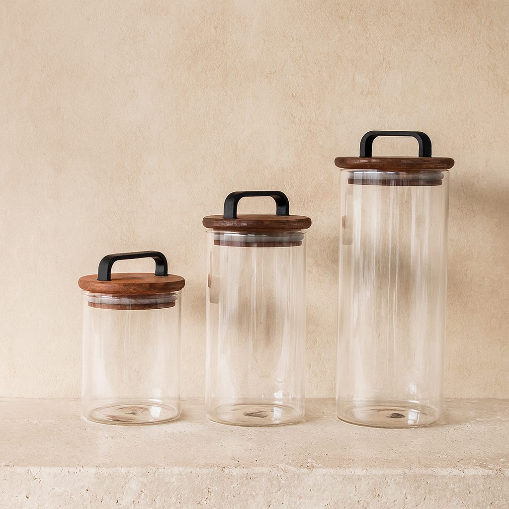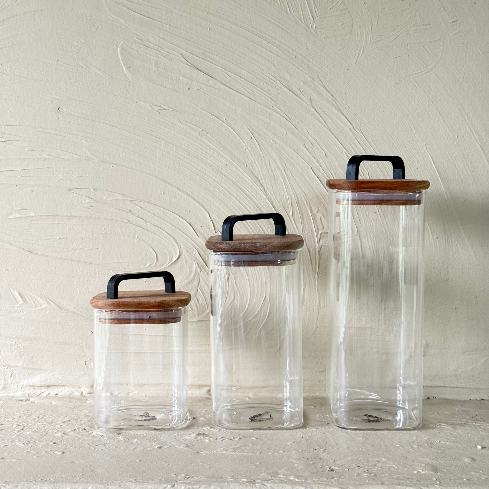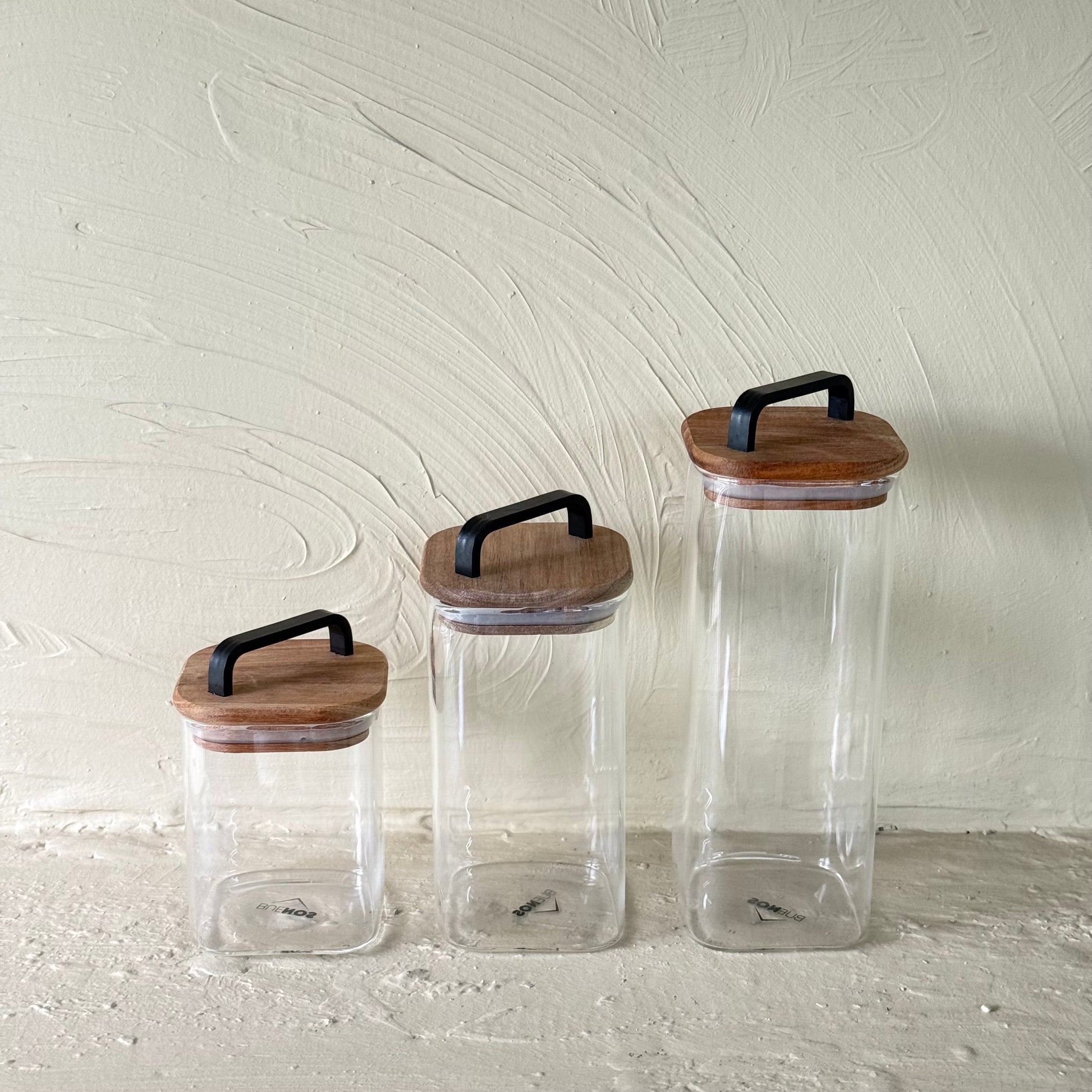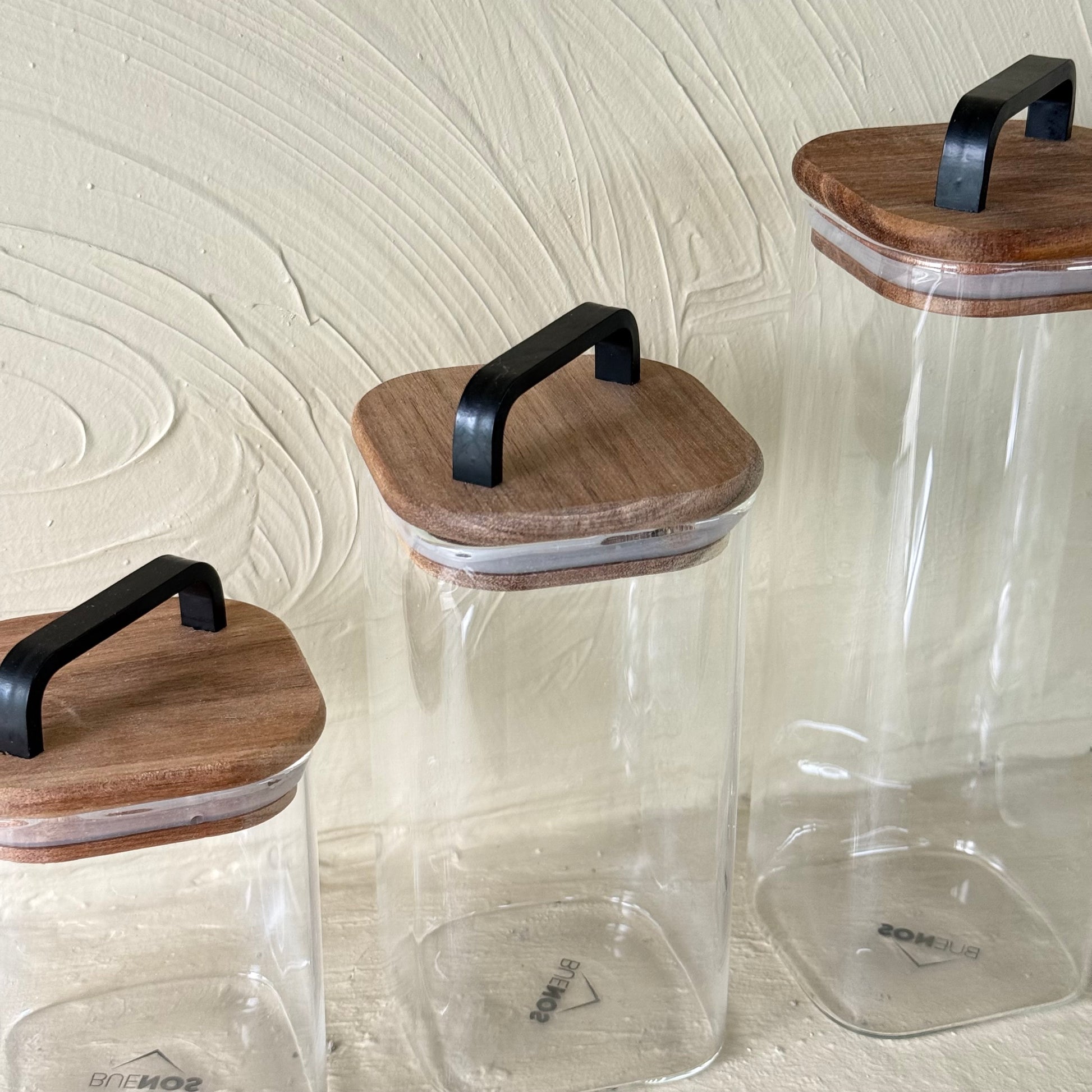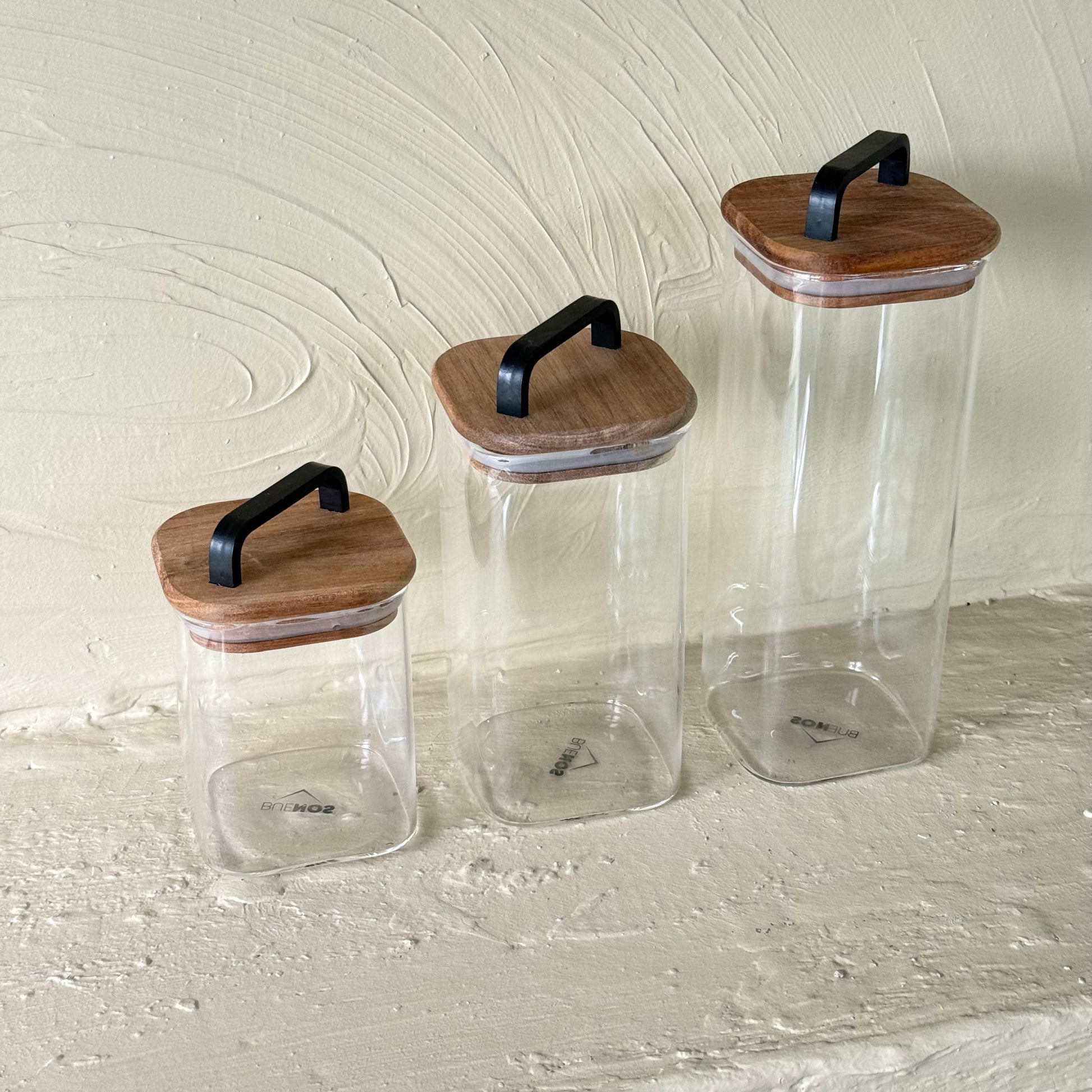 Buenos Kare Model Akasya Ağacı Kapaklı 3 Boy Erzak Kavanoz Seti