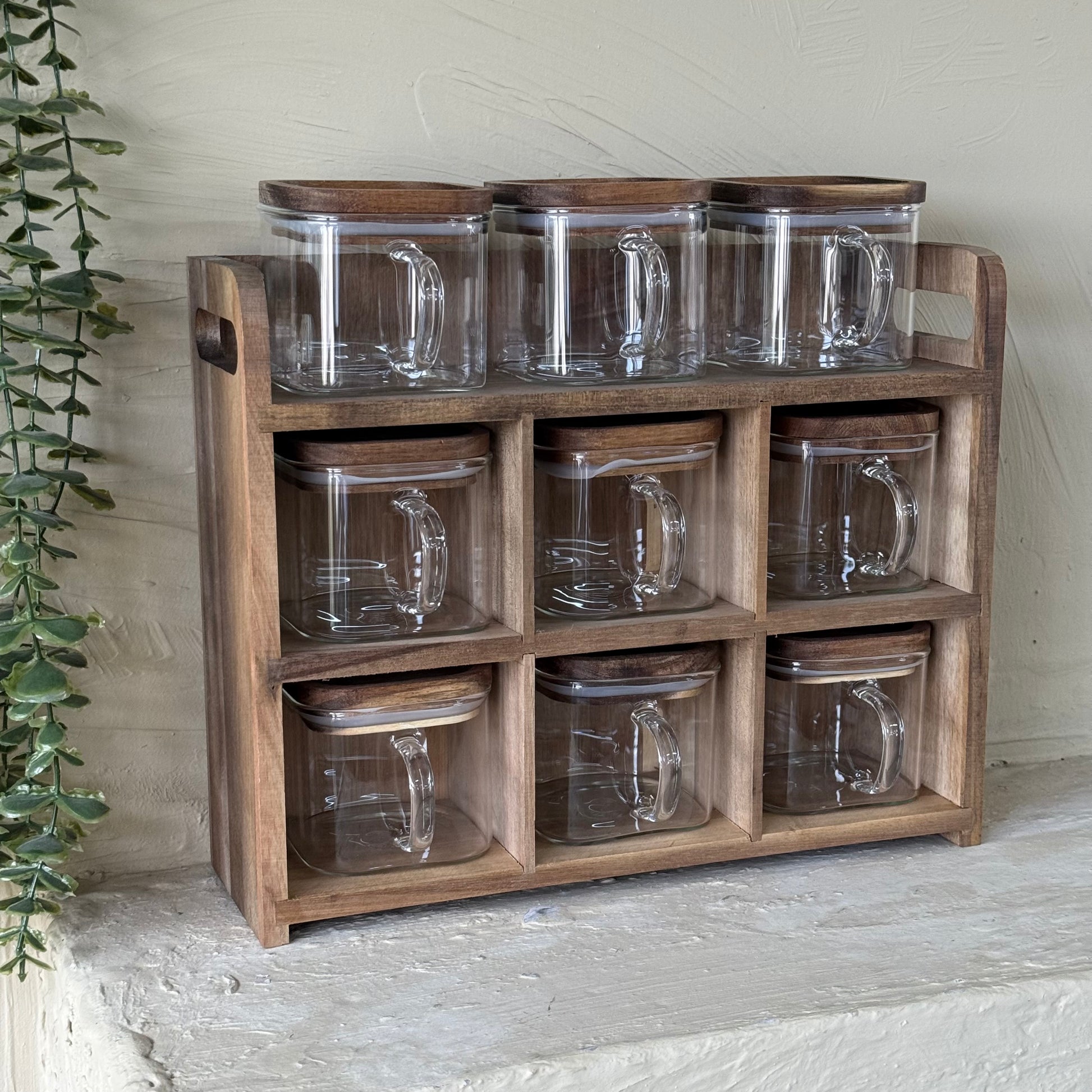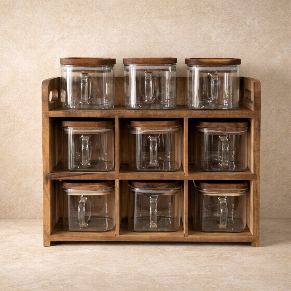 Buenoslly 10 Parça Kare Baharatlık Seti Akasya Ağacı Standlı KOD:117