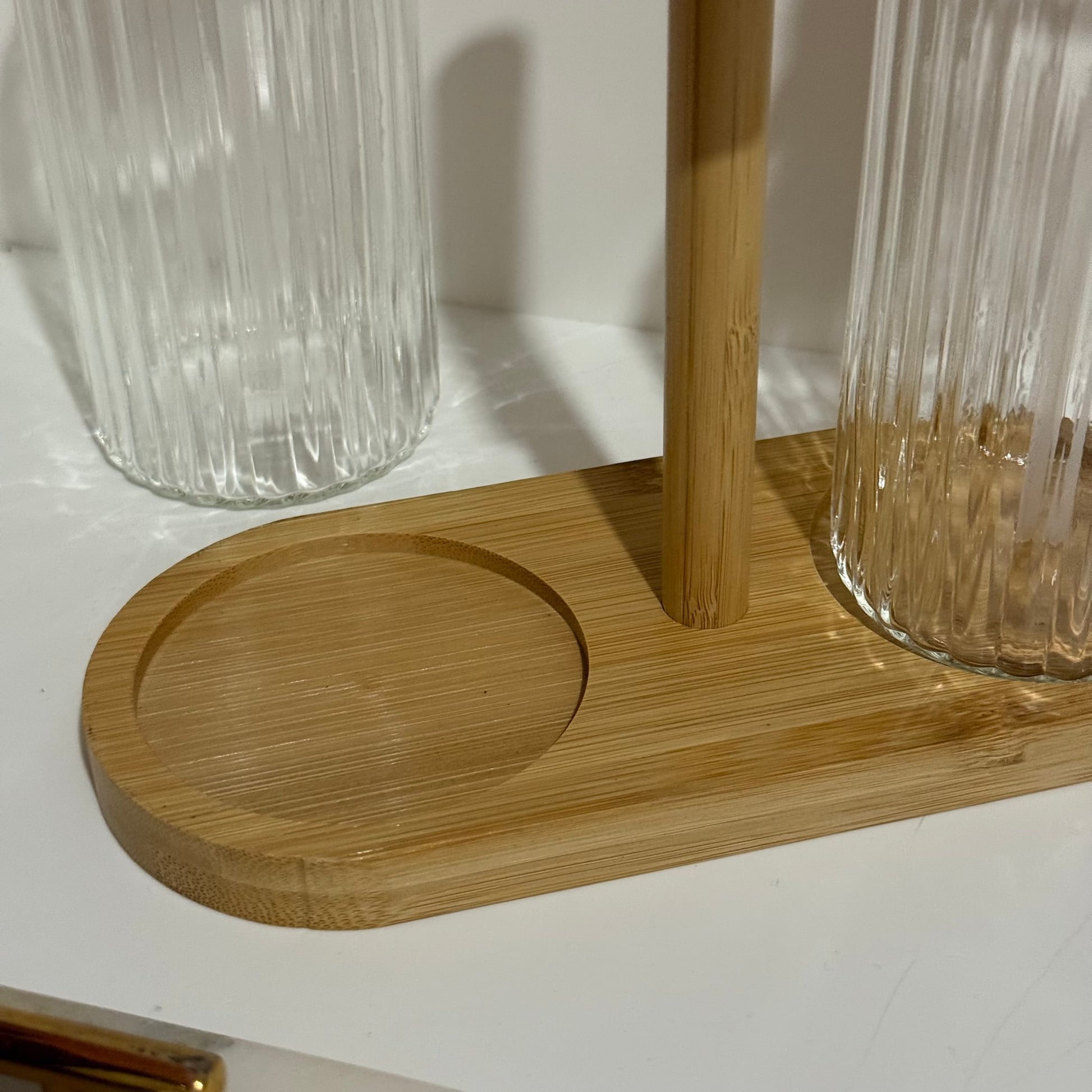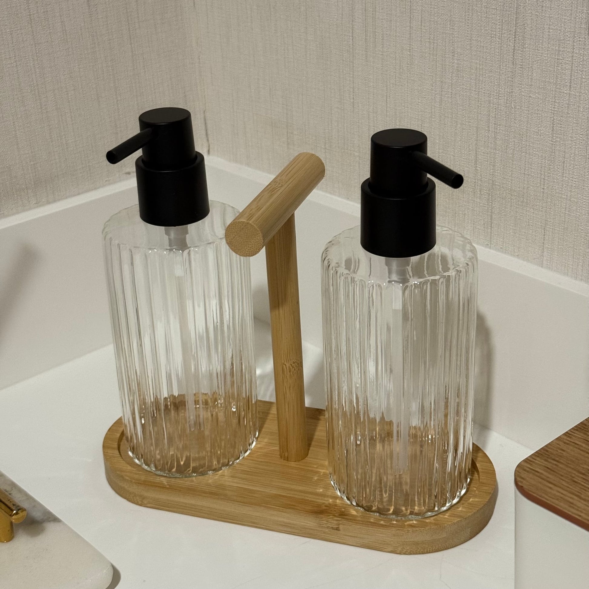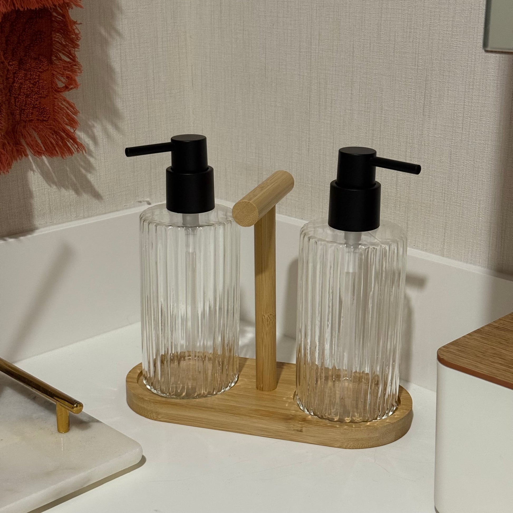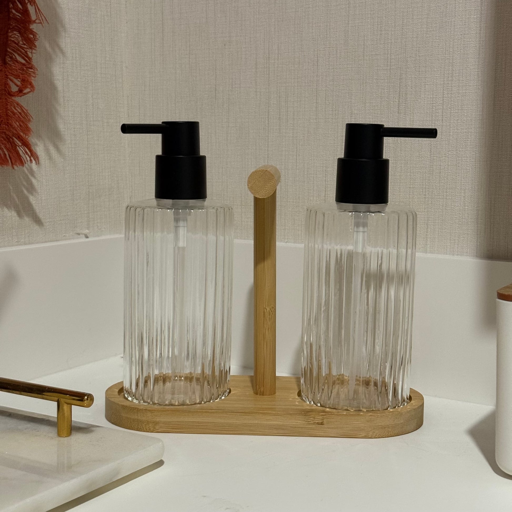 Coco Bambu Standlı Cam İkili Sıvı Sabunluk Seti Kod:10990