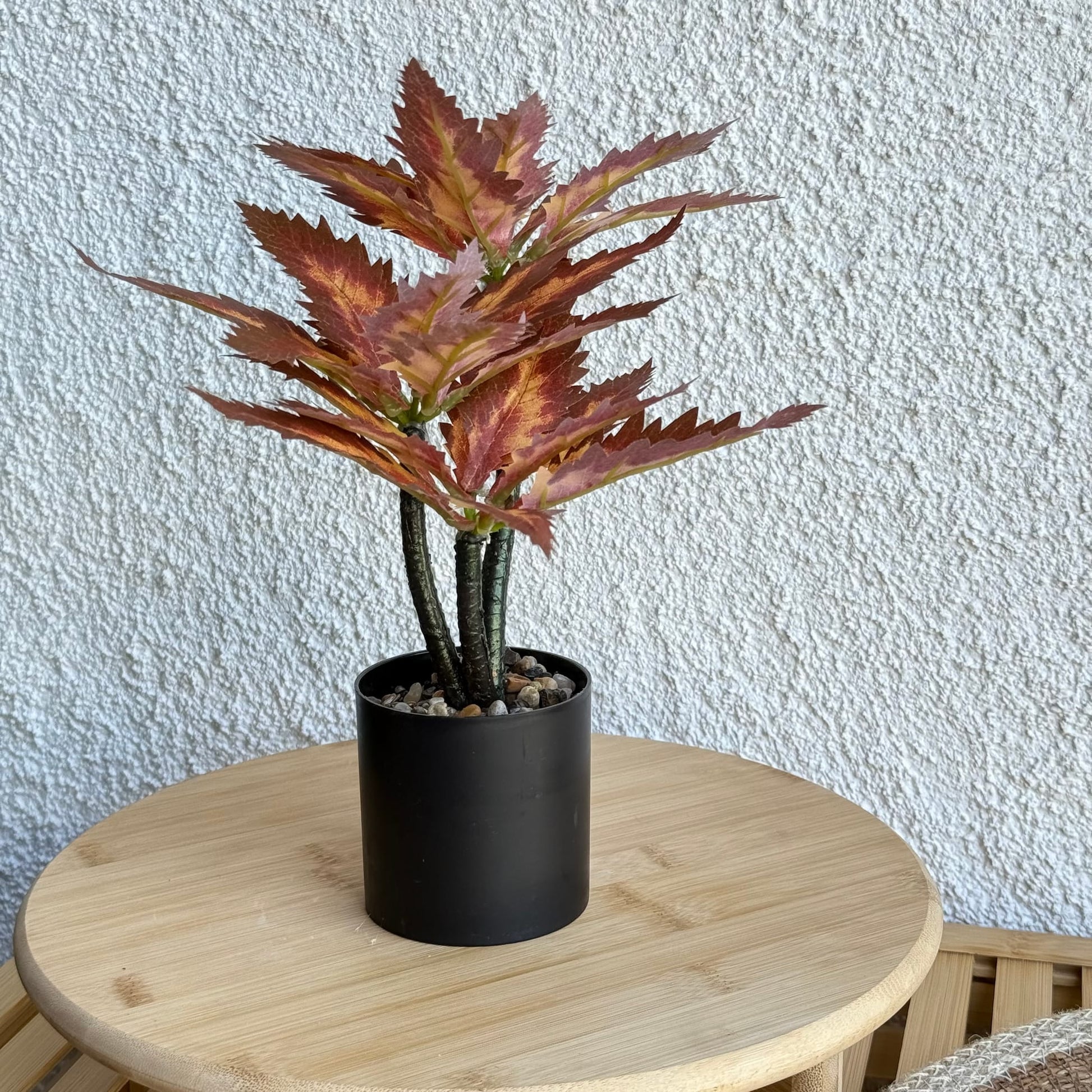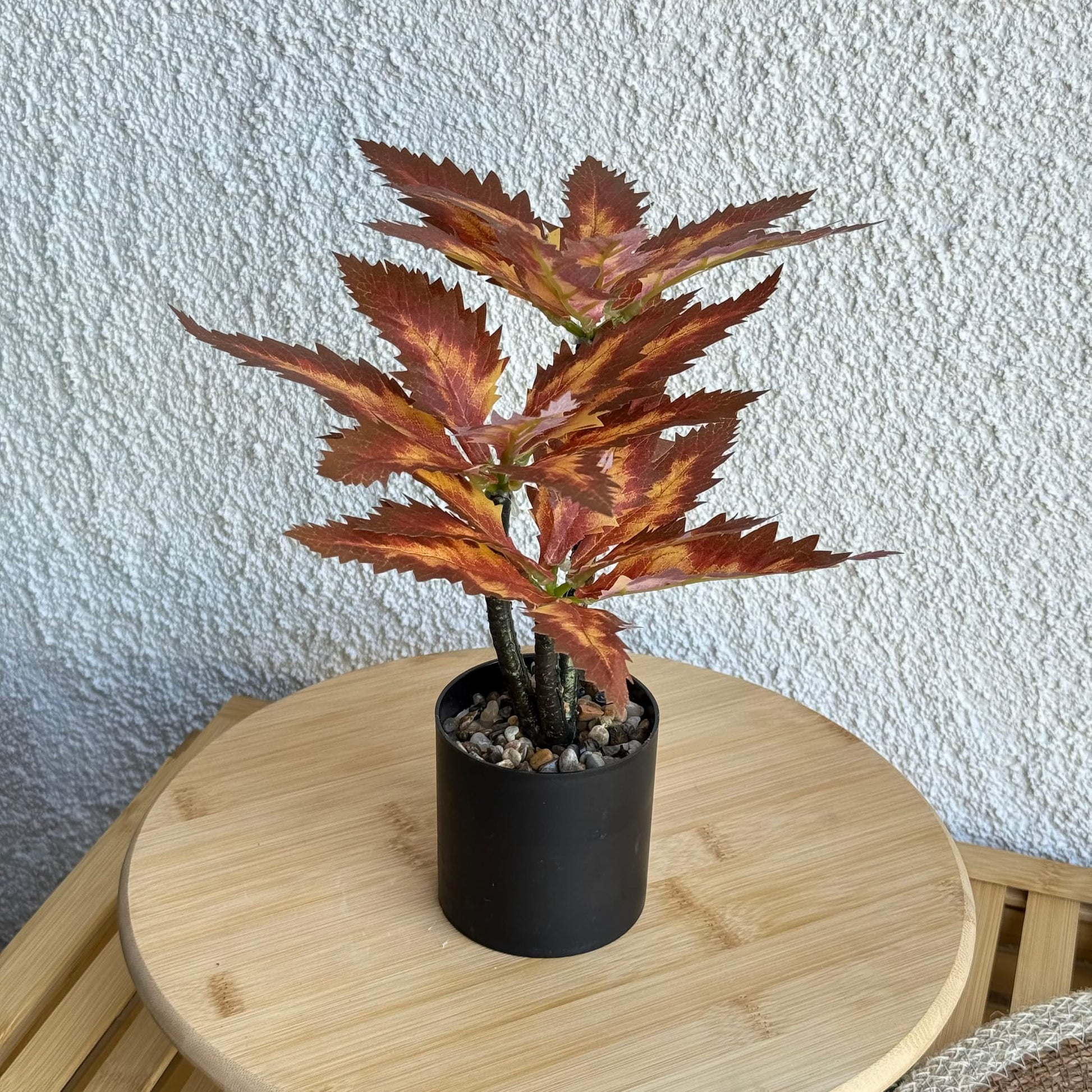 Coleus Saksılı Yapay Çiçek 30 cm Turuncu-Bordo