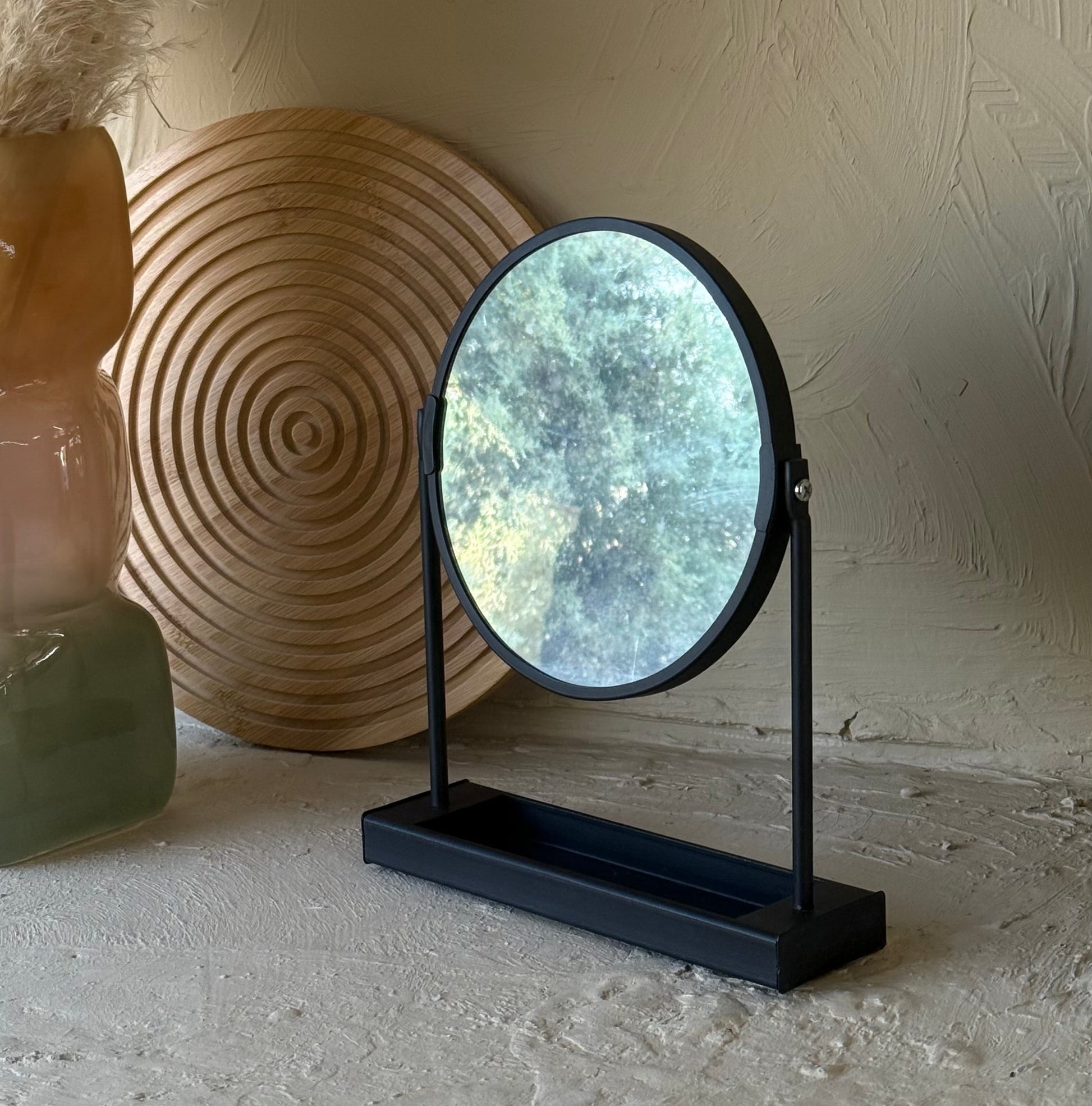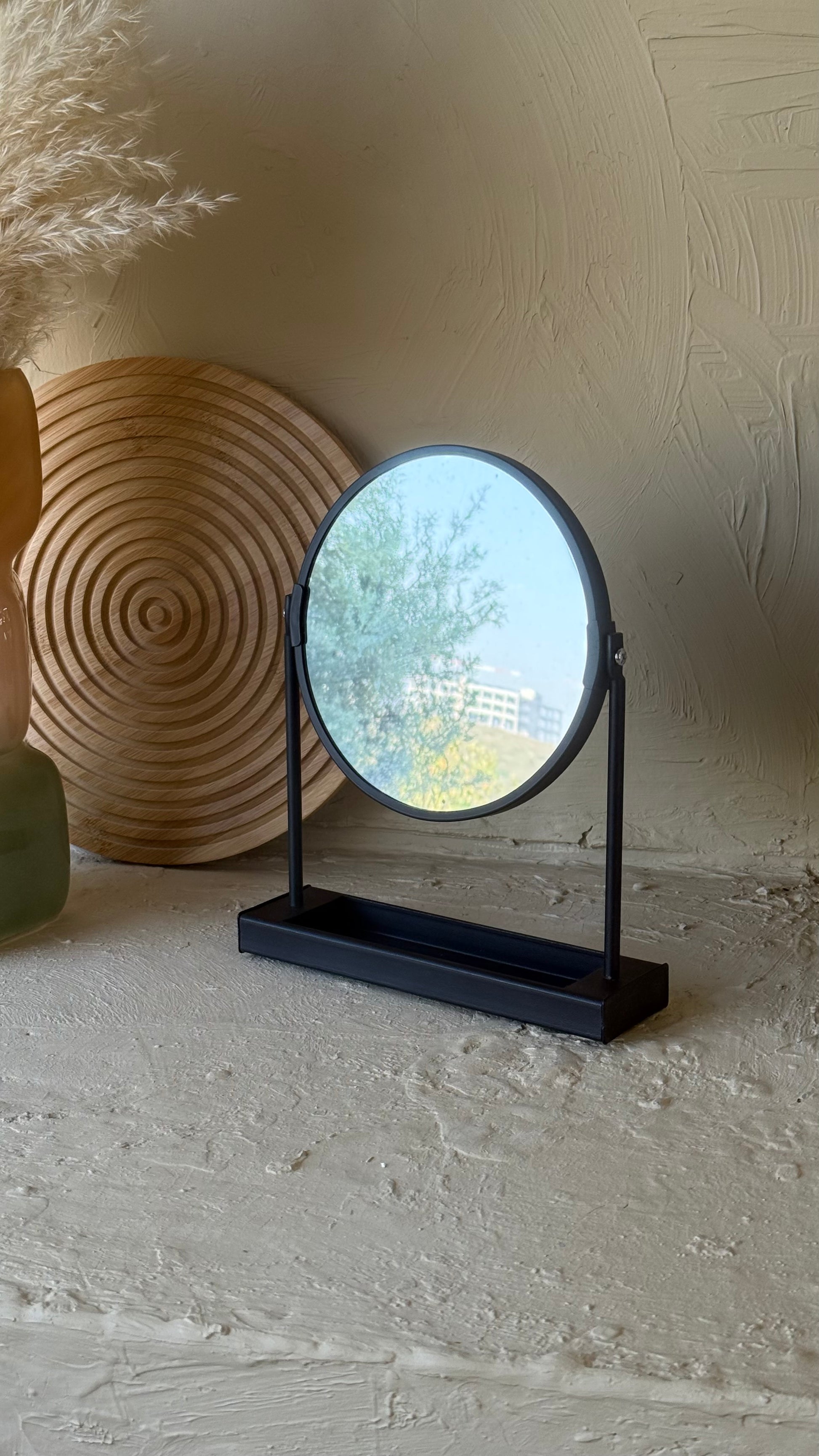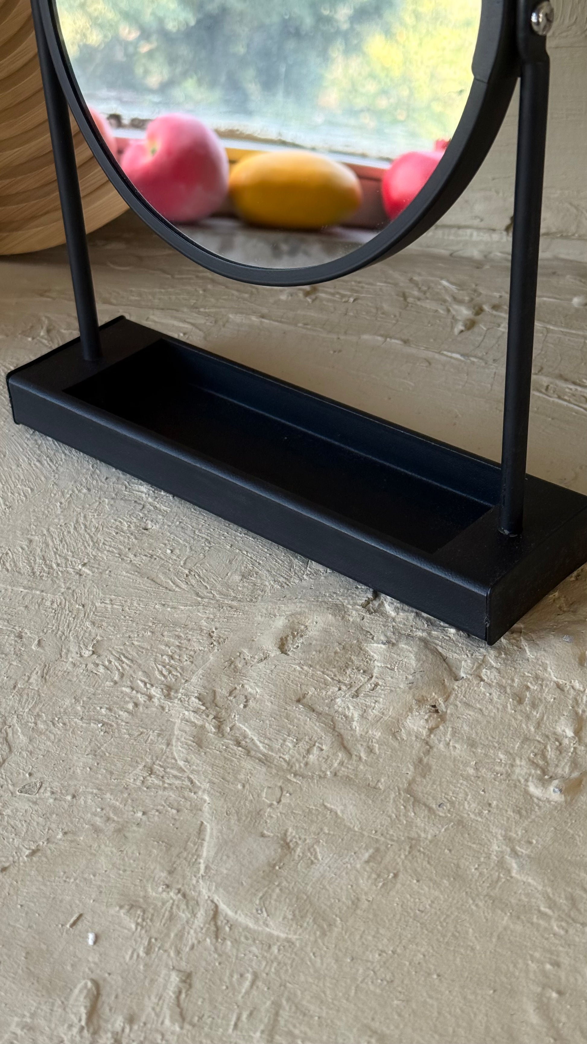 Cora Metal Standlı Yuvarlak Ayna Mat Siyah 25x19 cm KOD:3097