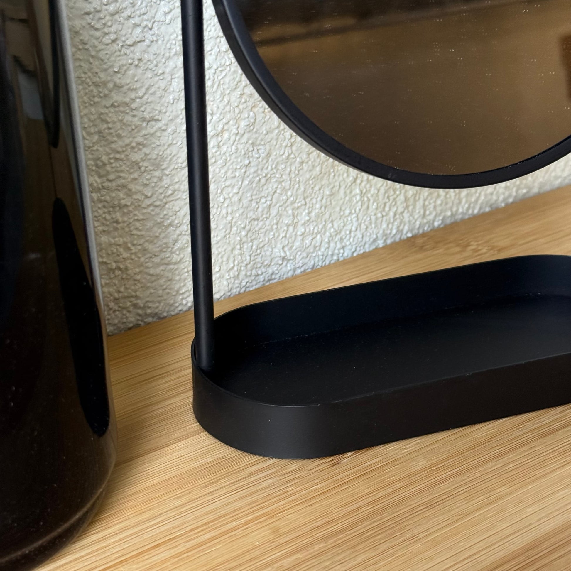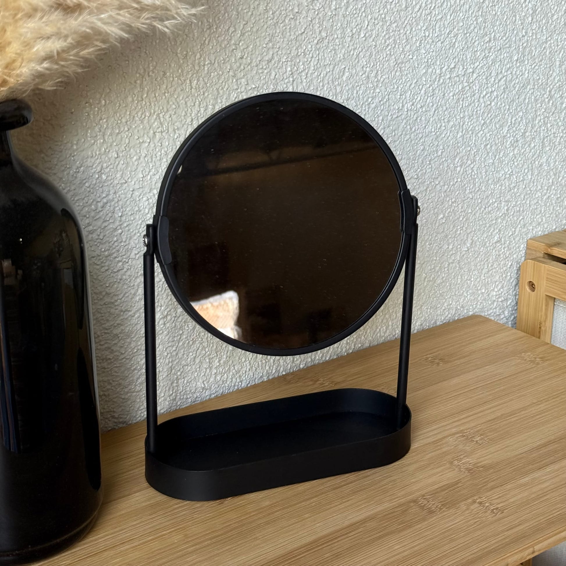Cora Metal Standlı Yuvarlak Ayna Mat Siyah 25x19 cm