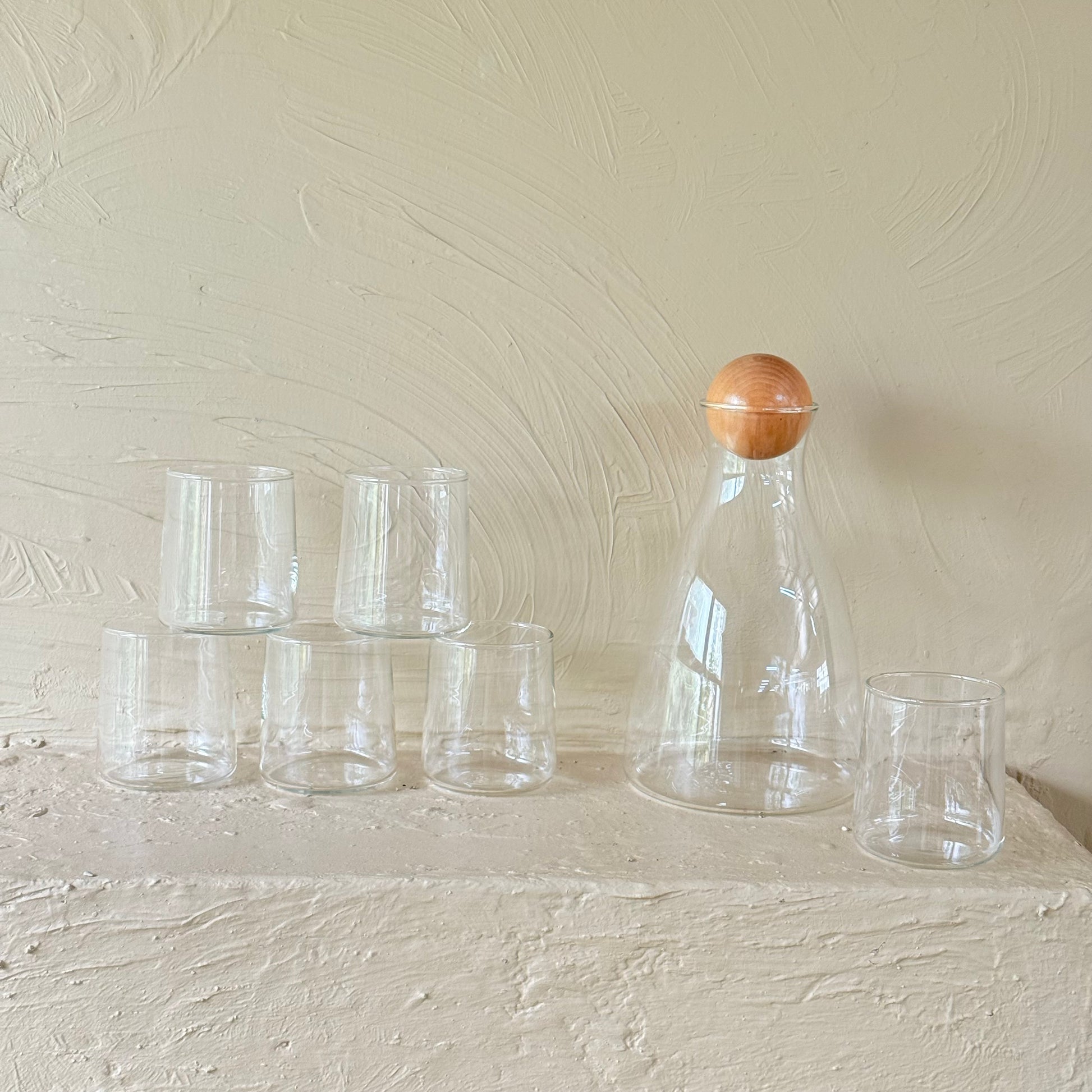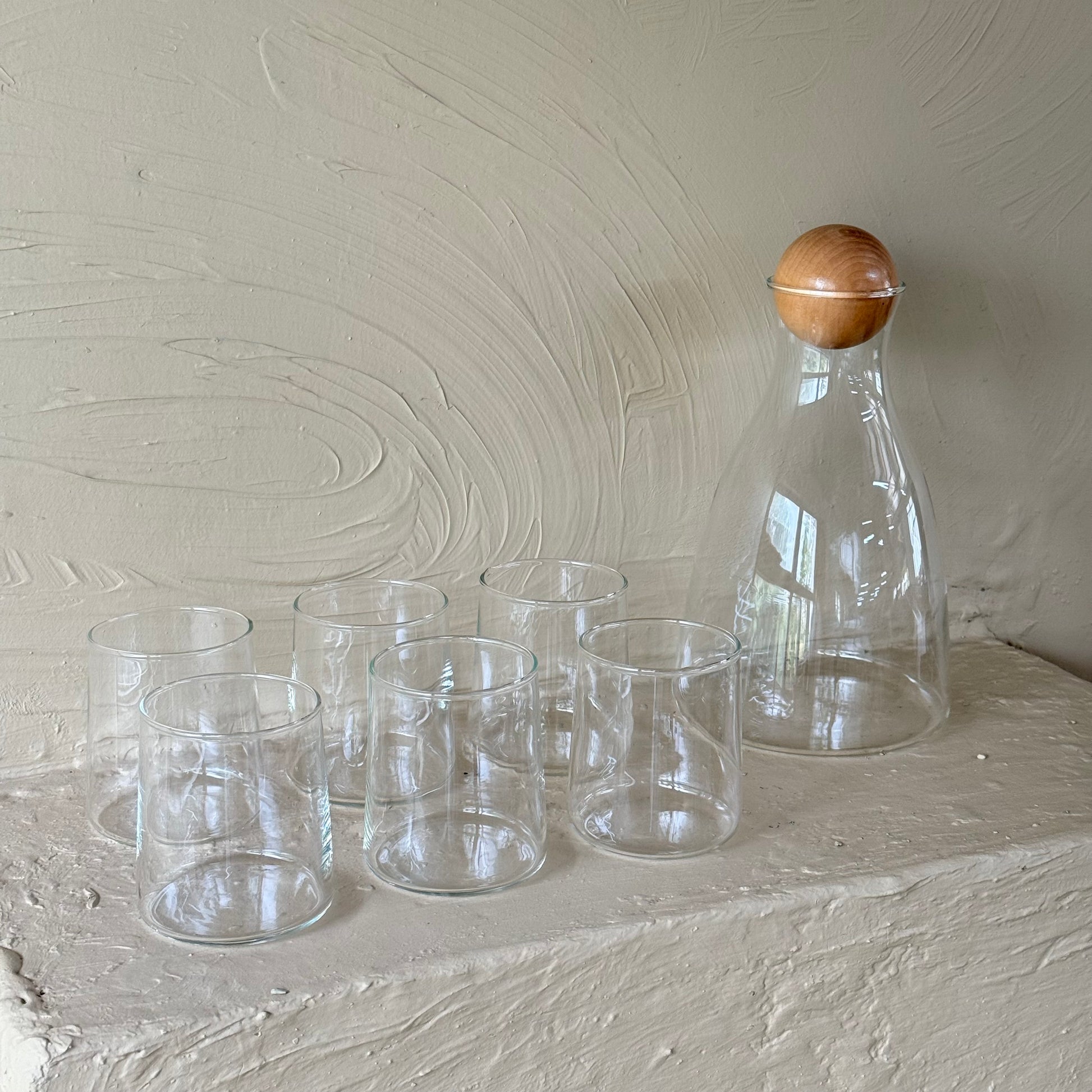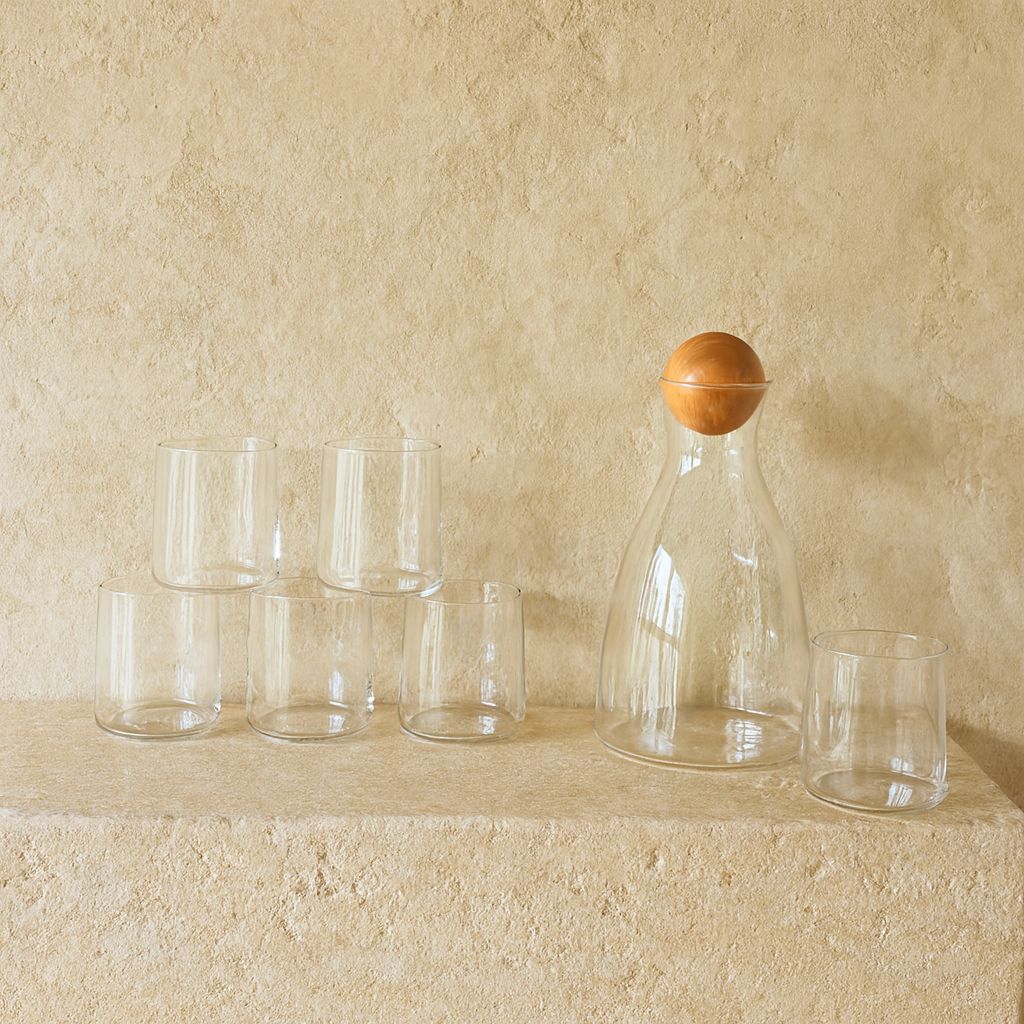 Delisoga Bambu Kapaklı Cam Sürahi Set Şeffaf 7 Parça (SÜPER FİYAT)