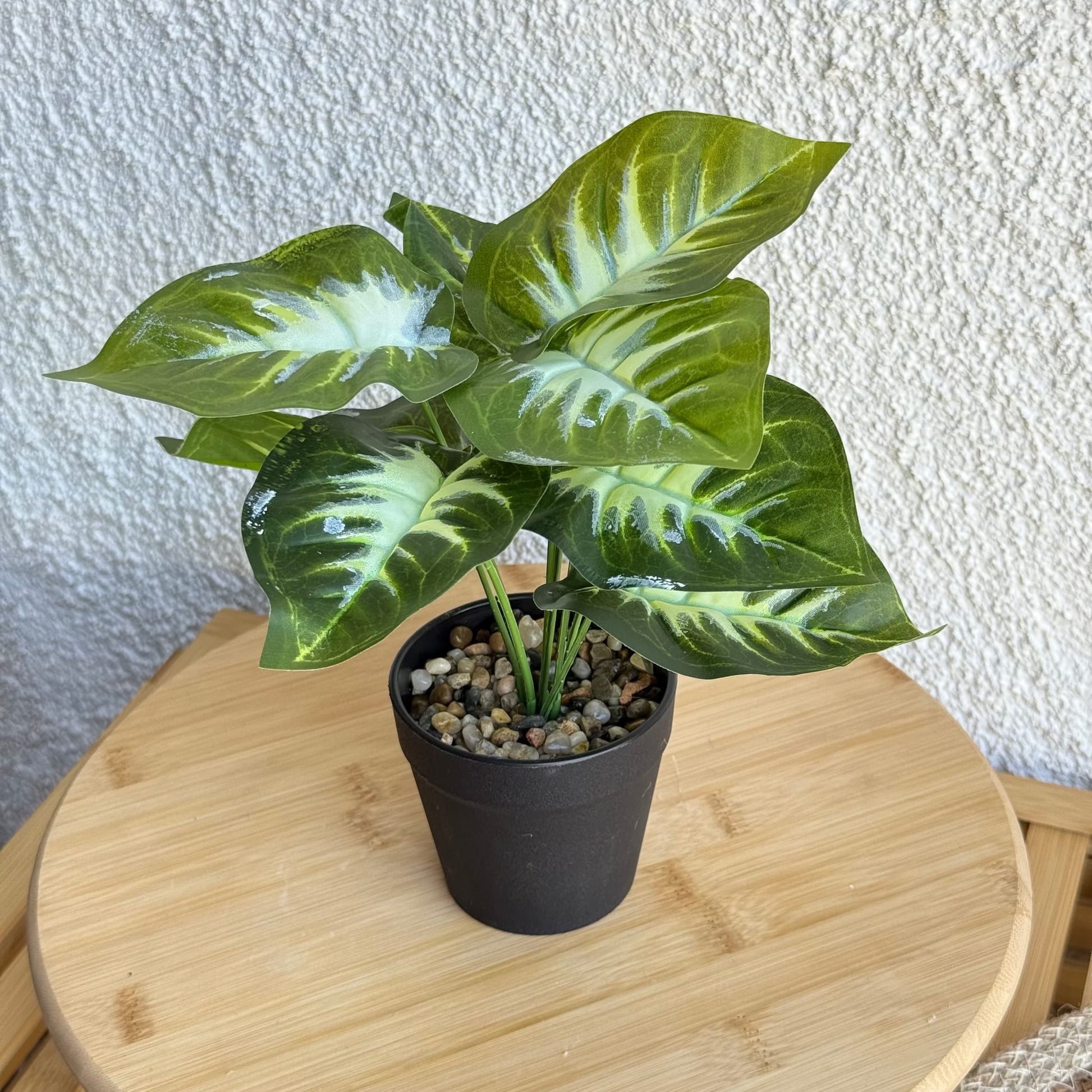 Difenbahya Saksılı Yapay Çiçek 25 cm Yeşil-Beyaz Yapraklı