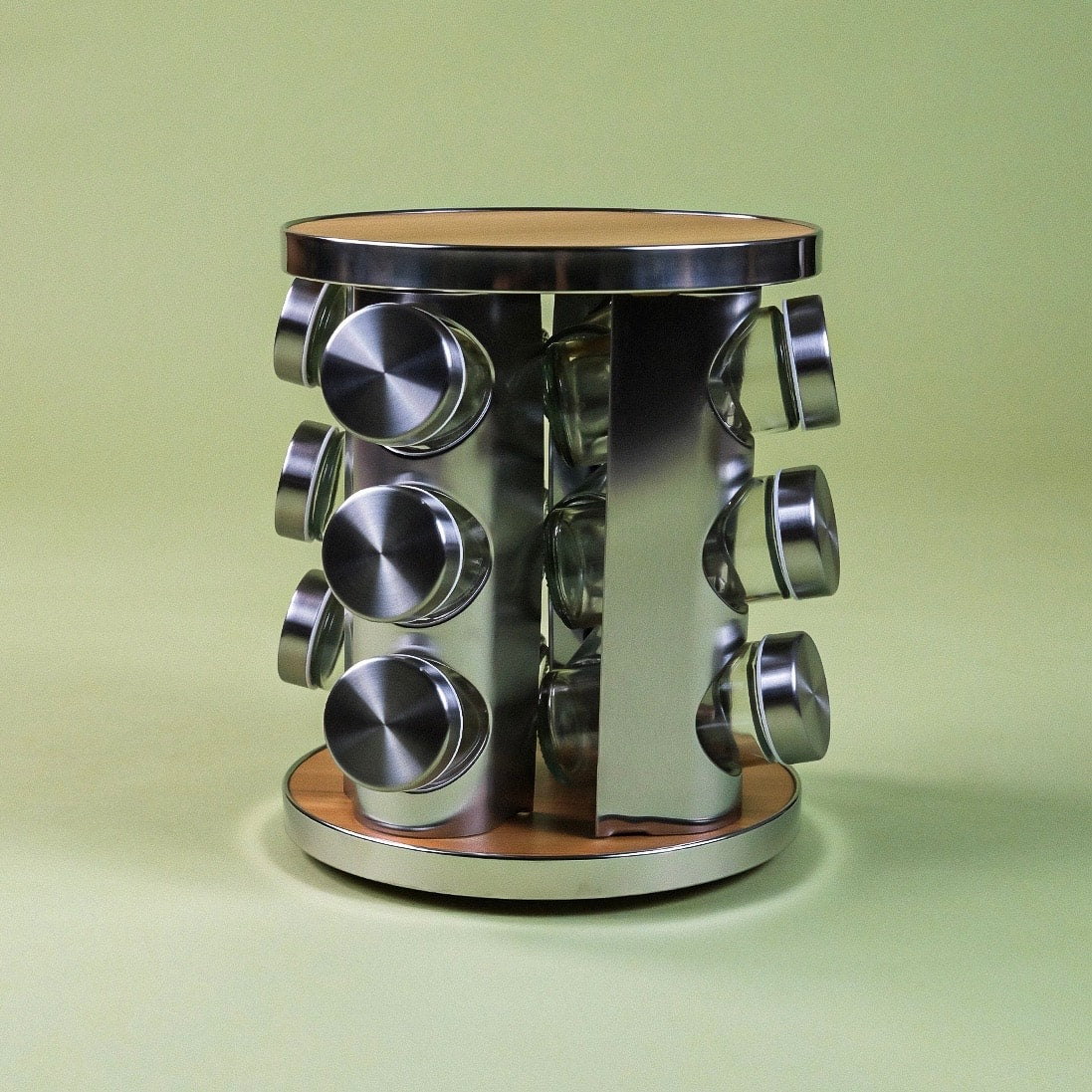 Dönen Standlı Ahşap Detaylı 12 Adet Cam Baharatlık Seti (KOD:4723)