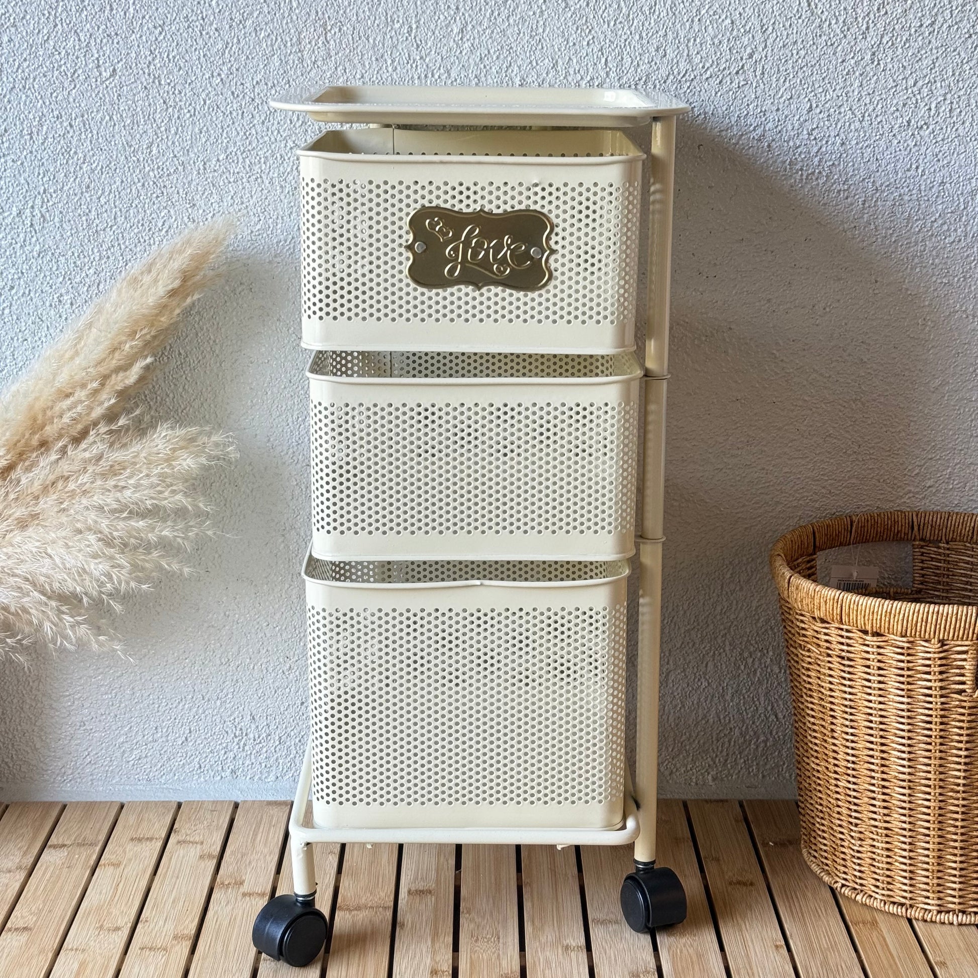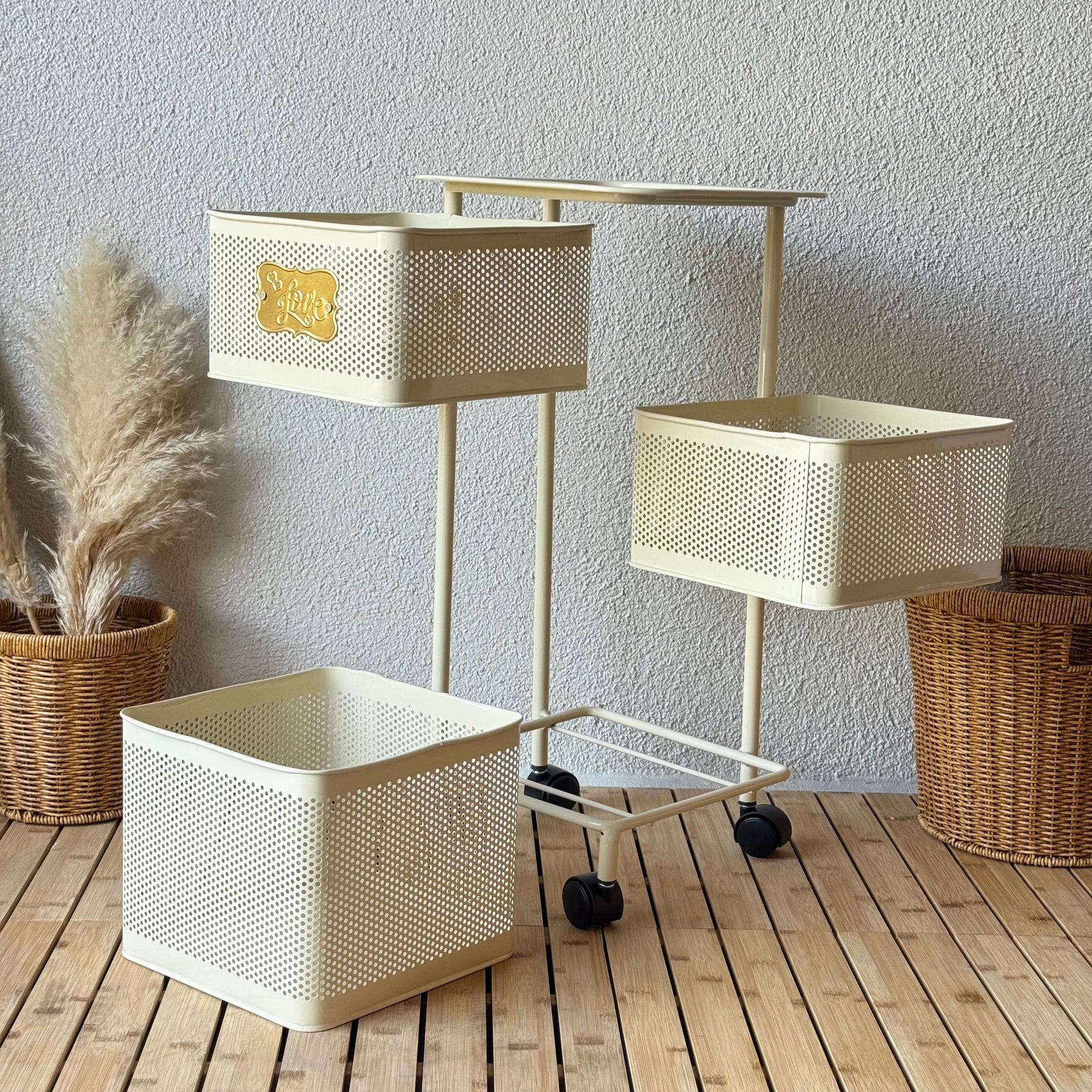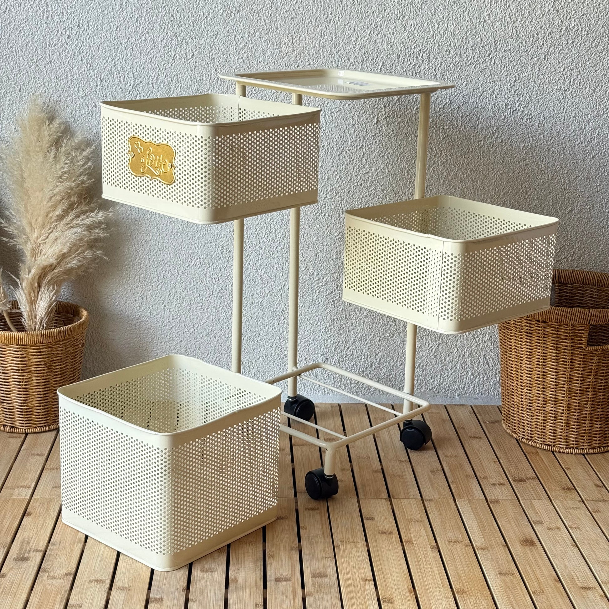 Evanev 3 Katlı Açılır Kapanır Tekerlikli Kare Ferforje Sebzelik Krem KOD:1058K