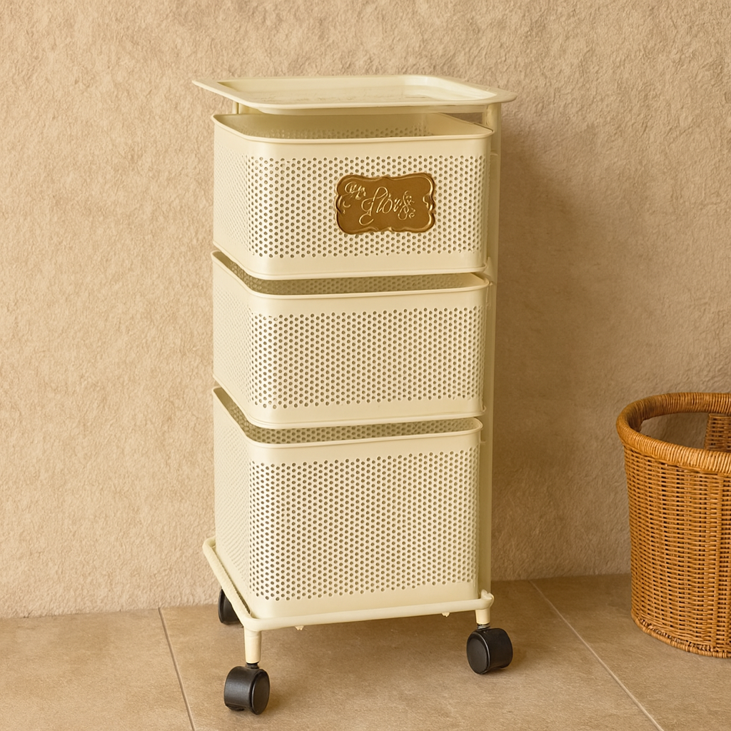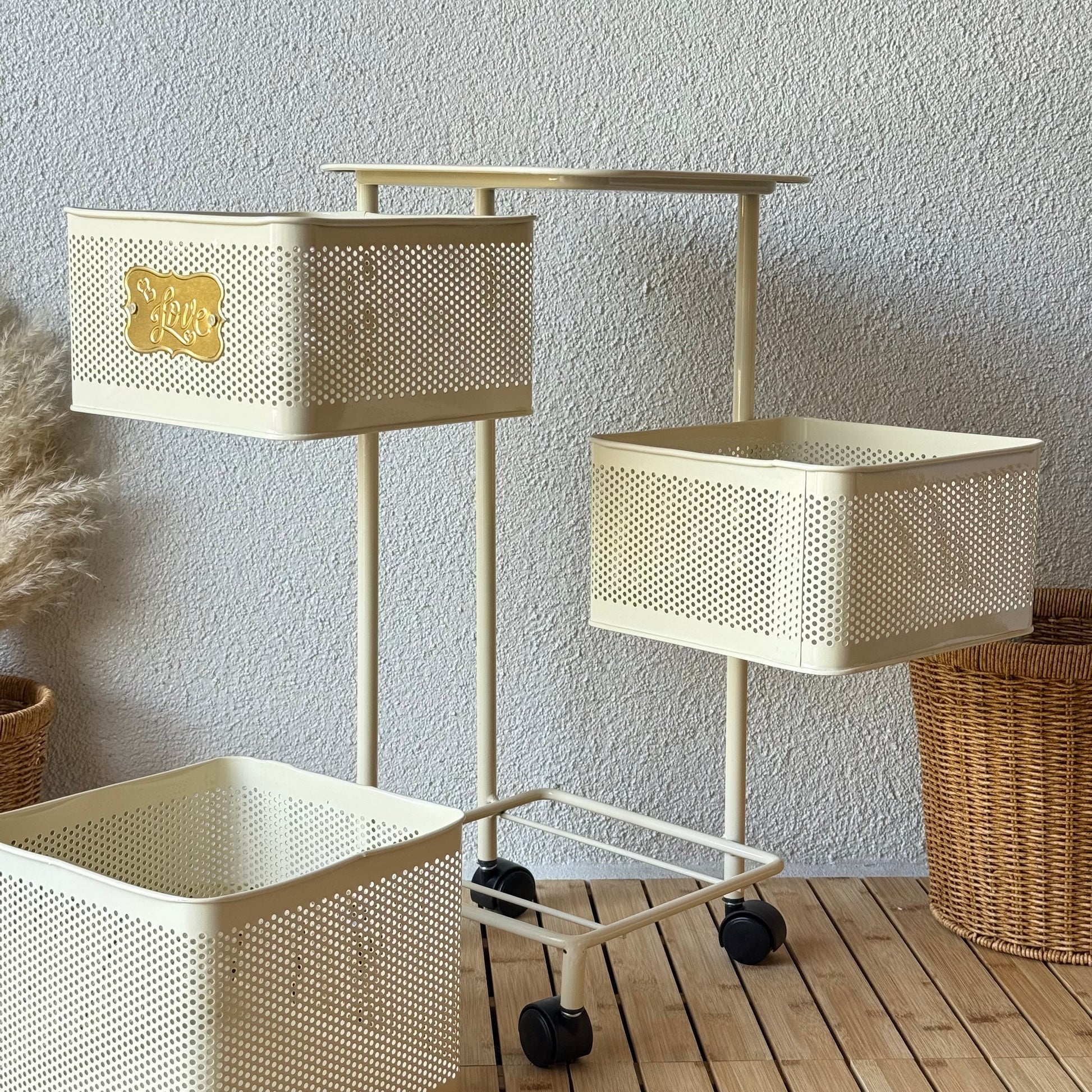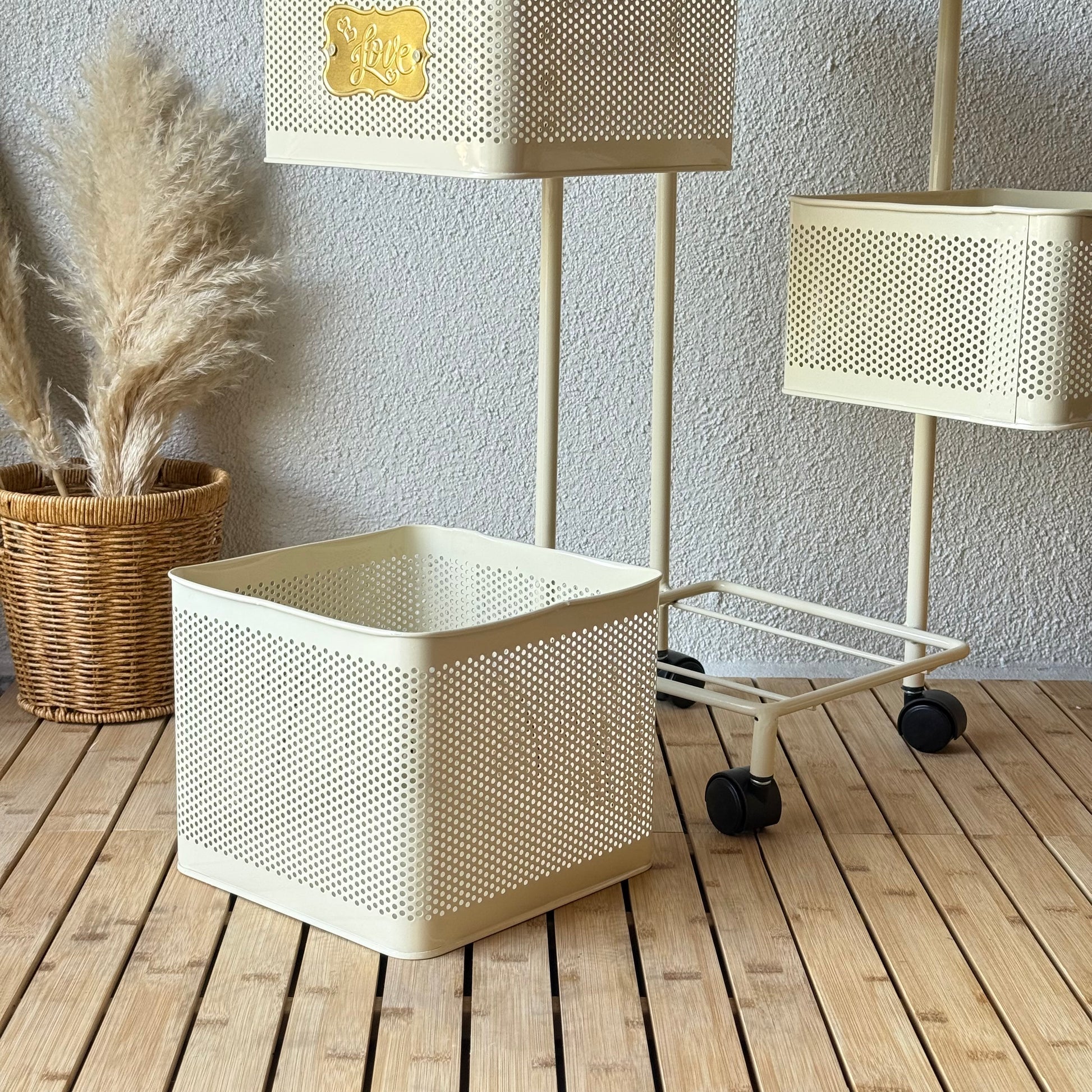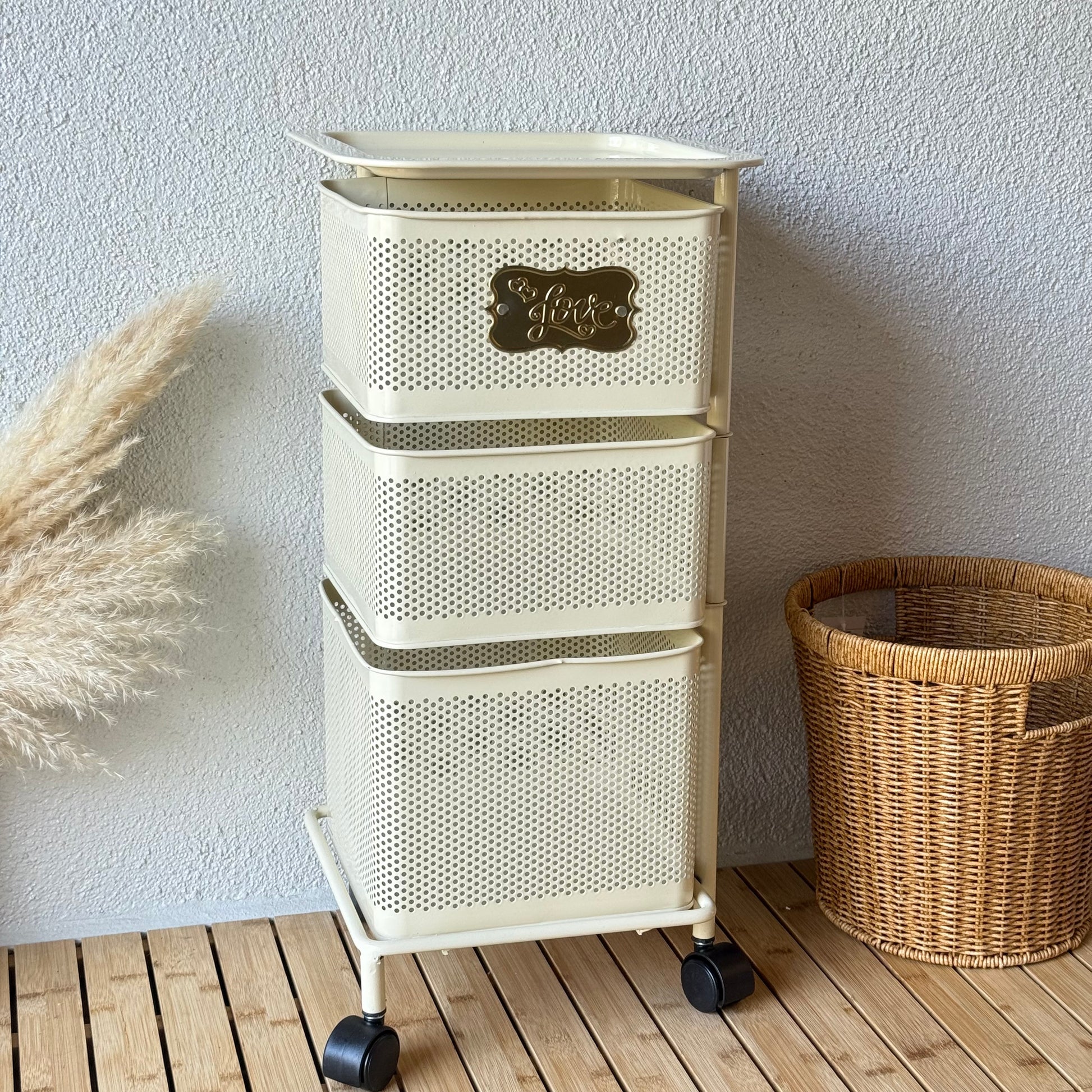 Evanev 3 Katlı Açılır Kapanır Tekerlikli Kare Ferforje Sebzelik Krem KOD:1058K