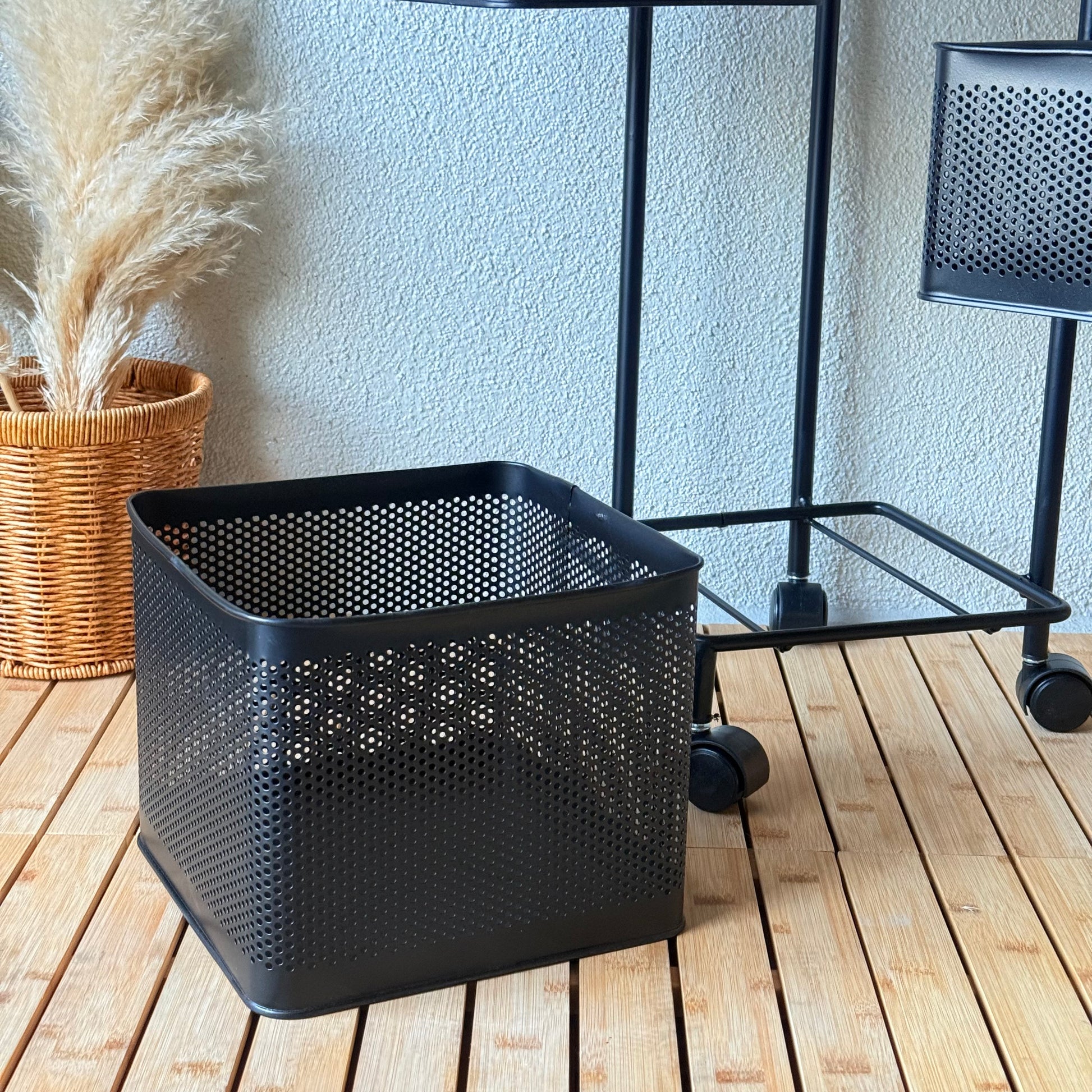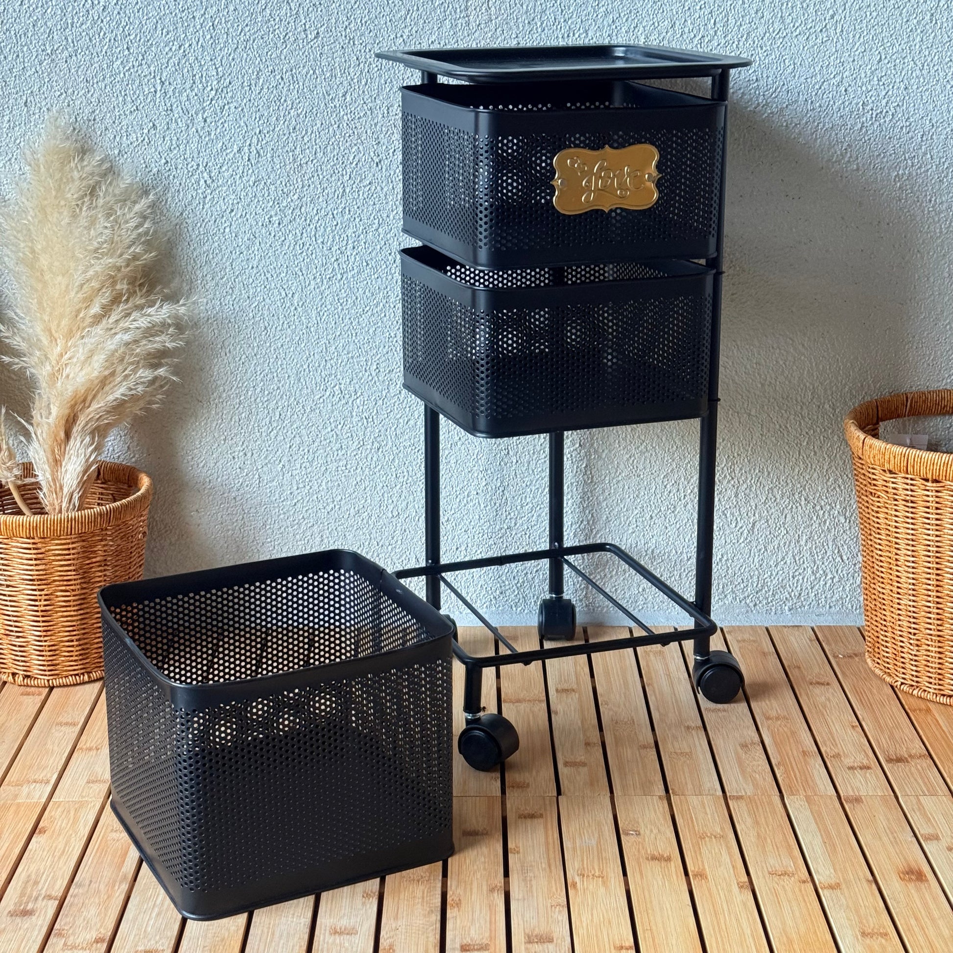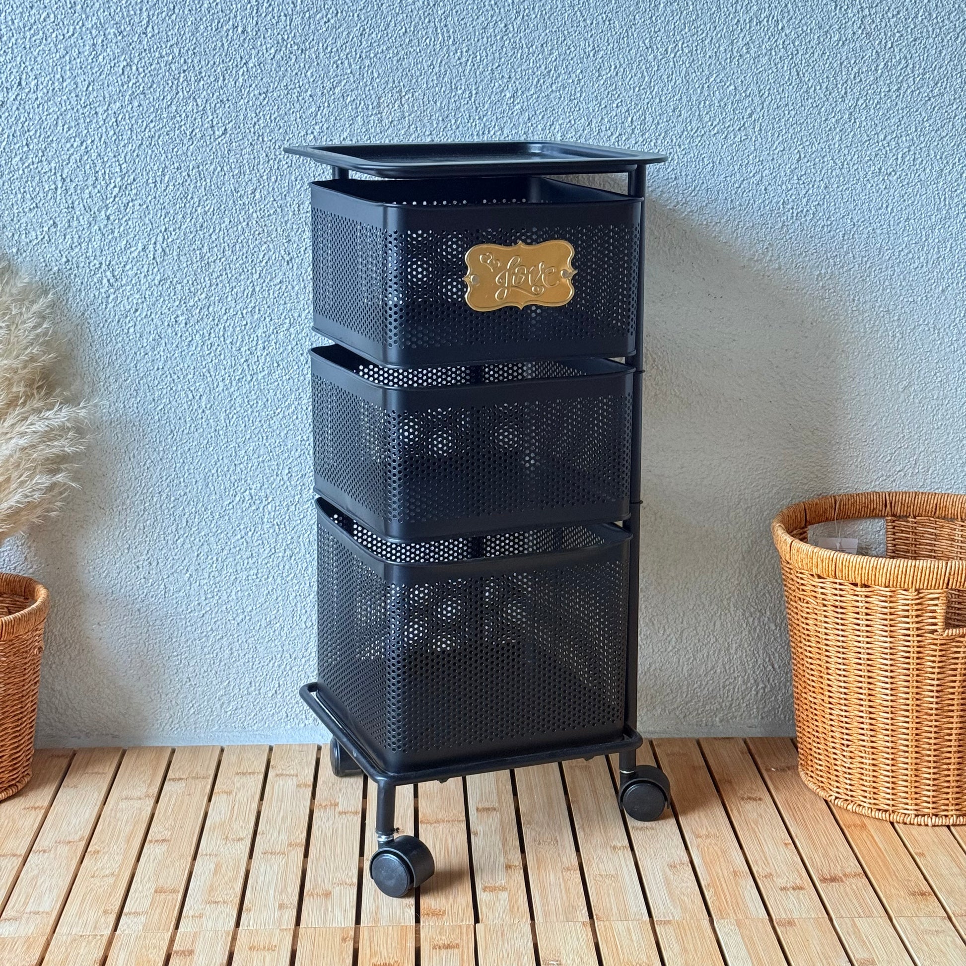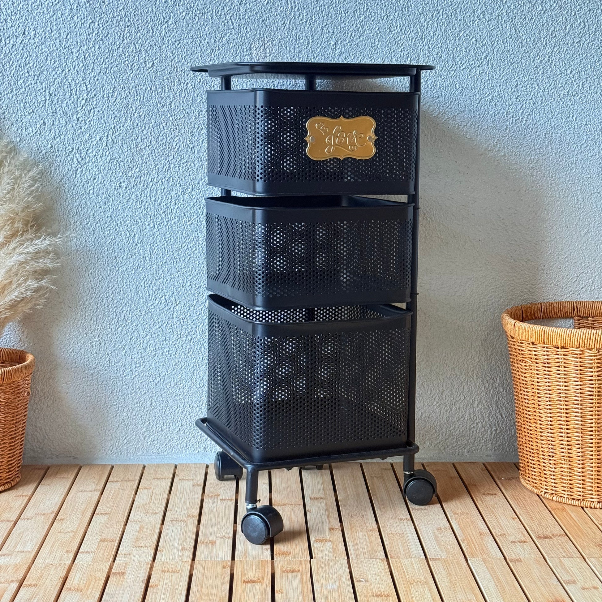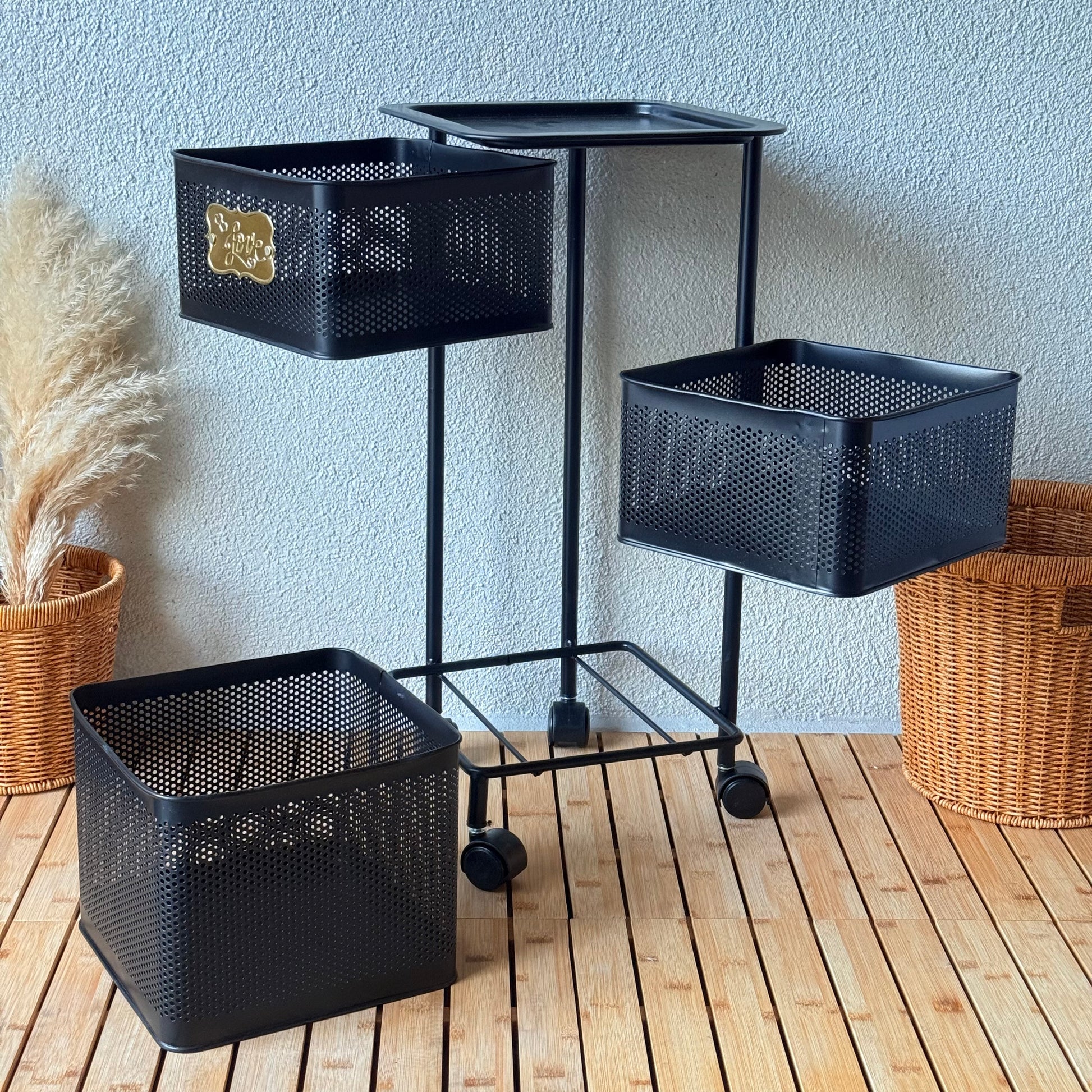 Evanev 3 Katlı Açılır Kapanır Tekerlikli Kare Ferforje Sebzelik Siyah KOD:1058K
