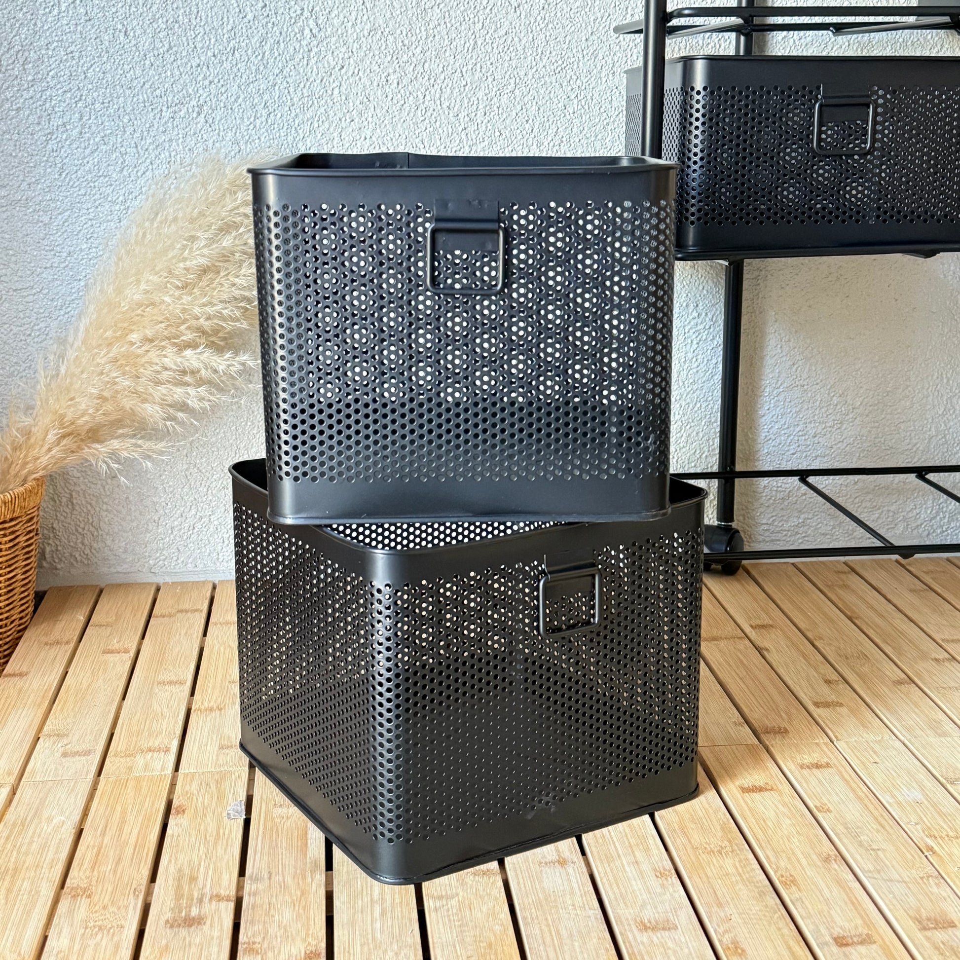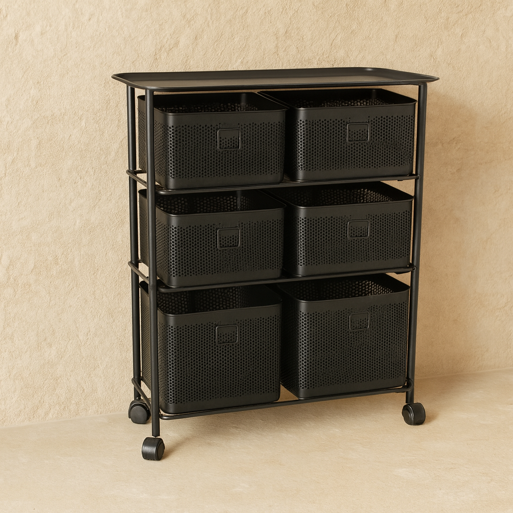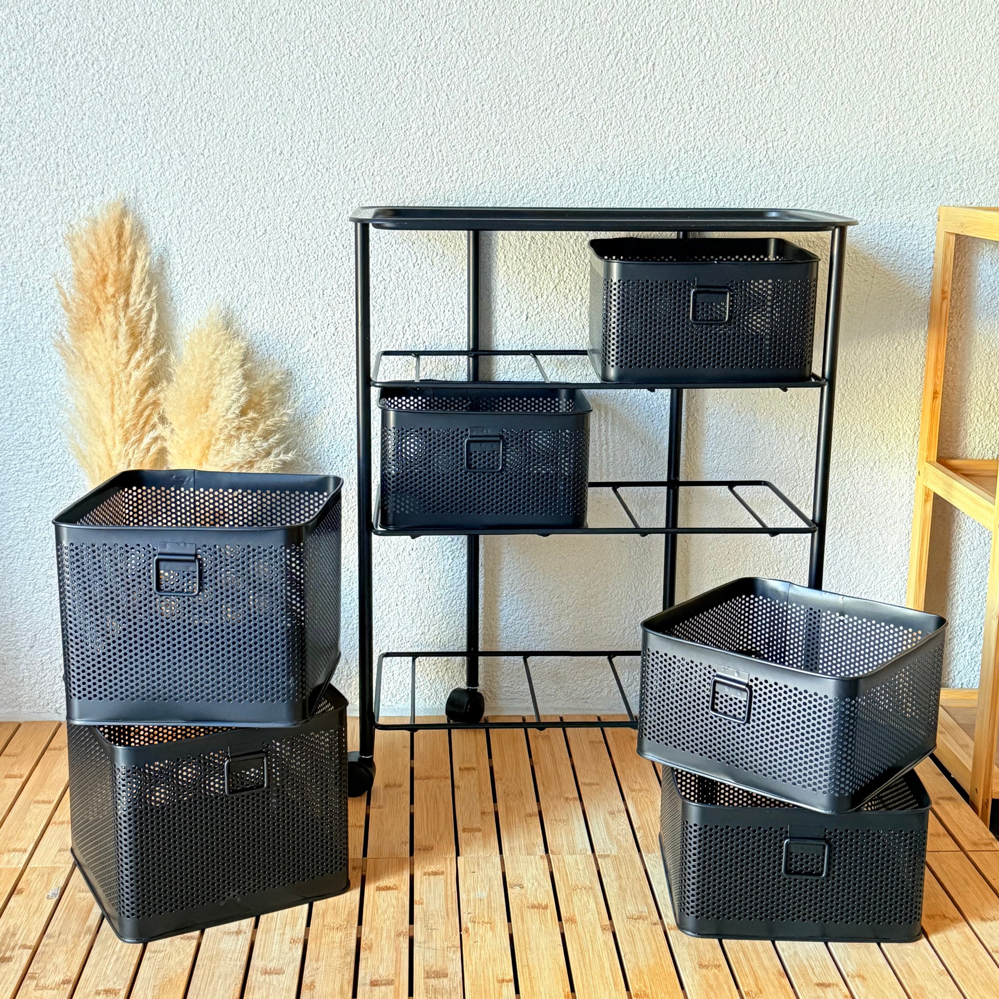 Evanev 3 Katlı Açılır Kapanır 6 Çekmeçeli Tekerlekli Kare Ferforje Sebzelik Siyah KOD:1059T
