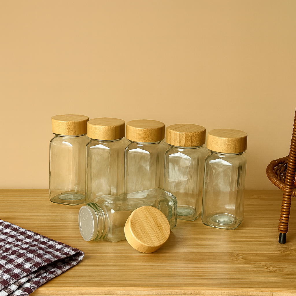 Evanev Bambu Kapaklı 6 Adet Kare Baharatlık Seti 120 ml