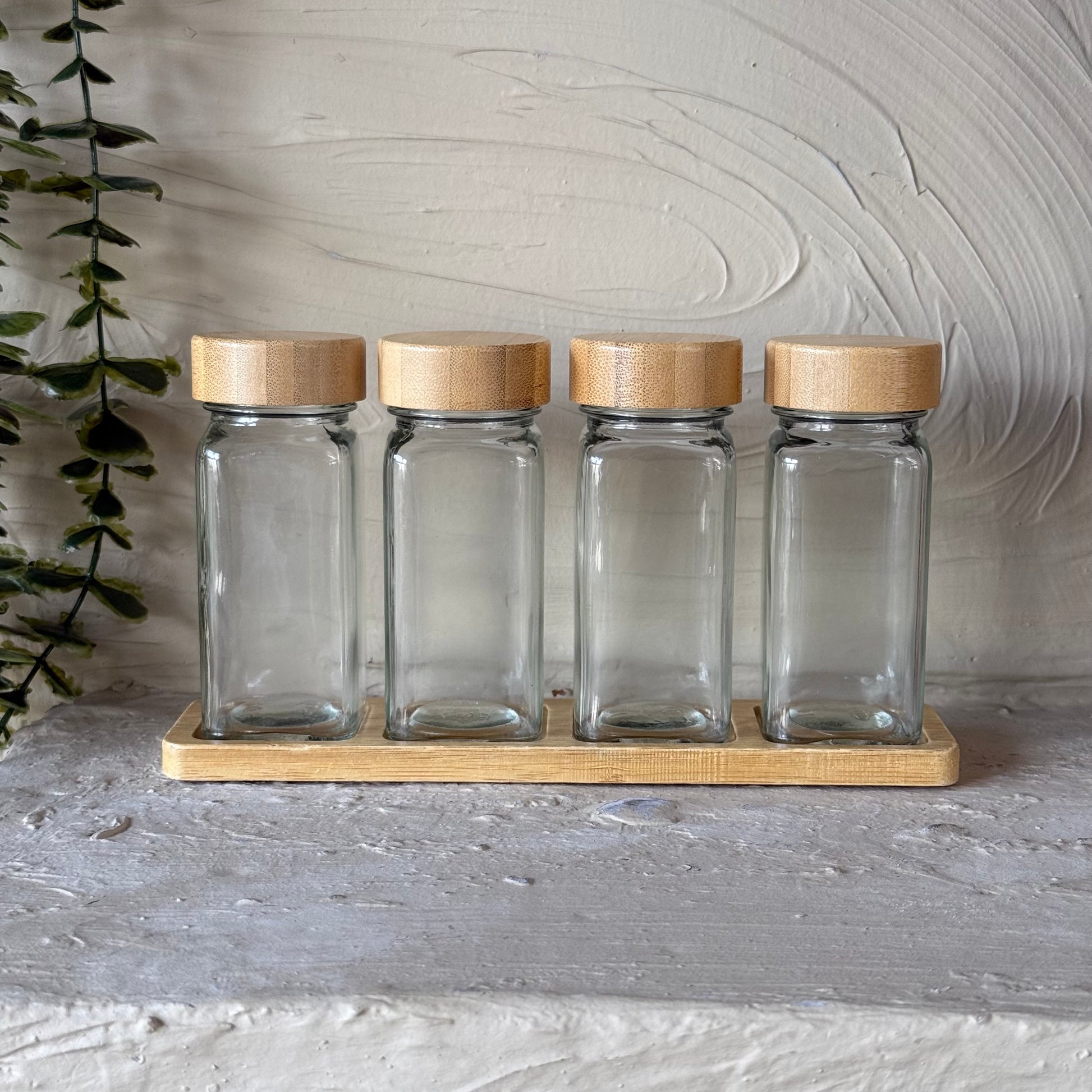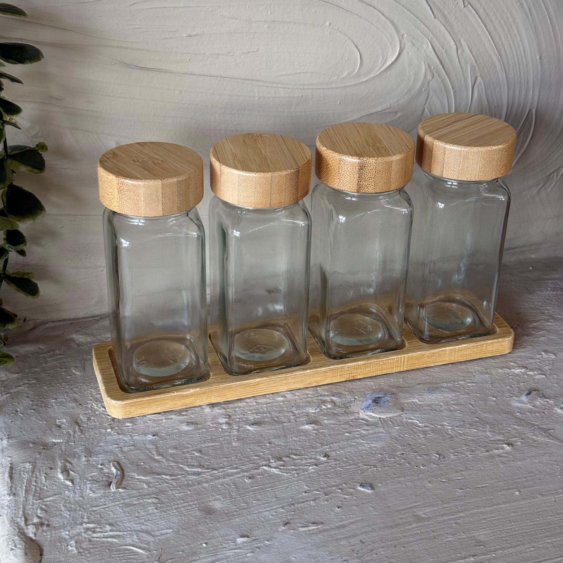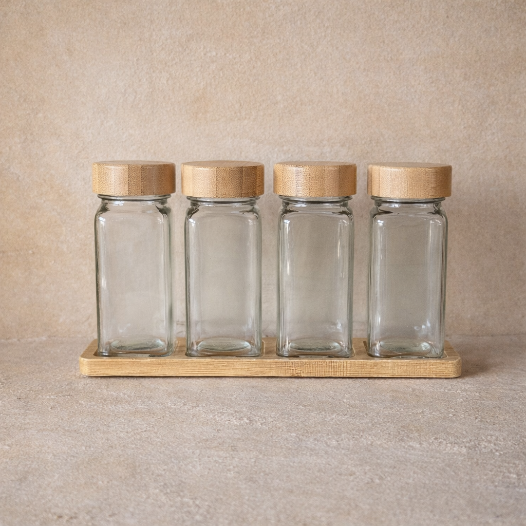 Folly Bambu Standlı 4 Lü Cam Baharatlık Seti KOD:KT-103