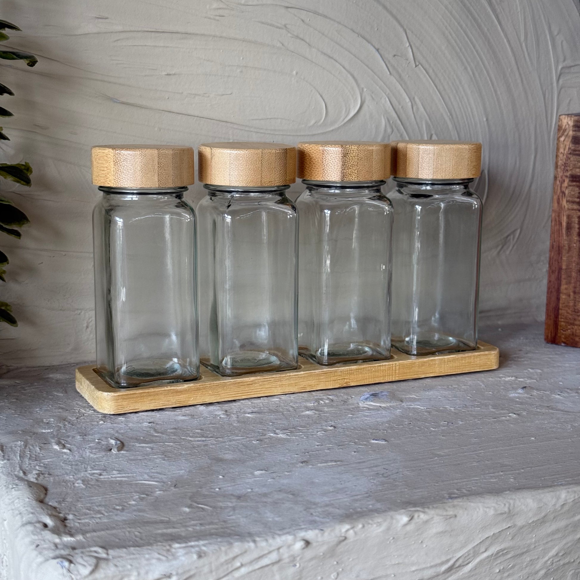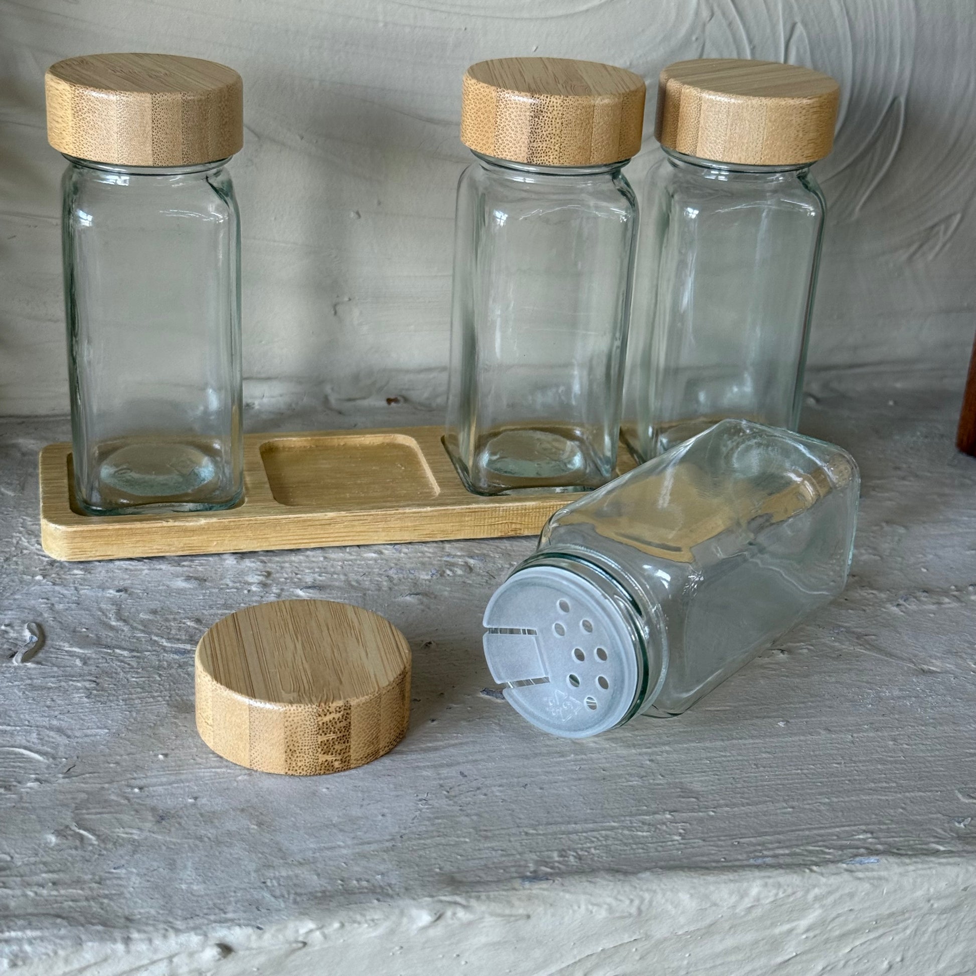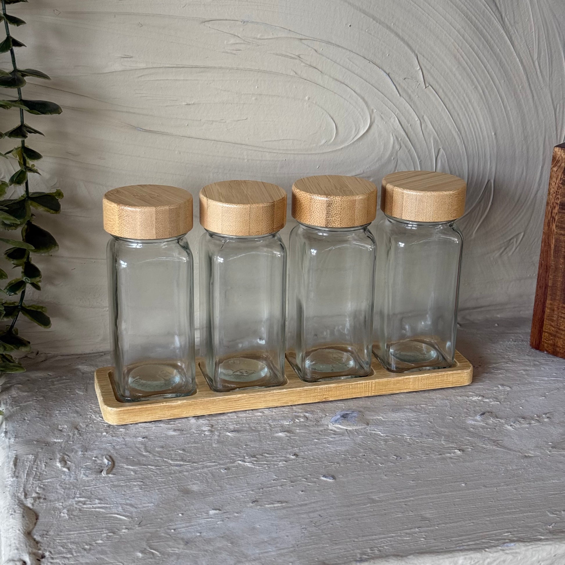 Folly Bambu Standlı 4 Lü Cam Baharatlık Seti KOD:KT-103