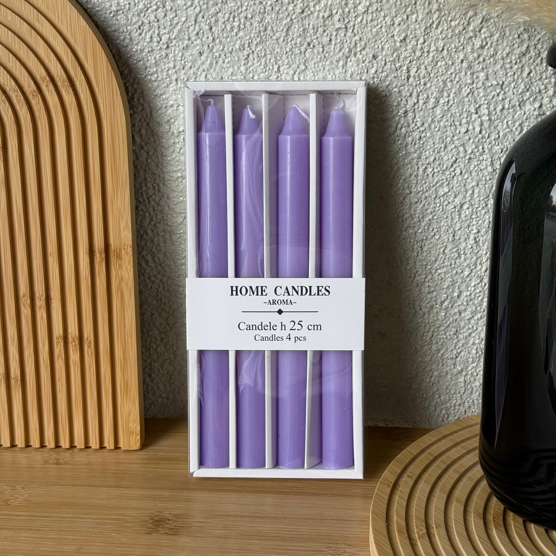 Home Candle 4 Lü Uzun Şamdan Mum Seti Lila