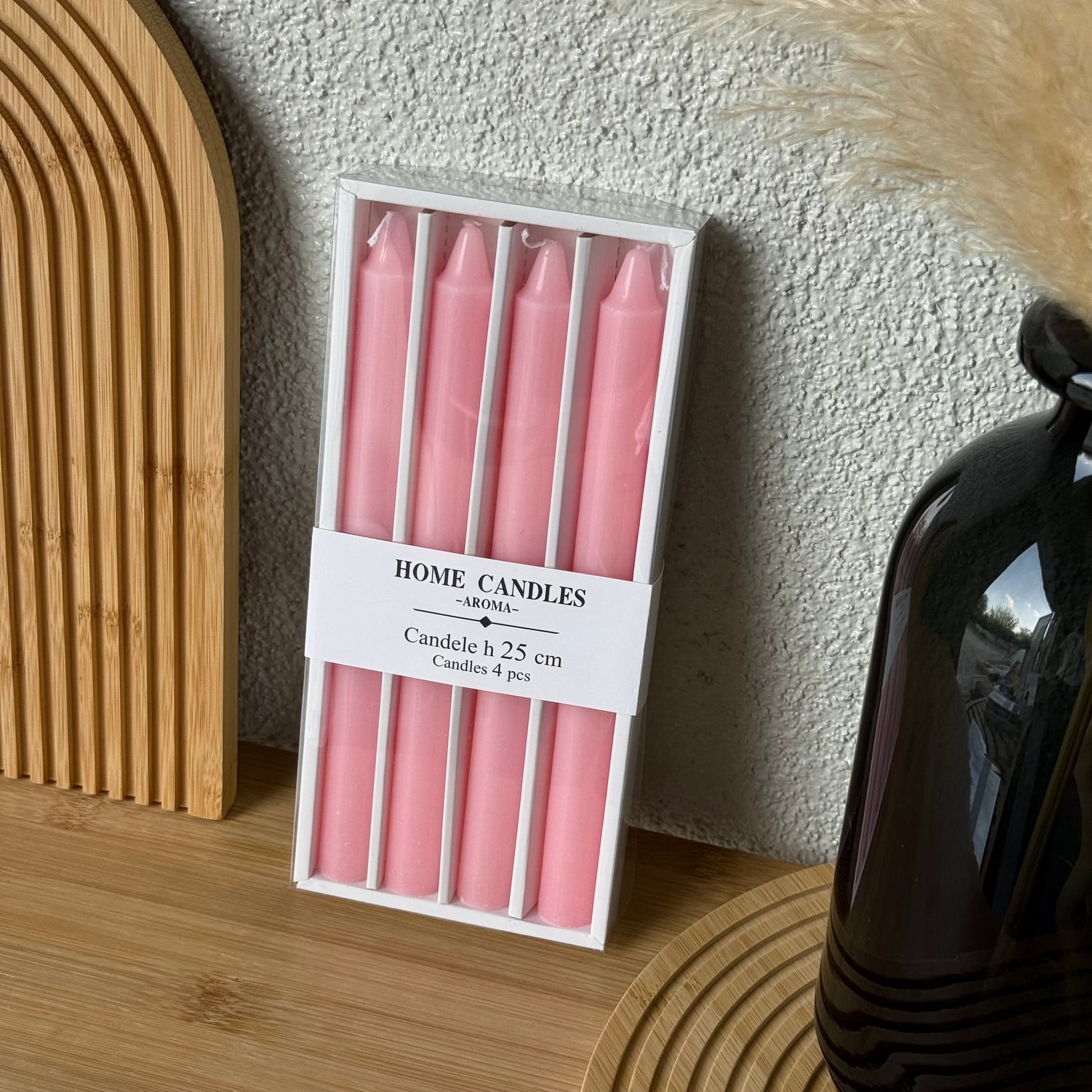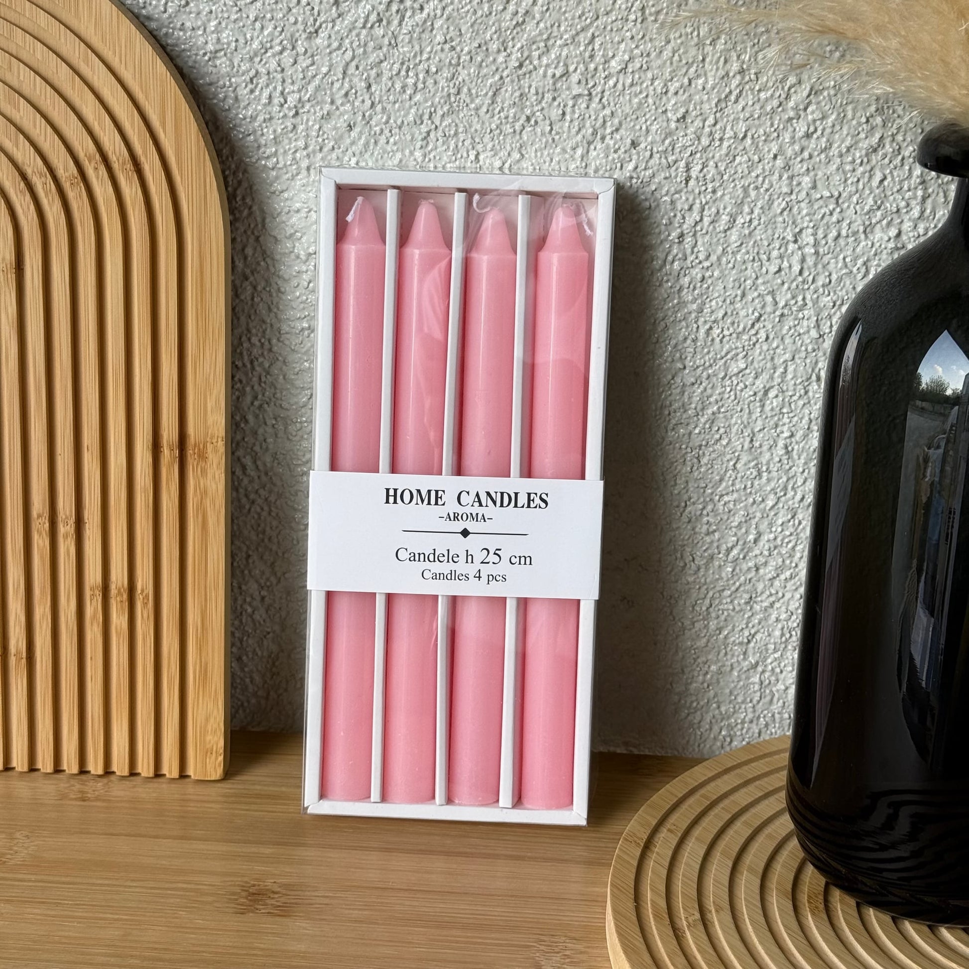 Home Candle 4 Lü Uzun Şamdan Mum Seti Pembe