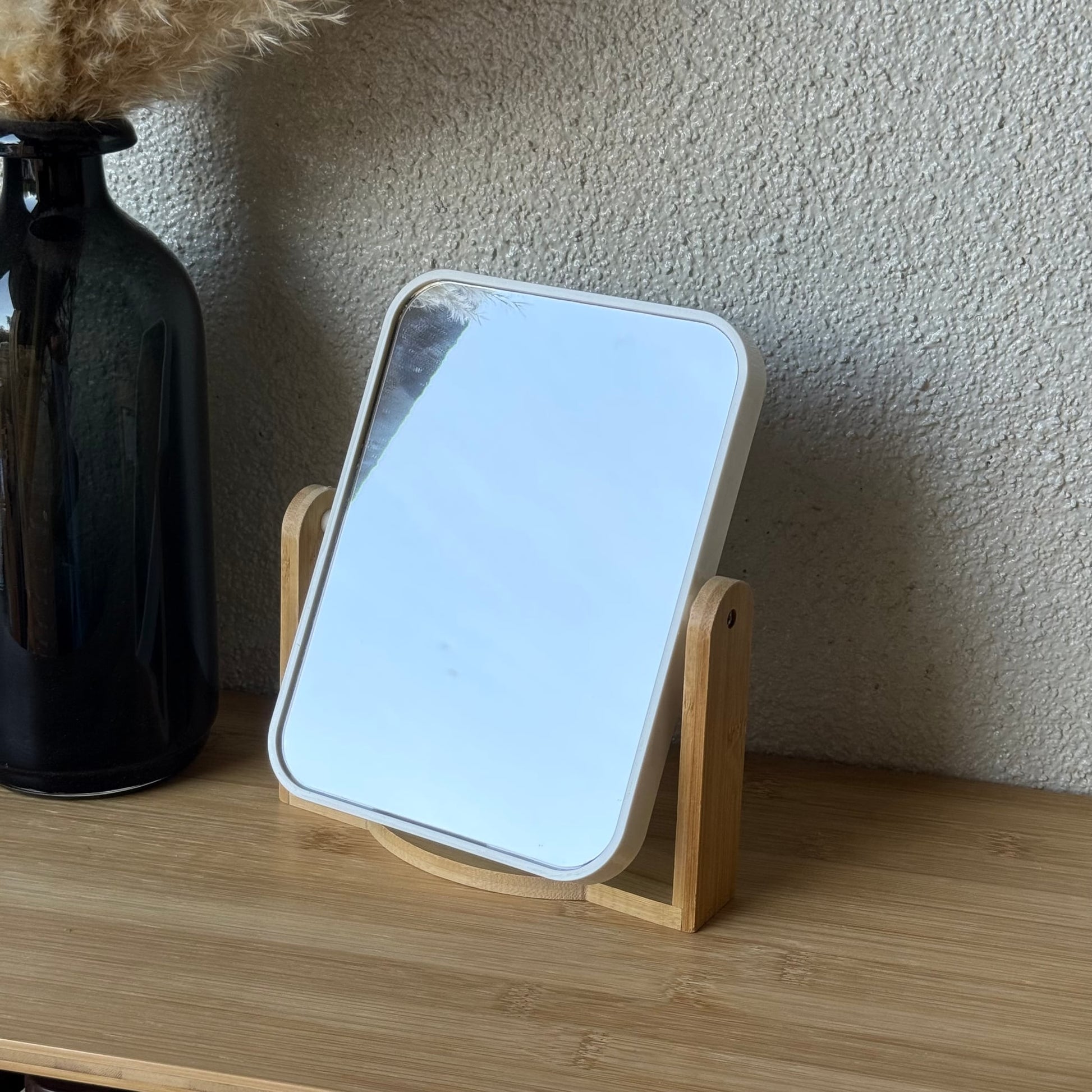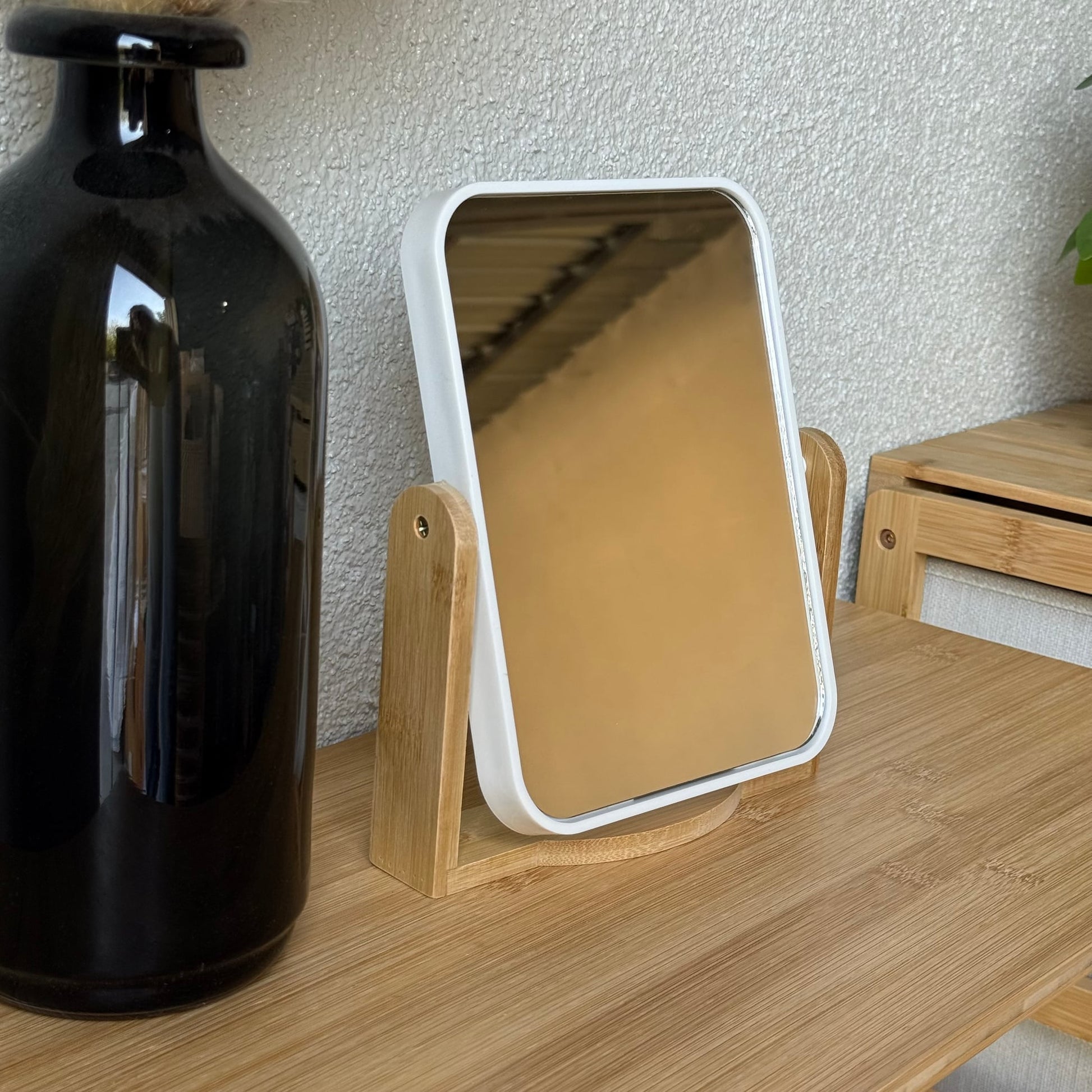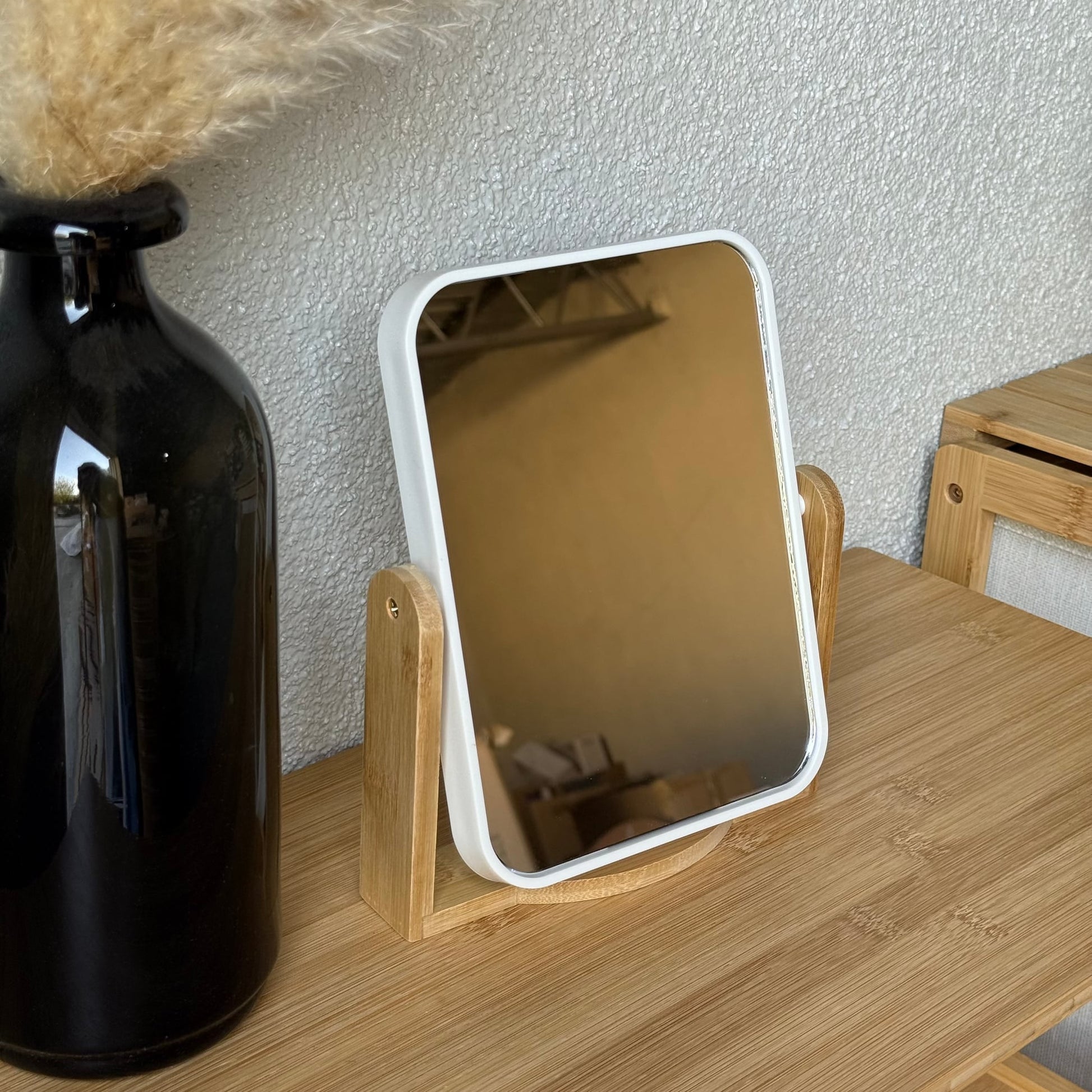 Hope Bambu Standlı Dikdörtgen Ayna Beyaz 22x19 cm