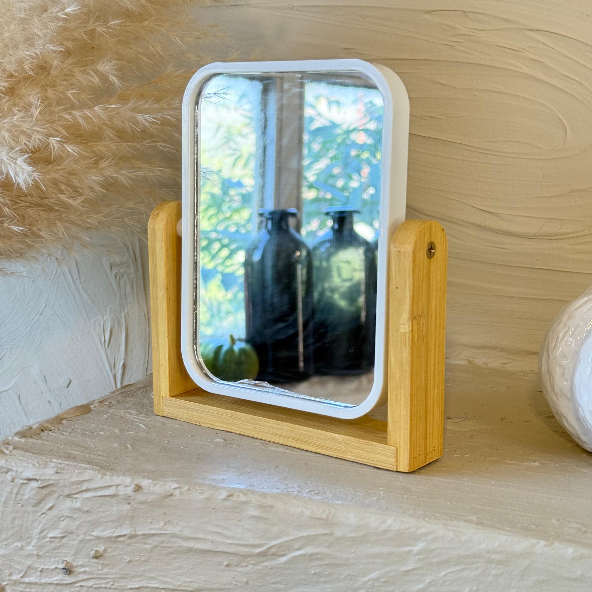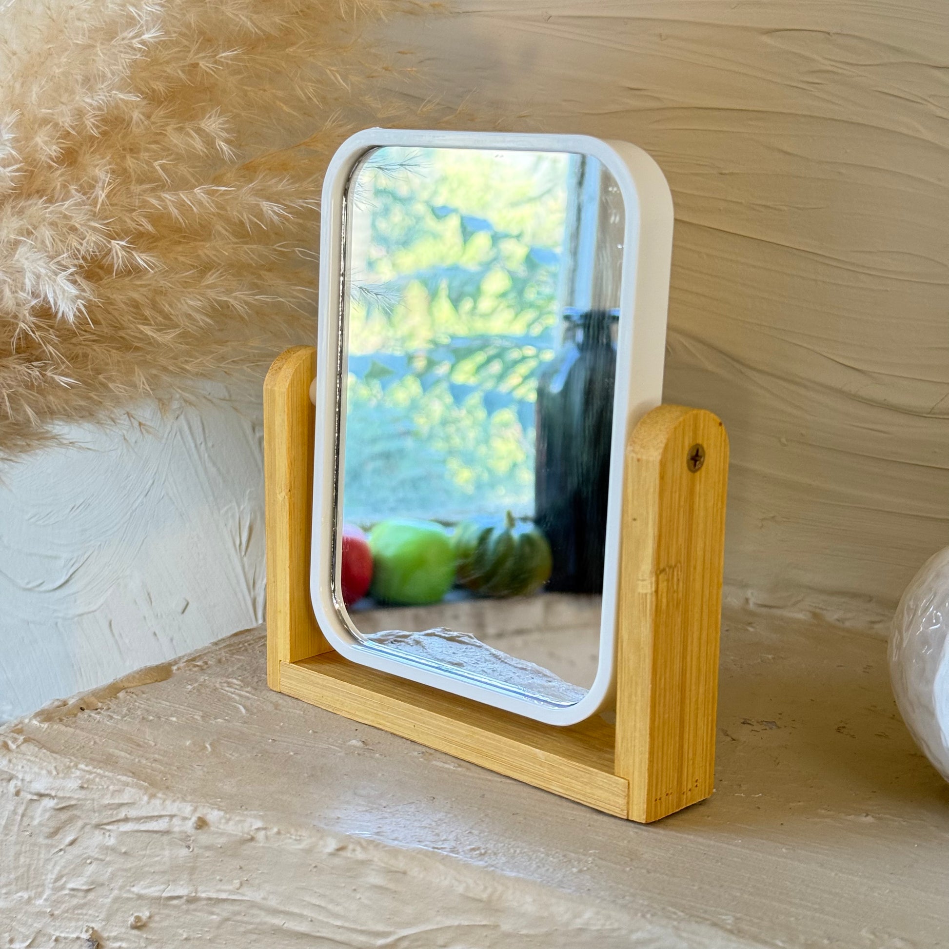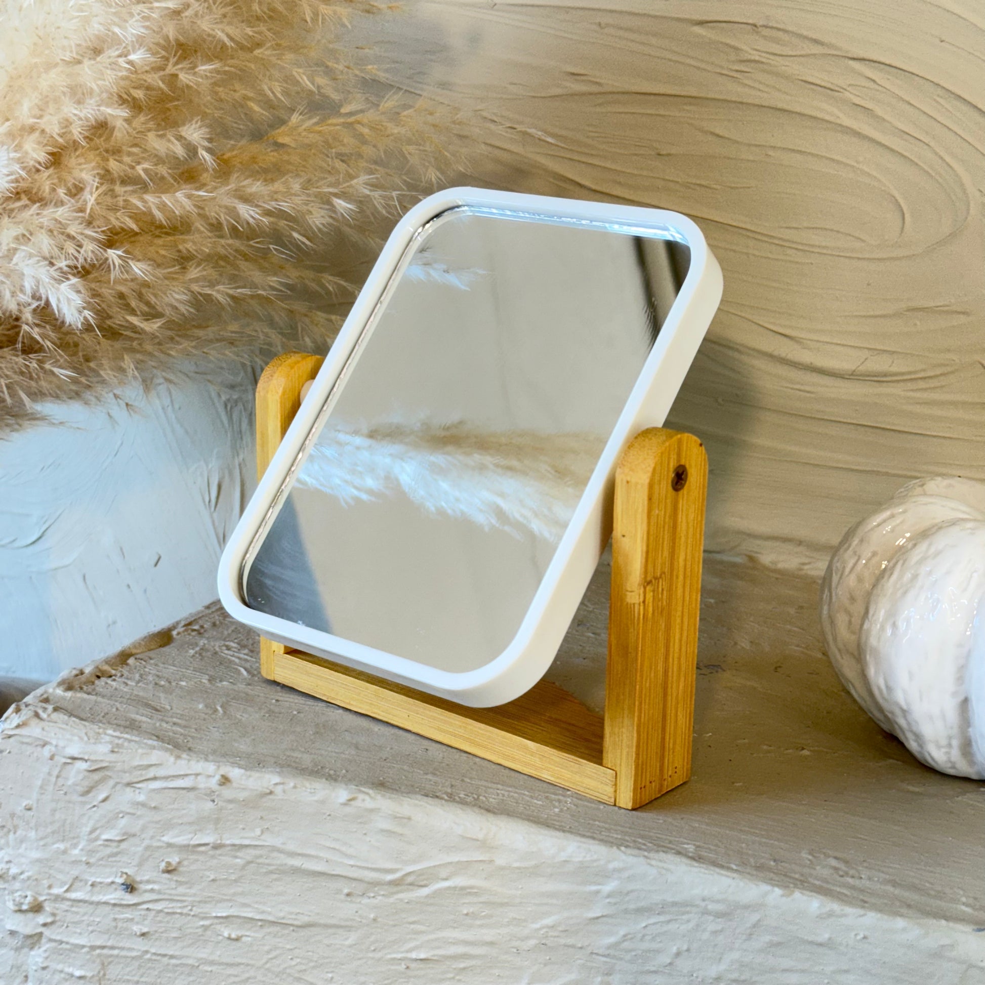 Hope Bambu Standlı Dikdörtgen Ayna Beyaz 16,5x14 cm