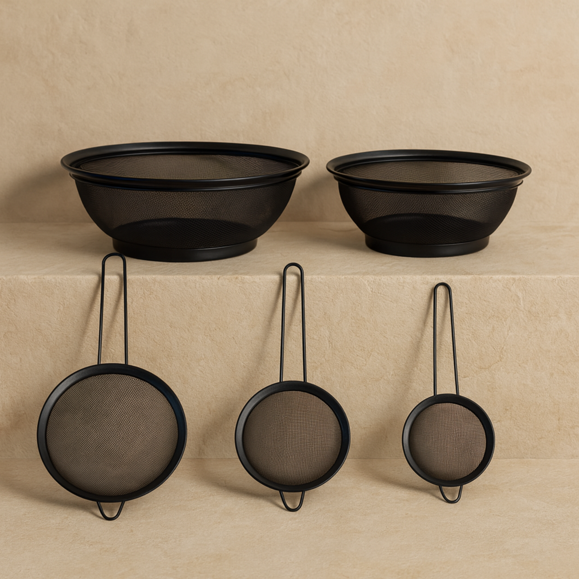 İKAE Jysk 304 Çelik Mat Siyah Süzgeç Seti 5 Parça, Yüksek Kalite