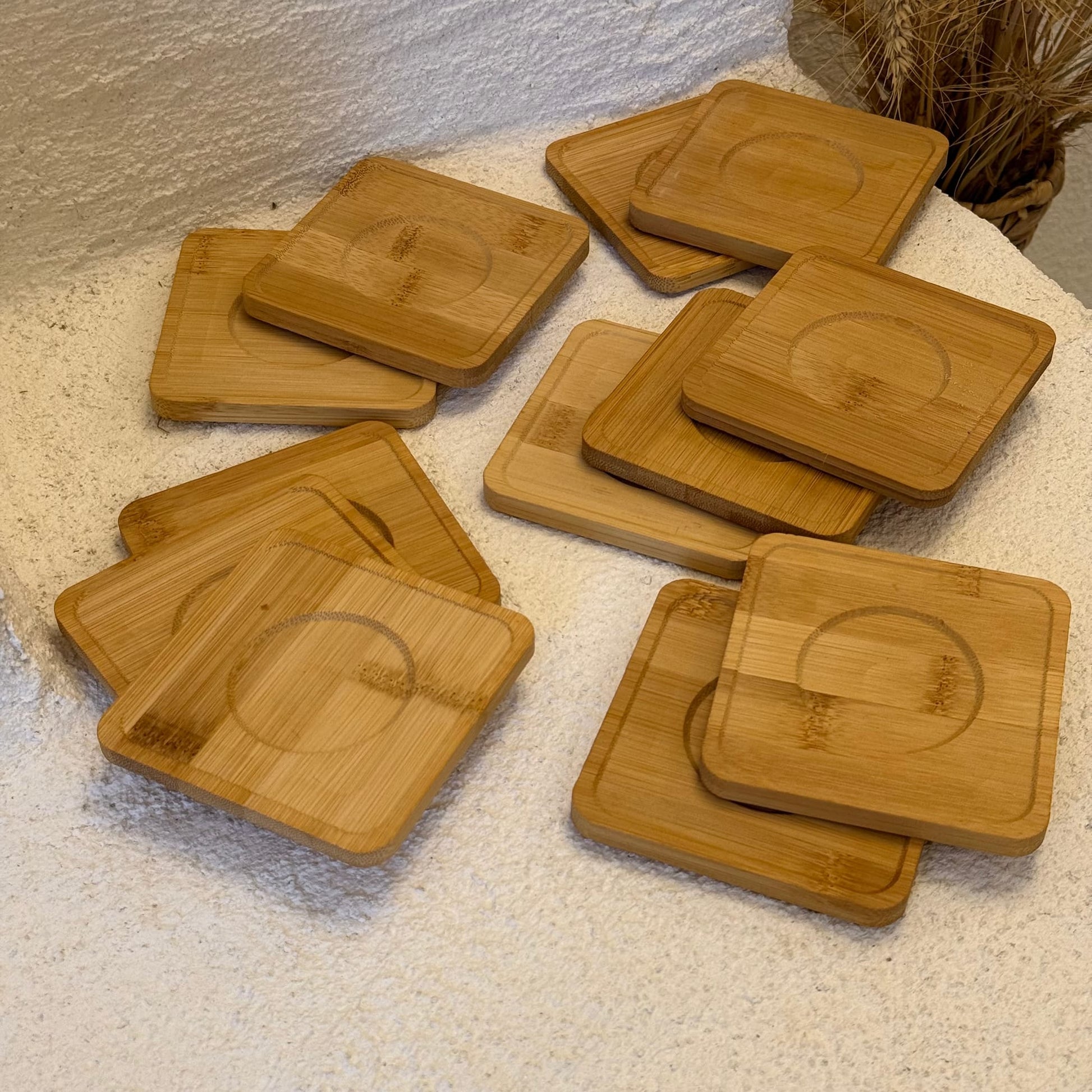 Kare Bambu Çay-Kahve Bardağı Altlık Set 12 Adet