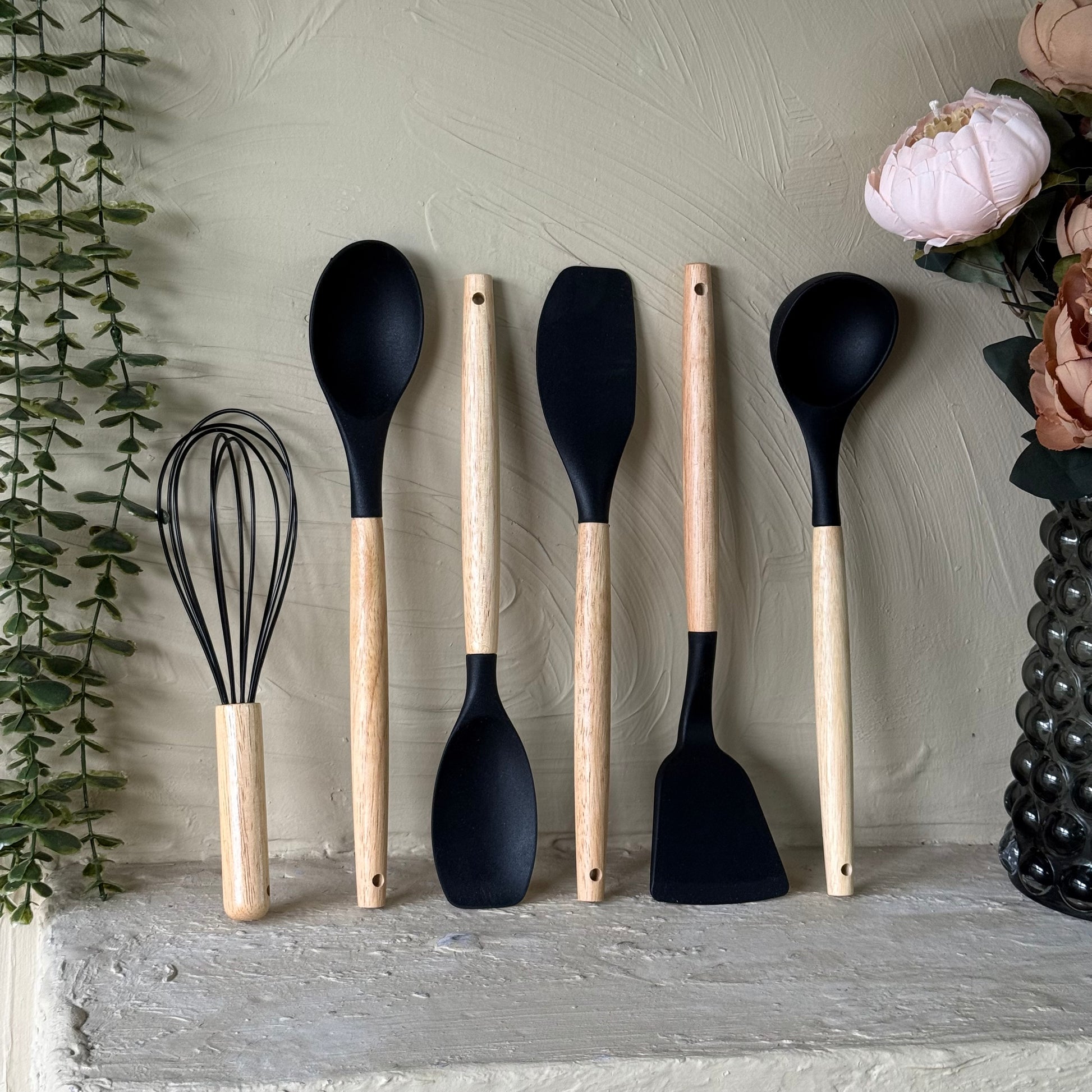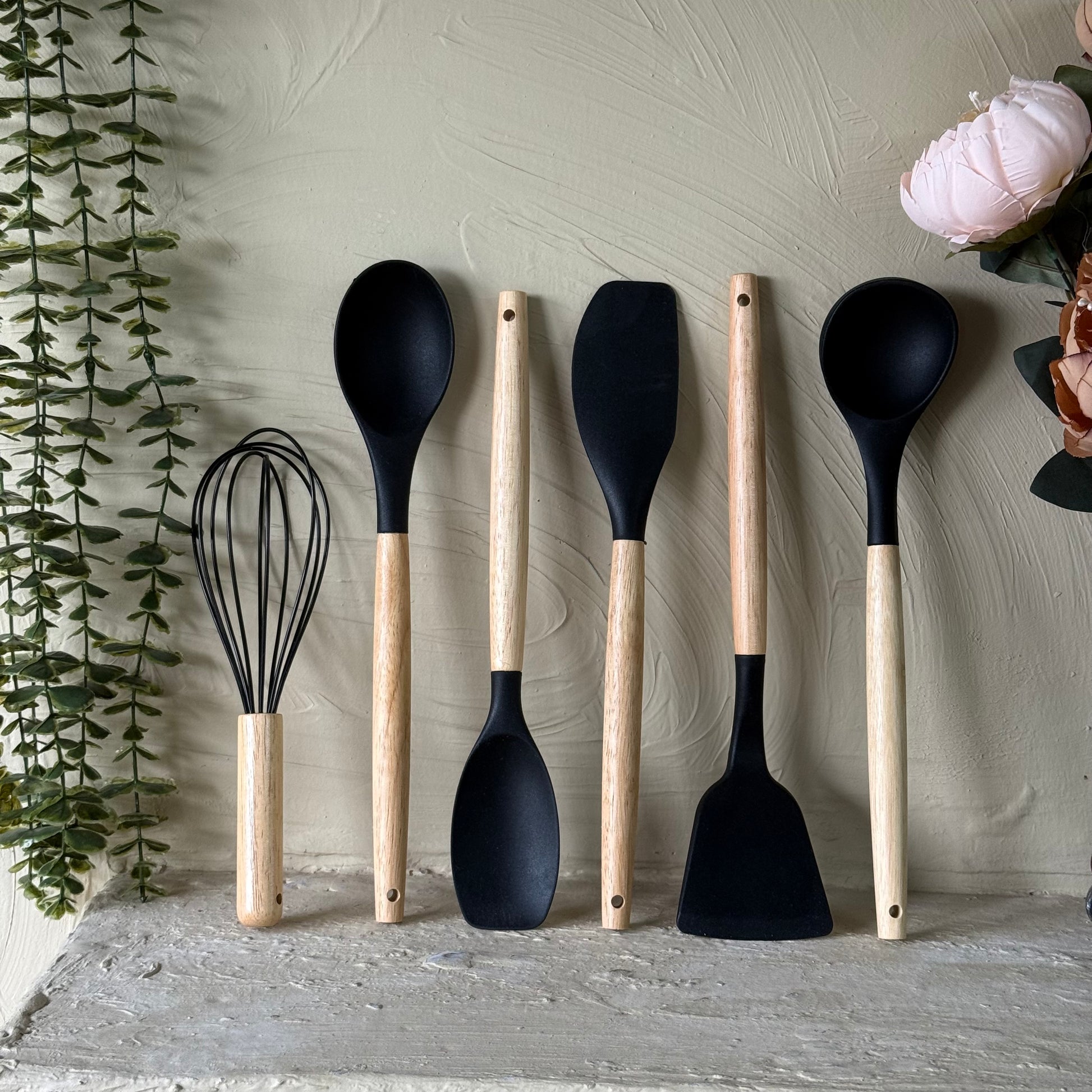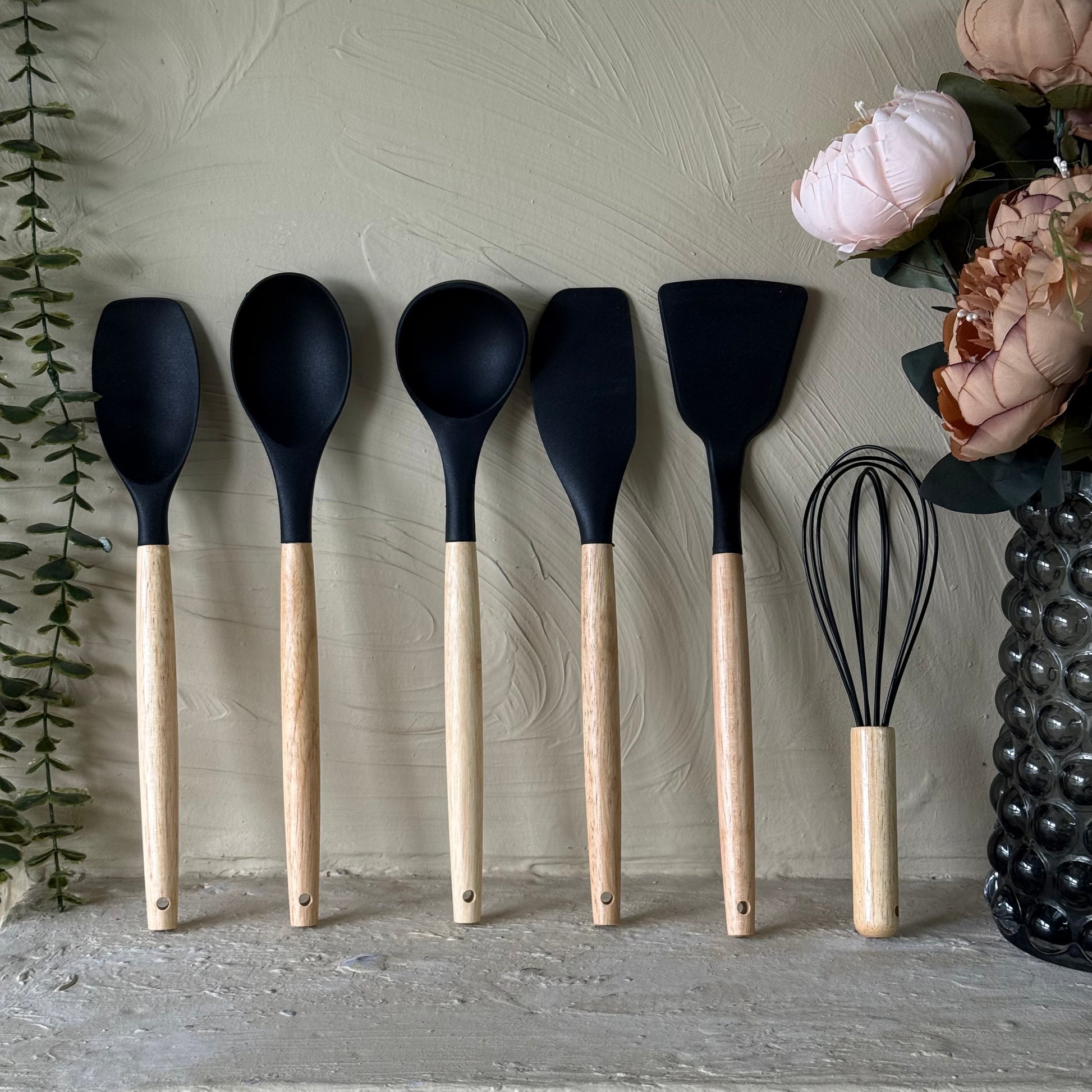 Kully Bambu Saplı Silikon Kepçe Seti 6 Adet Siyah KOD:1-8