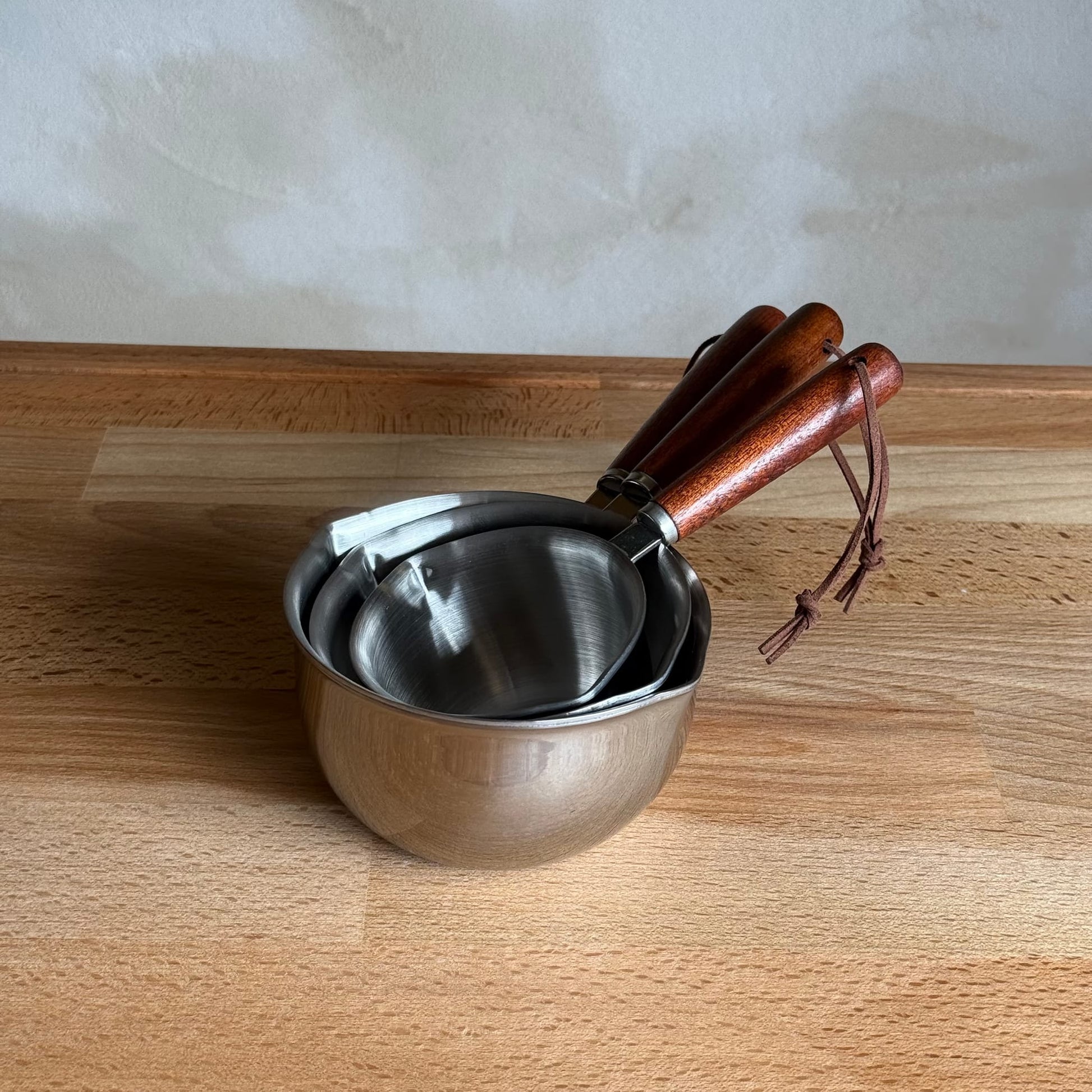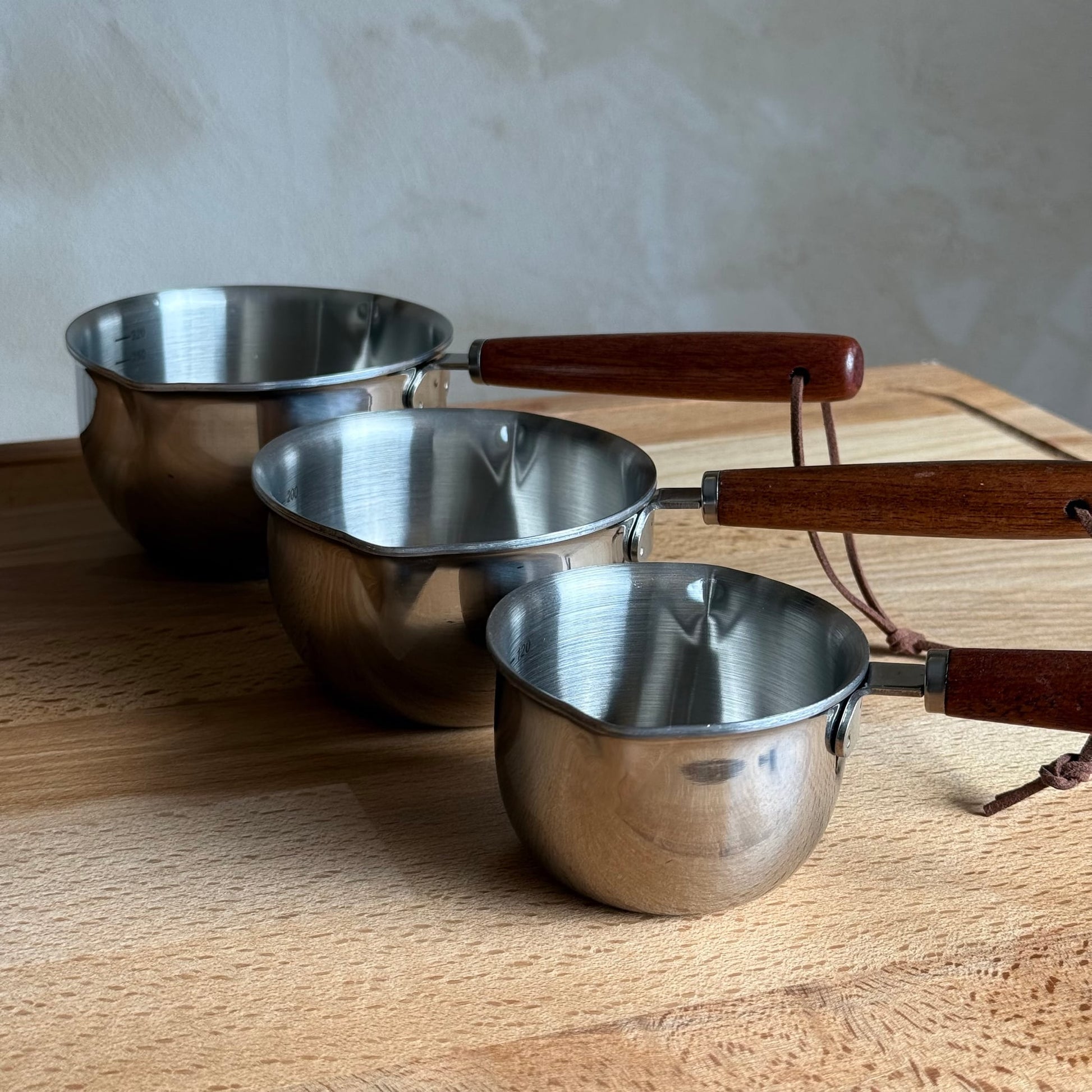 Kylie 3 Boy Çelik Akasya Ağacı Saplı Ölçü Seti (304 Çelik Yüksek Kalite)