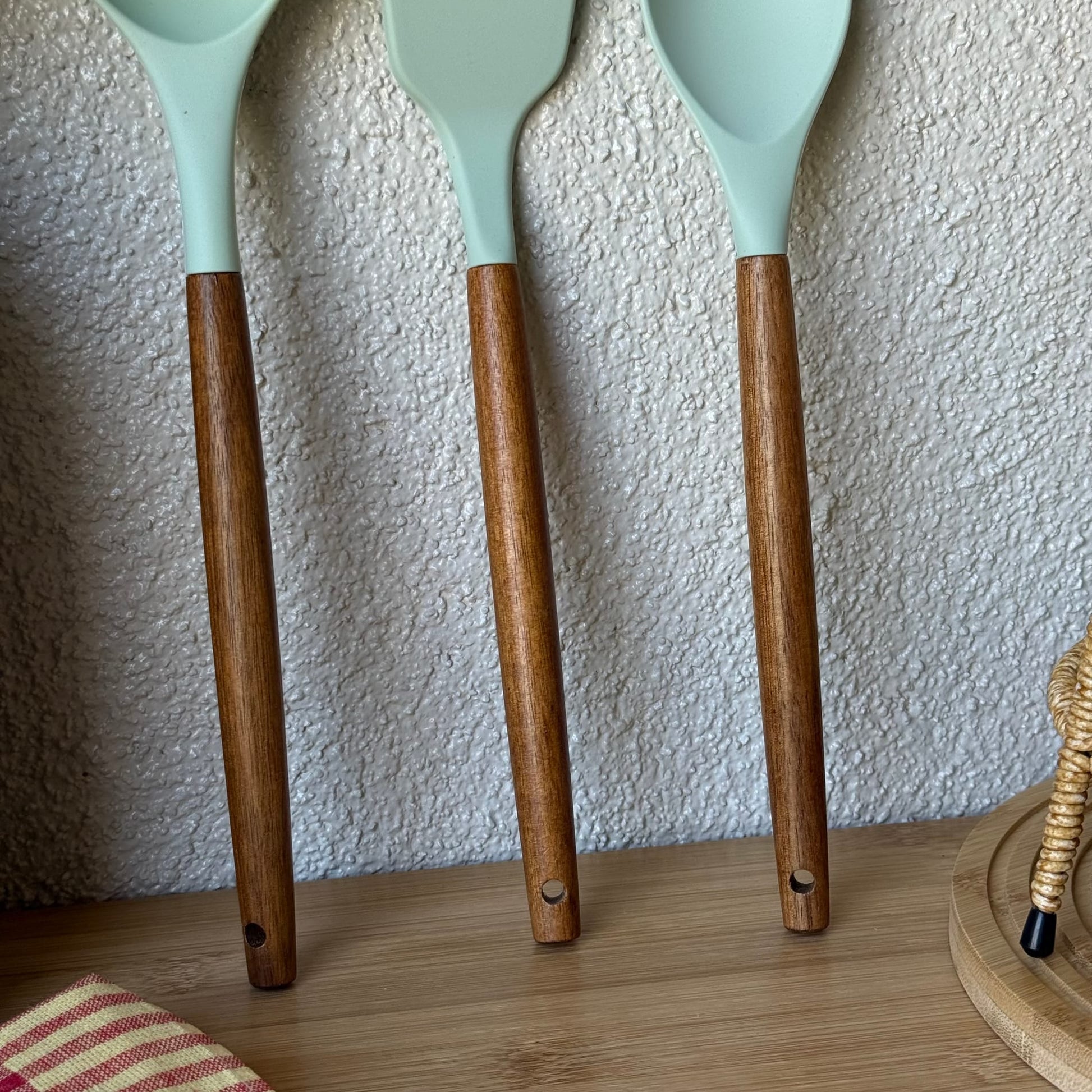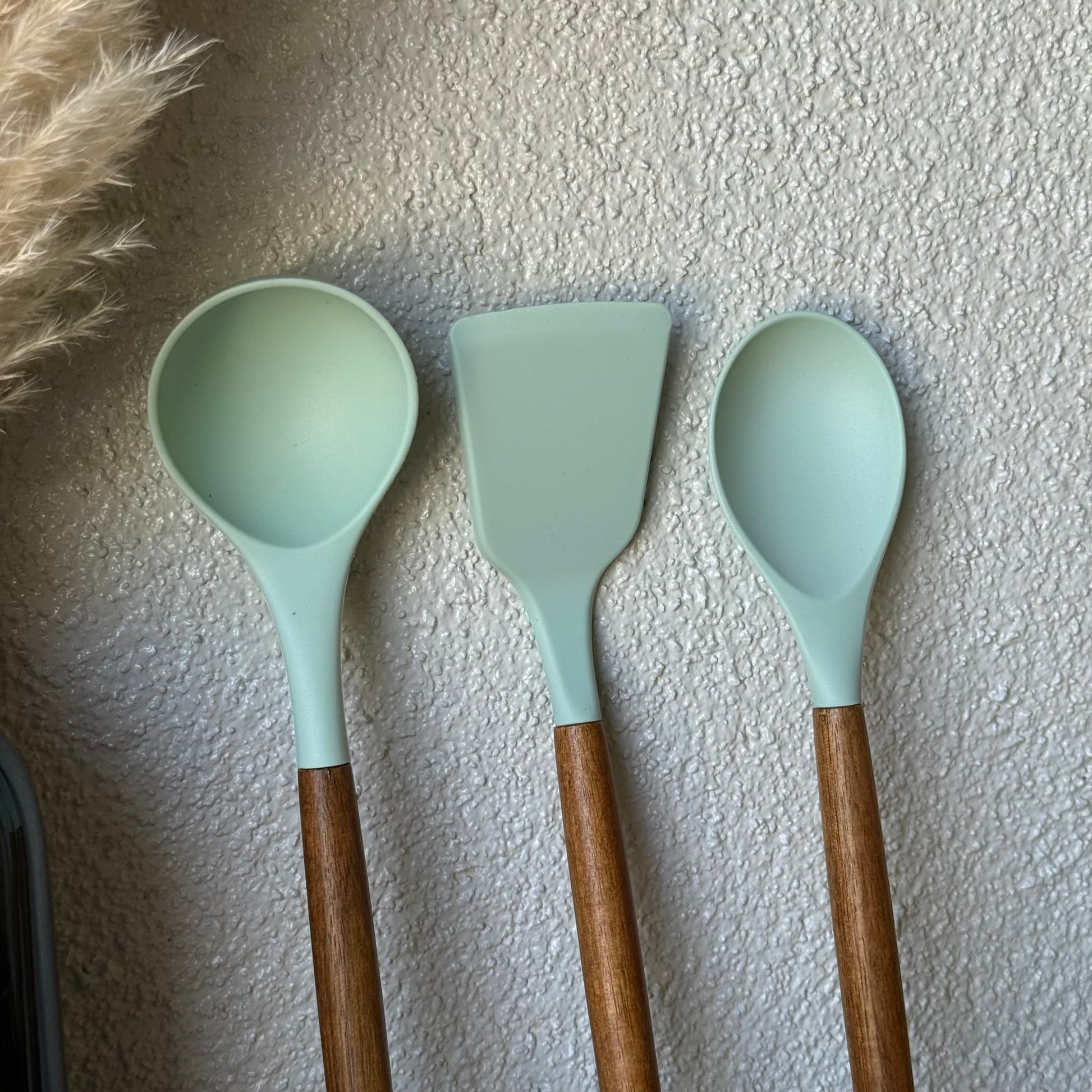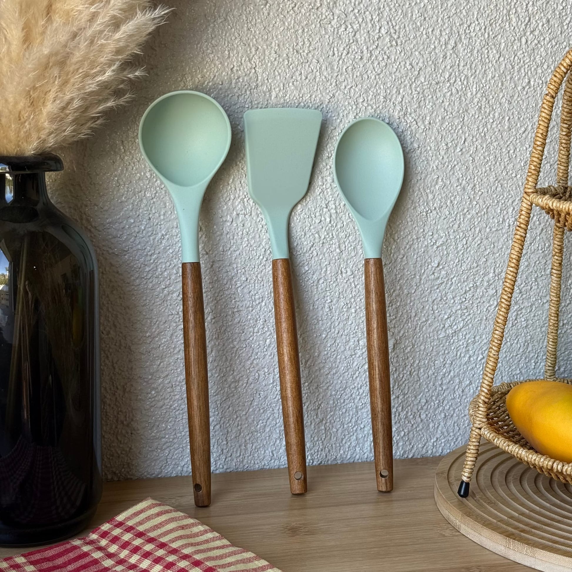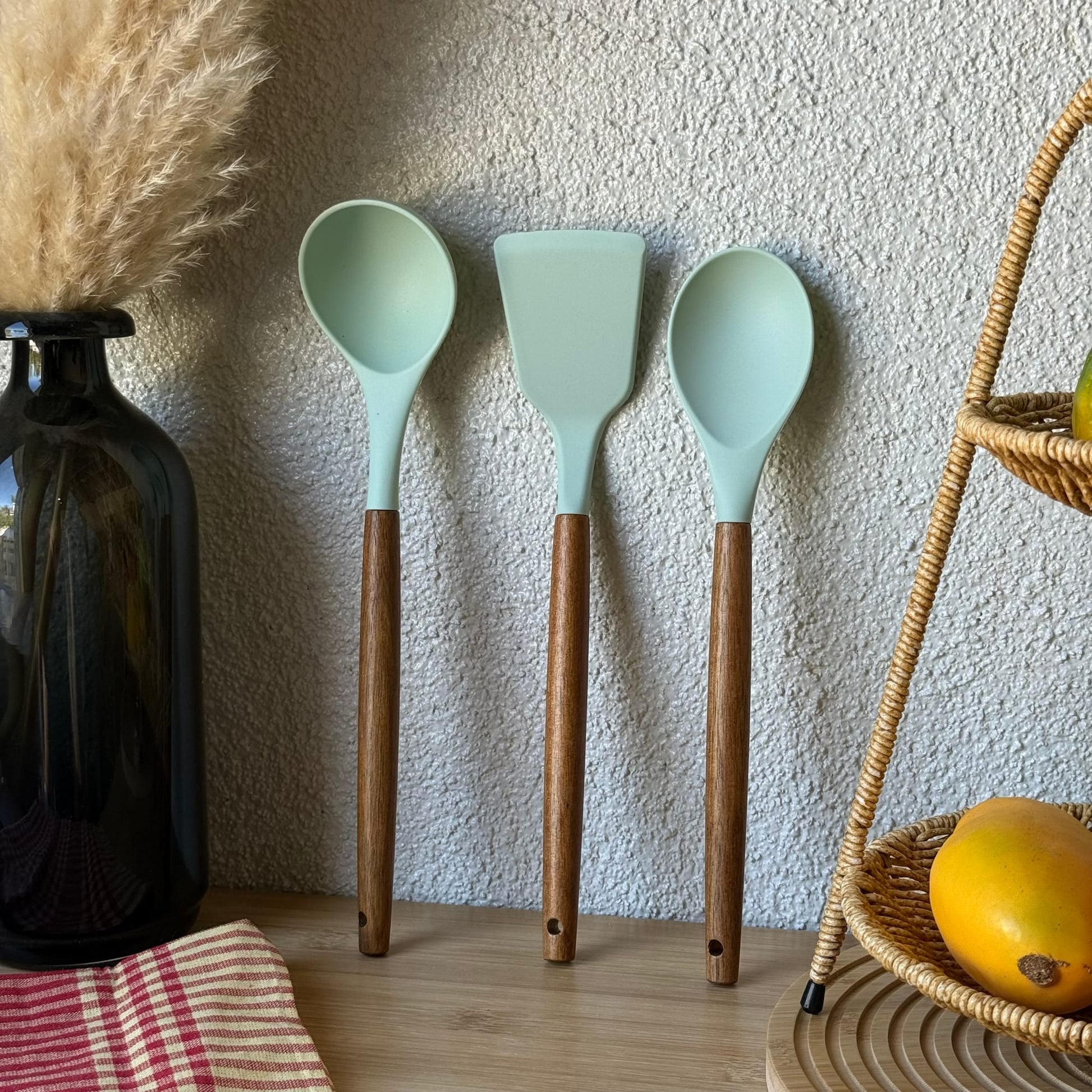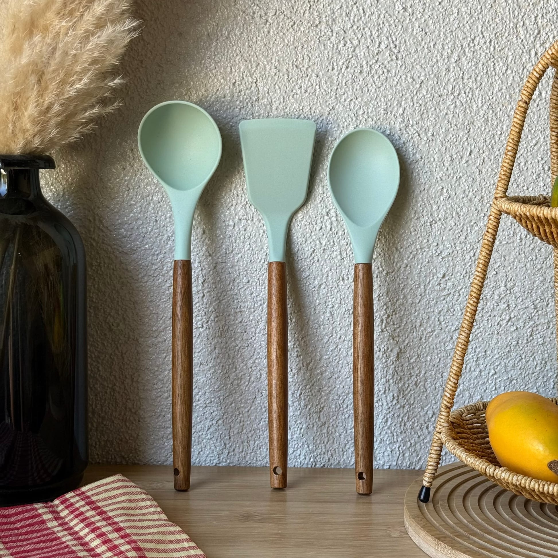 Leon Akasya Ağacı Tutmalı Silikon Kepçe Seti 3 Parça Yeşil