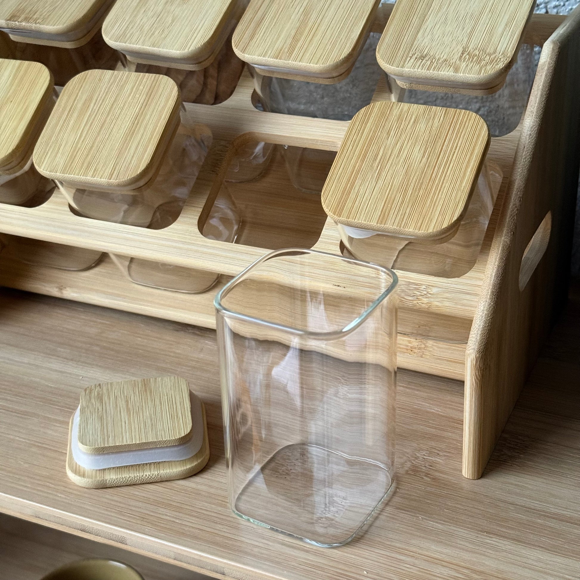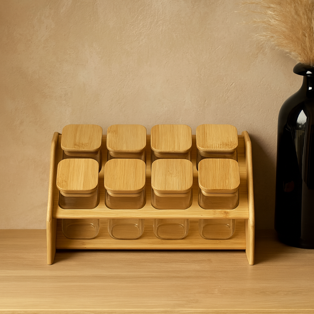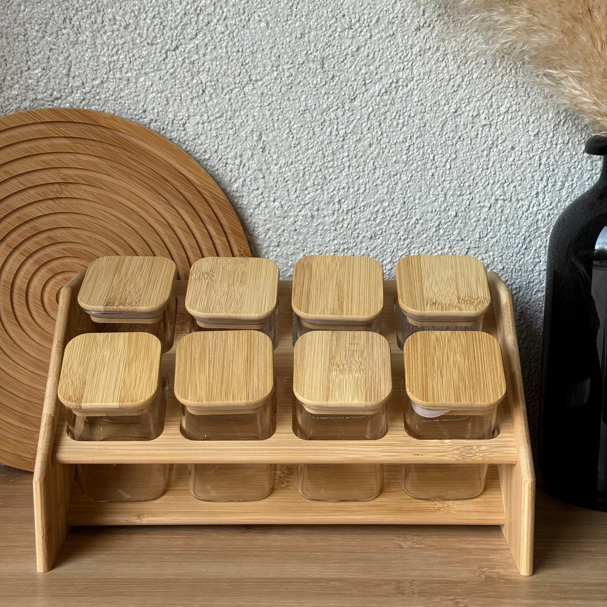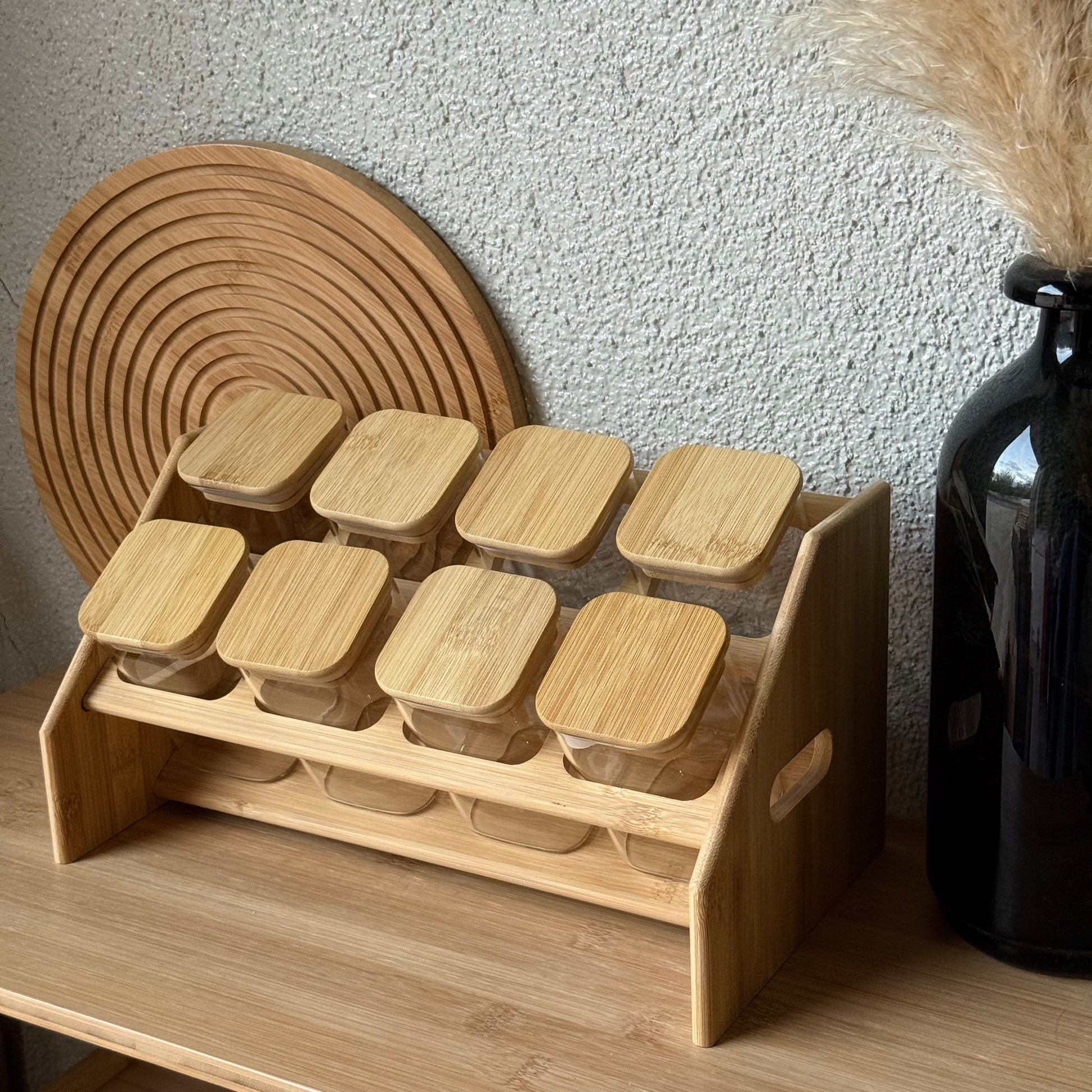 Luna Bambu Standlı 8Li Kare Baharatlık Seti