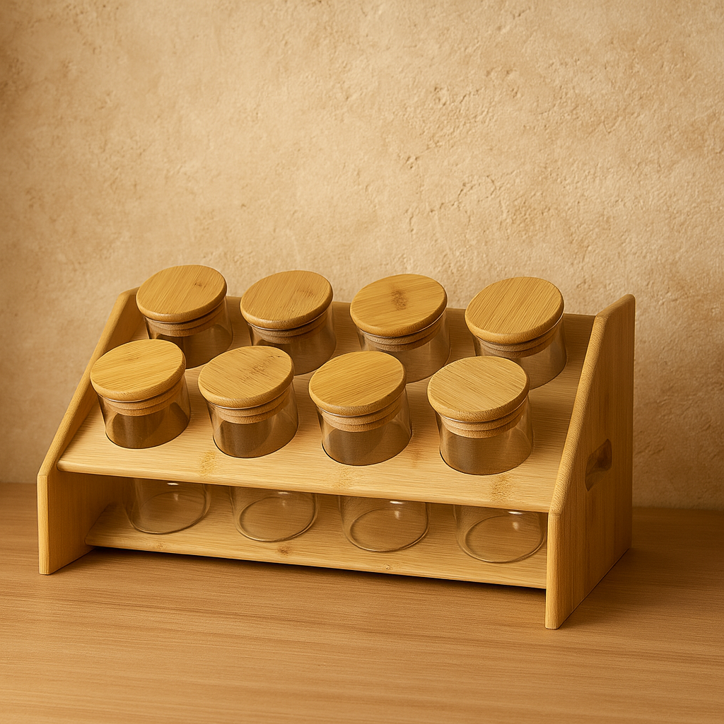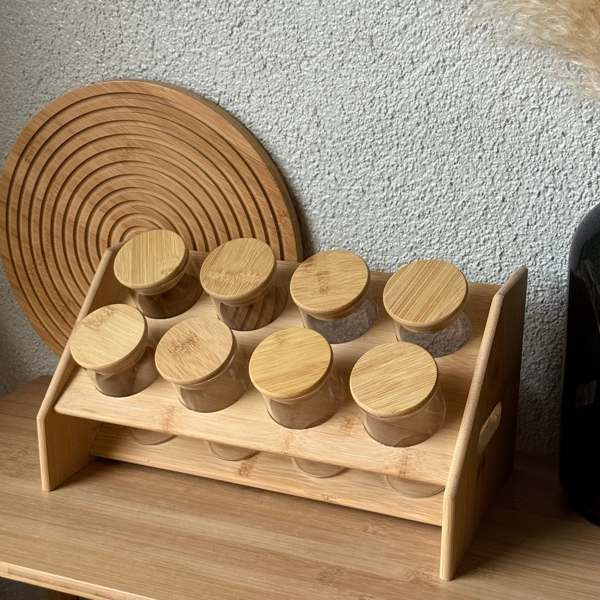 Luna Bambu Standlı 8Li Yuvarlak Baharatlık Seti