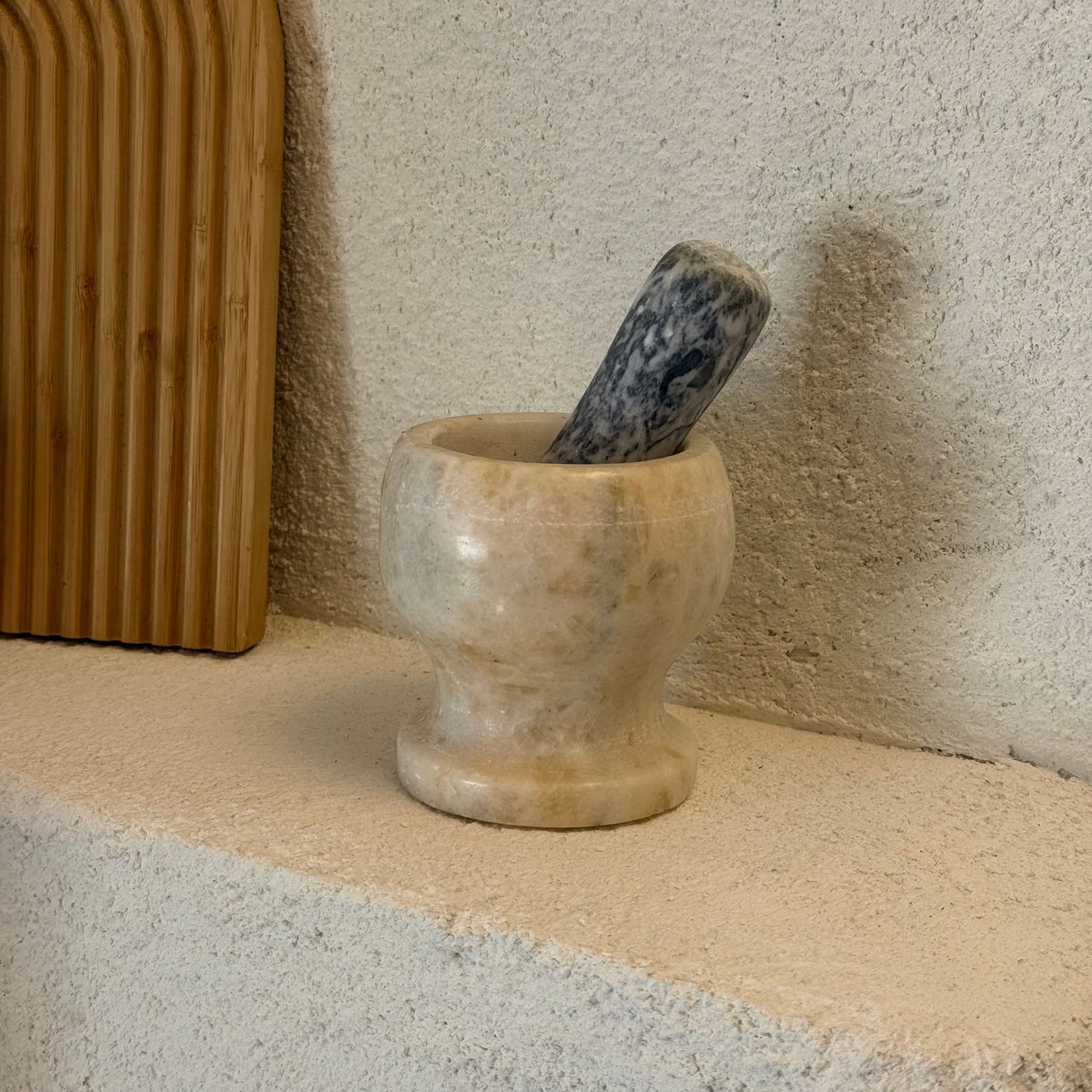 Maru Saf Mermer Büyük Boy Havan 11 cm Krem-gri