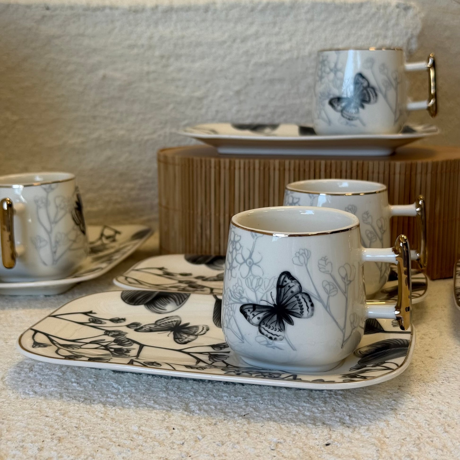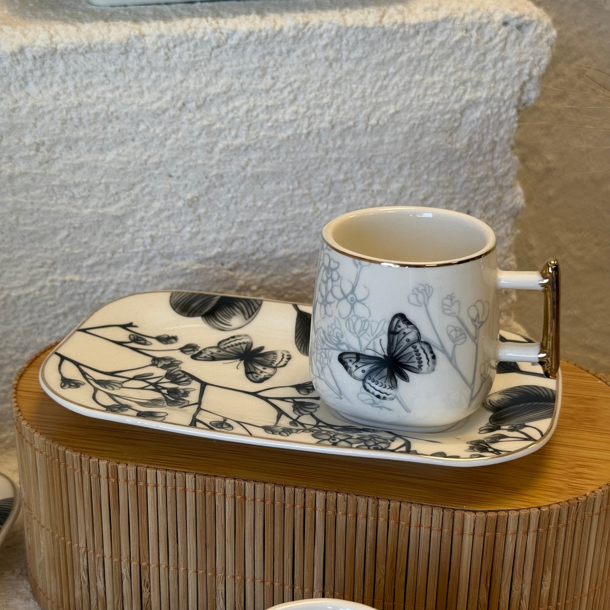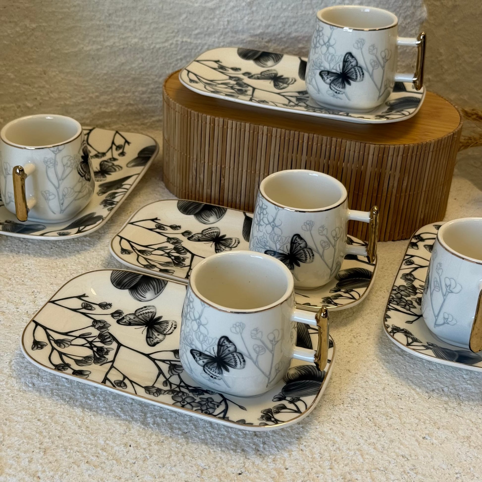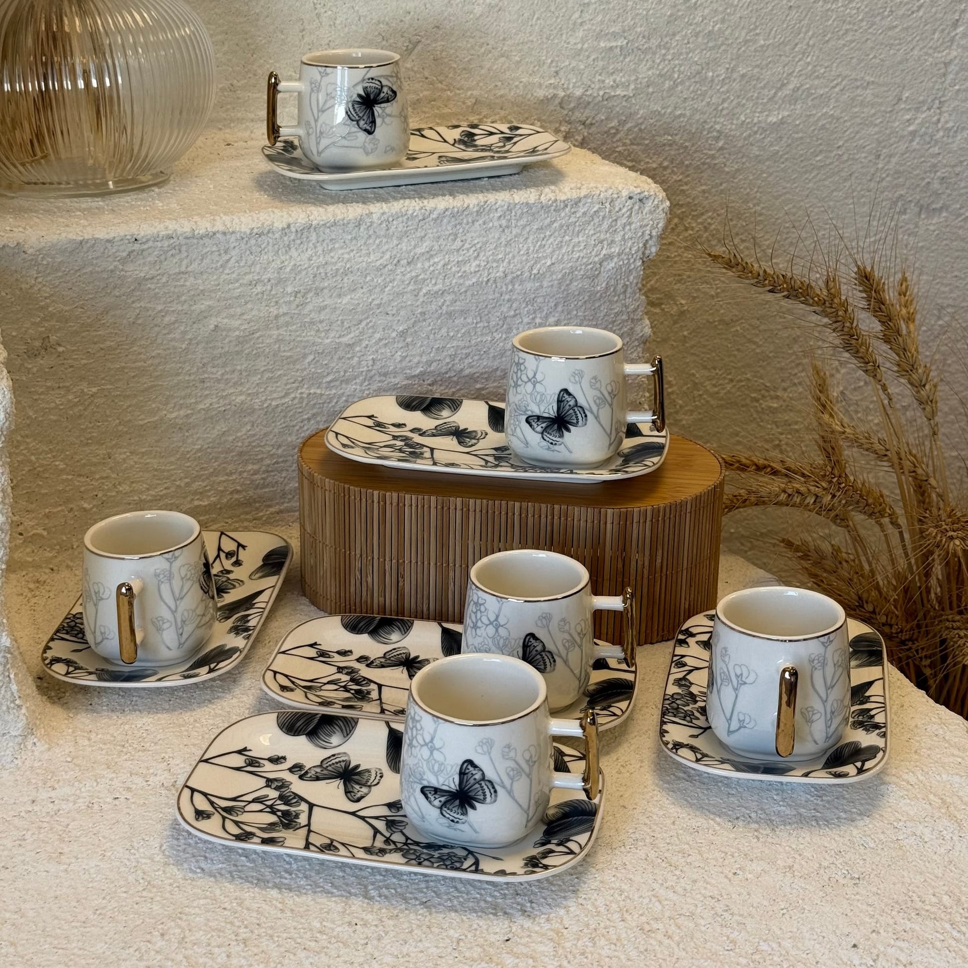 Marvin 12 Parça Porselen Kahve Fincan Takımı 6 Kişilik Siyah Desenli
