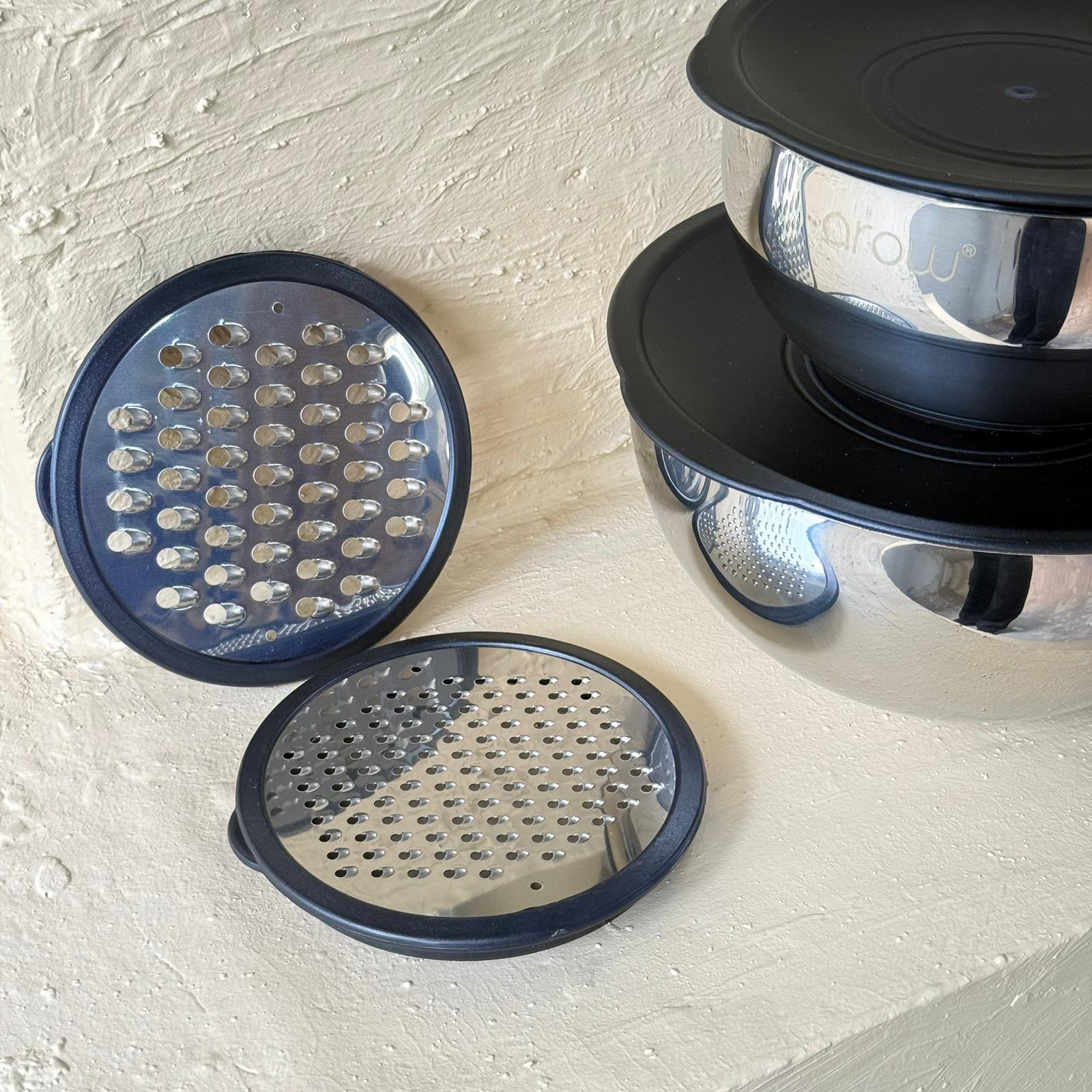 3 Boy Çelik Karıştırma Seti, Rende Kapaklı,