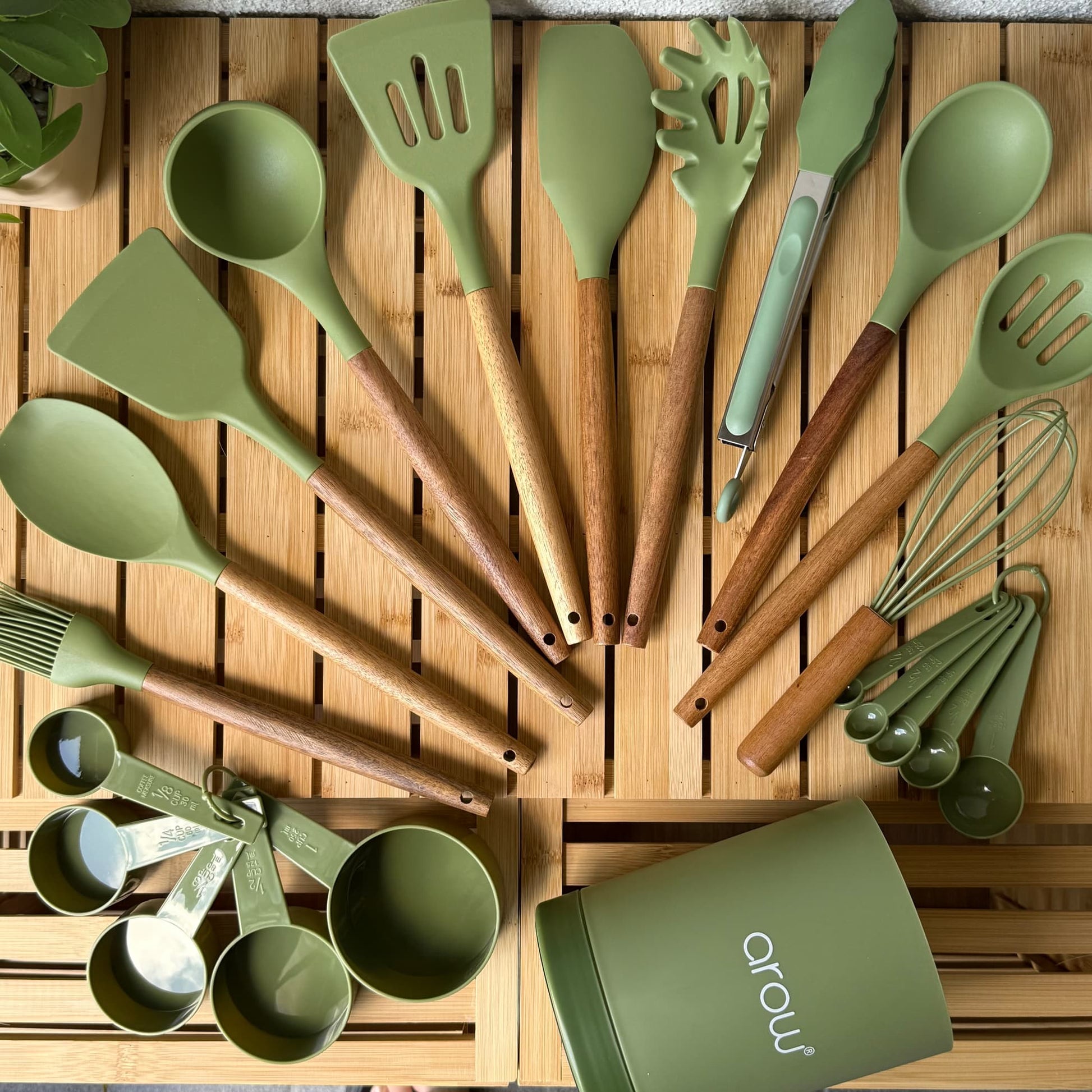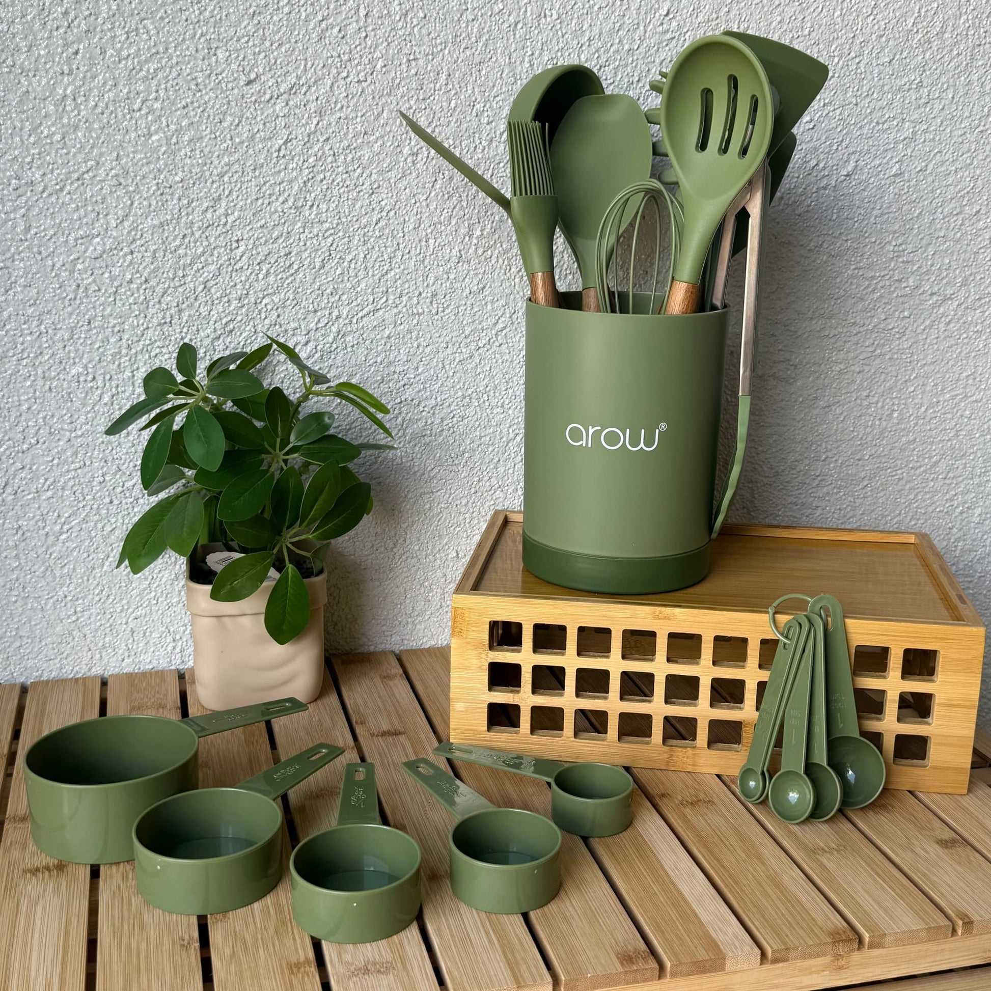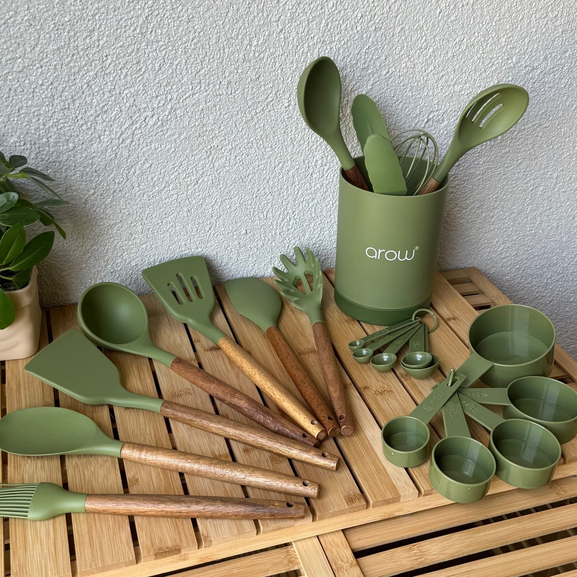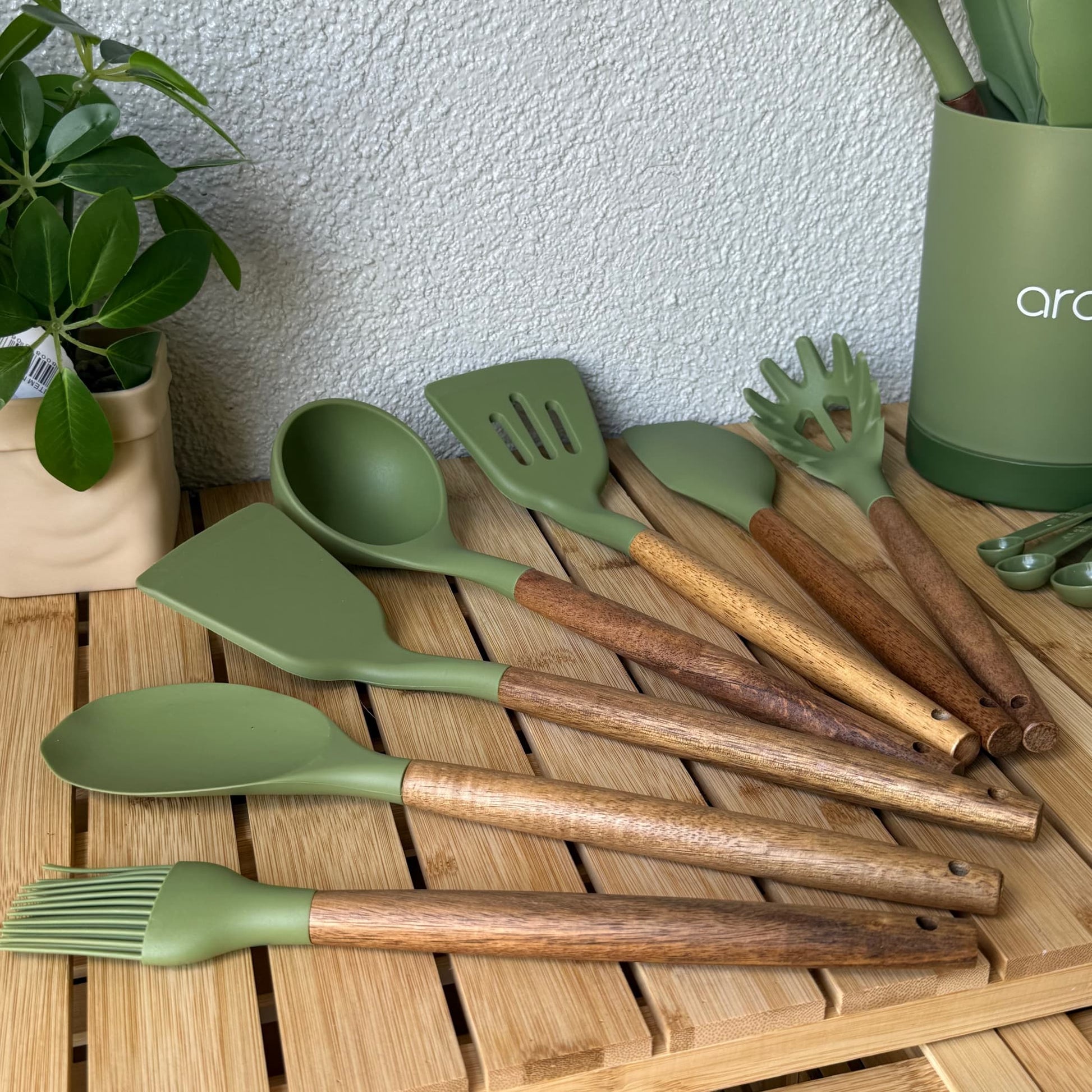 Maylis Akasya Ağaci Saplı 22 Parça Silikon Mutfak Seti Haki (SÜPER FİYAT)